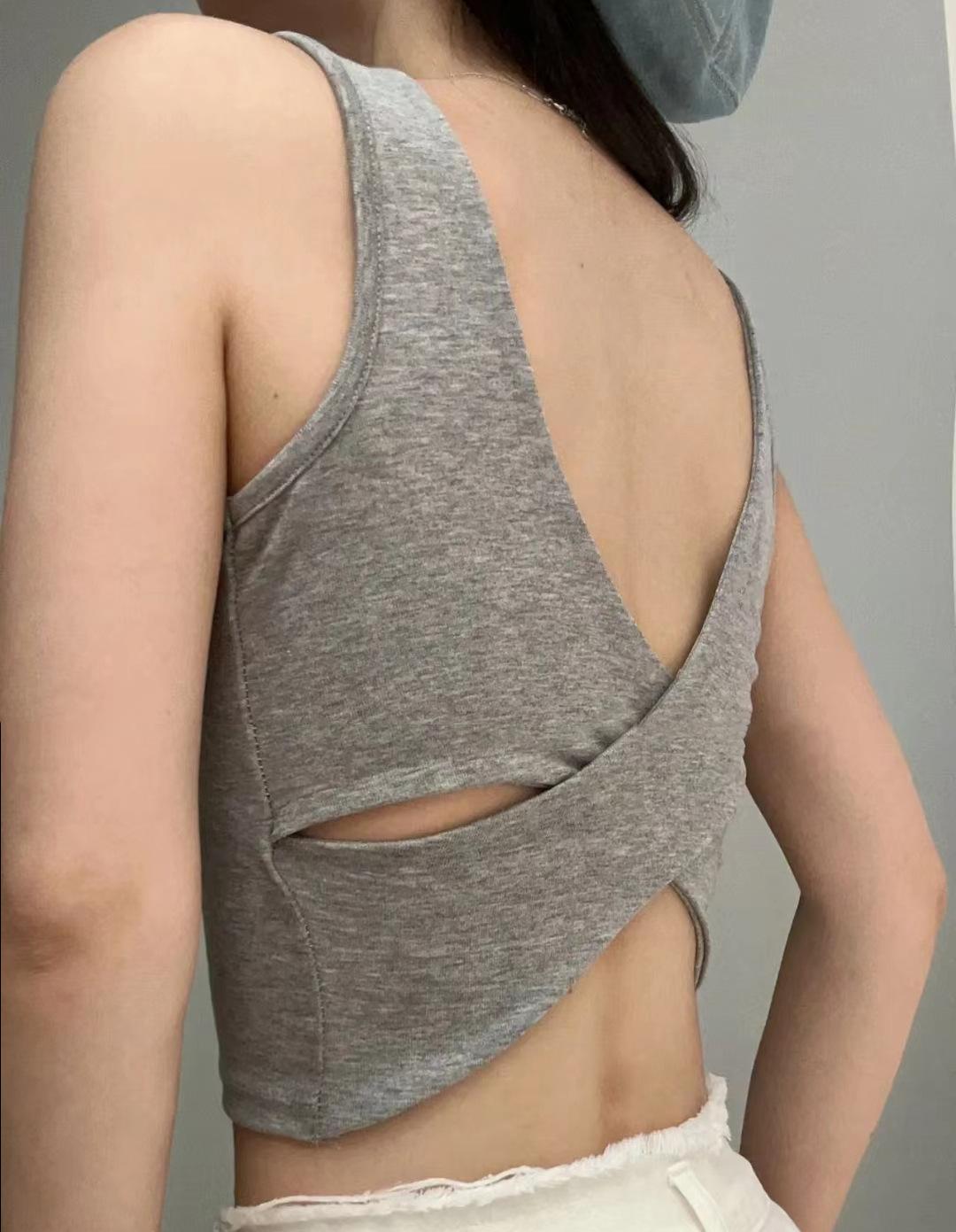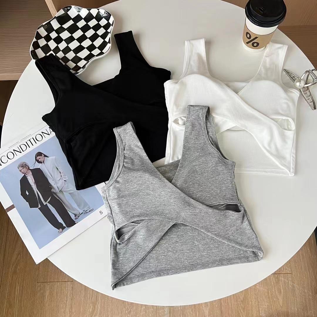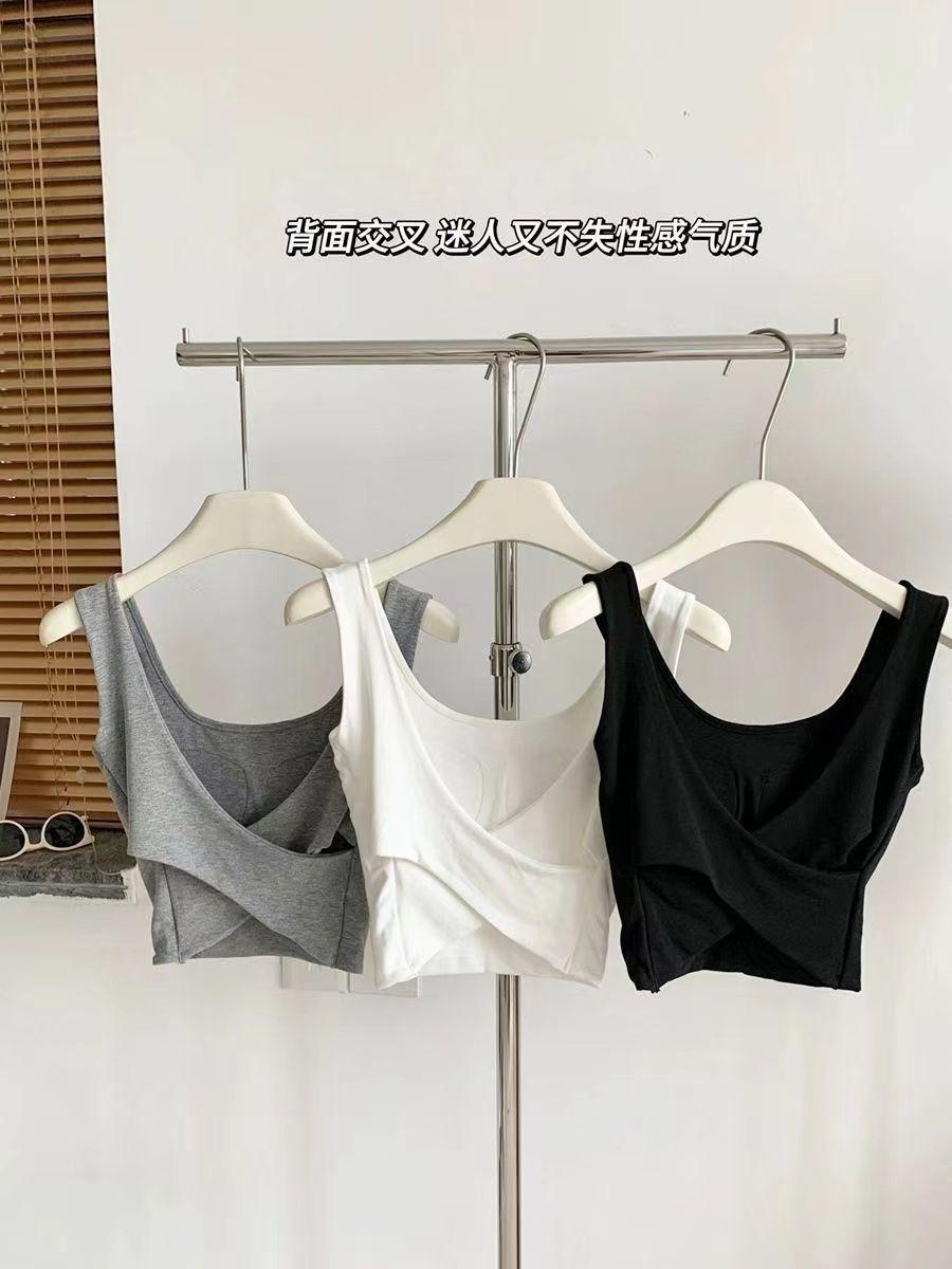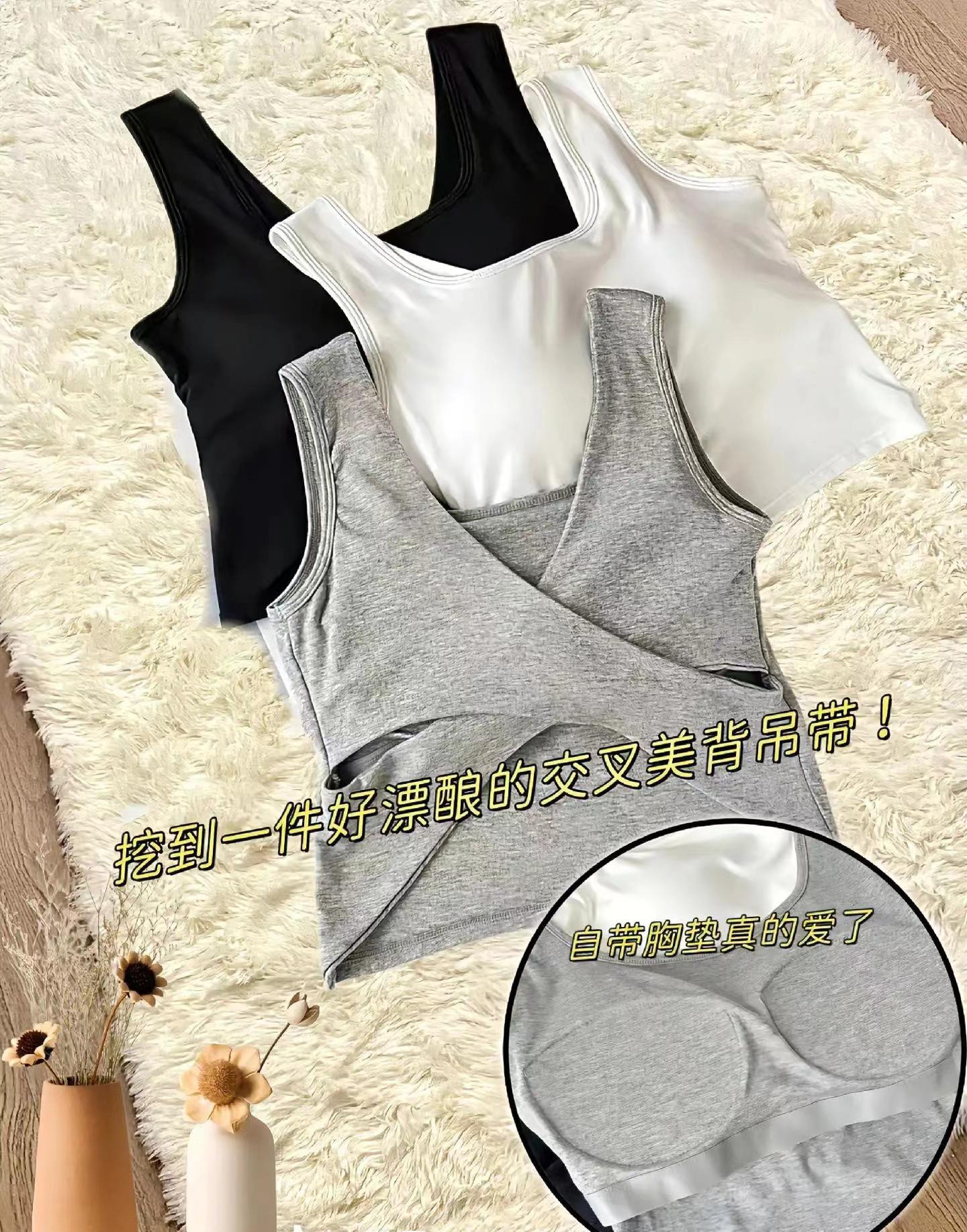 Verano Ropa Exterior Espalda Cruzada Sin Espalda Chaleco de Hombro Ancho para Mujer con Almohadillas para el Busto Look Adelgazante Sexy Fondo Top Interior Algodón Puro