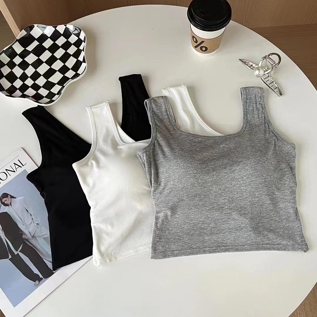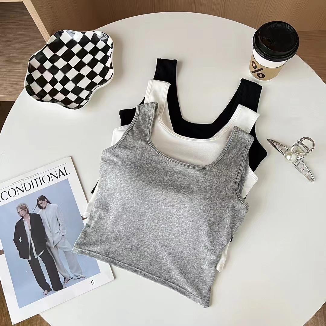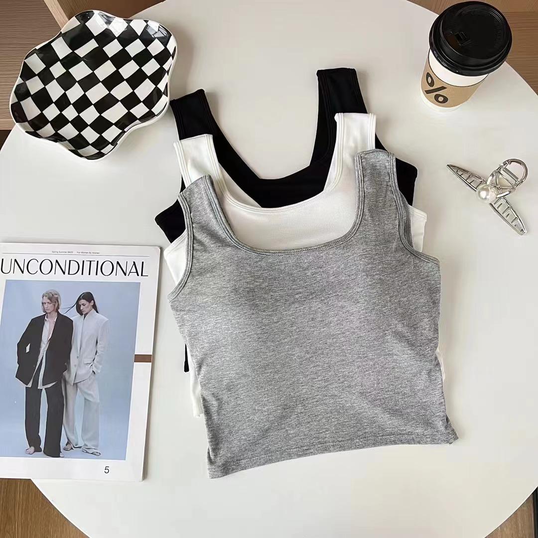 Verano Ropa Exterior Espalda Cruzada Sin Espalda Chaleco de Hombro Ancho para Mujer con Almohadillas para el Busto Look Adelgazante Sexy Fondo Top Interior Algodón Puro