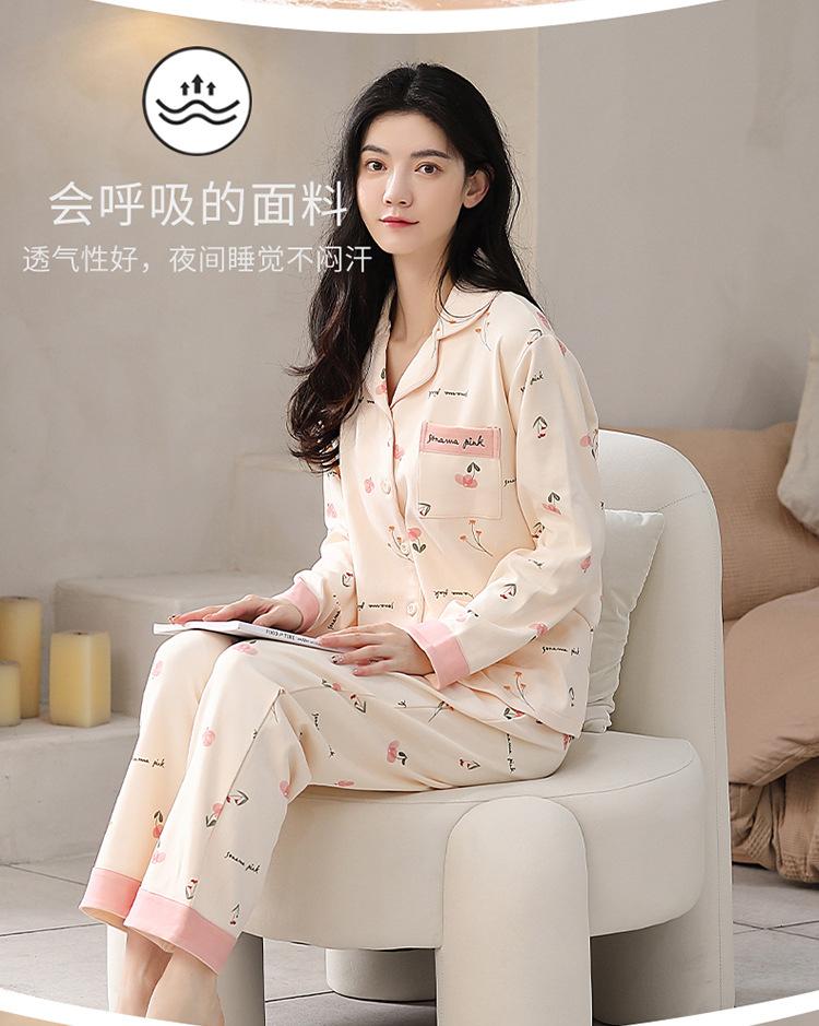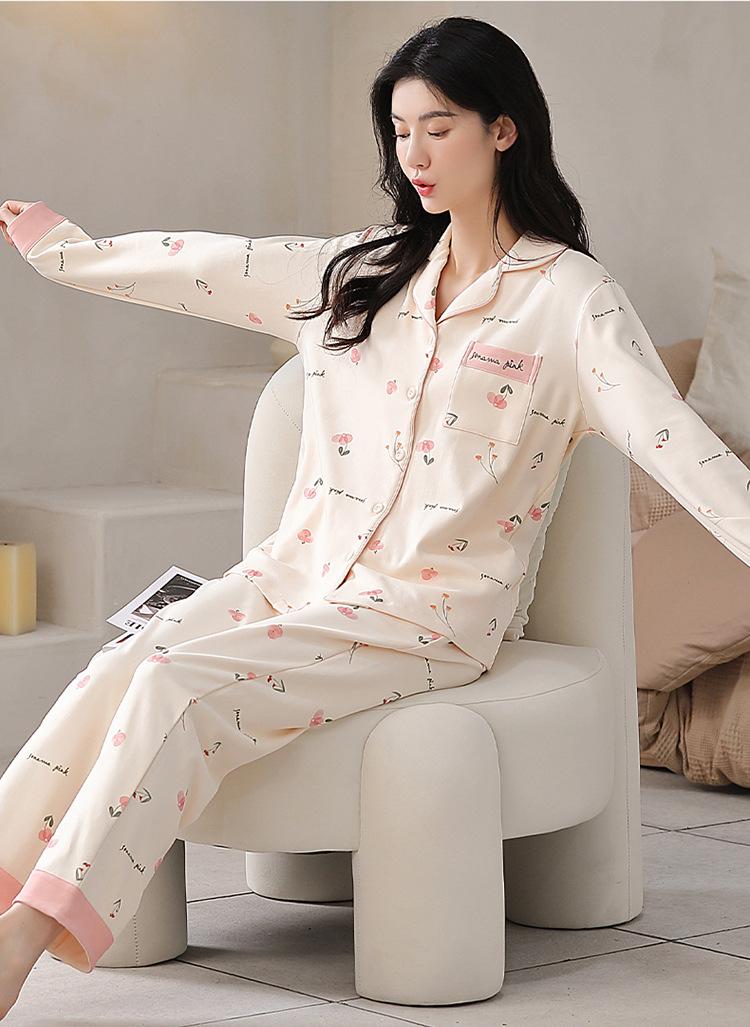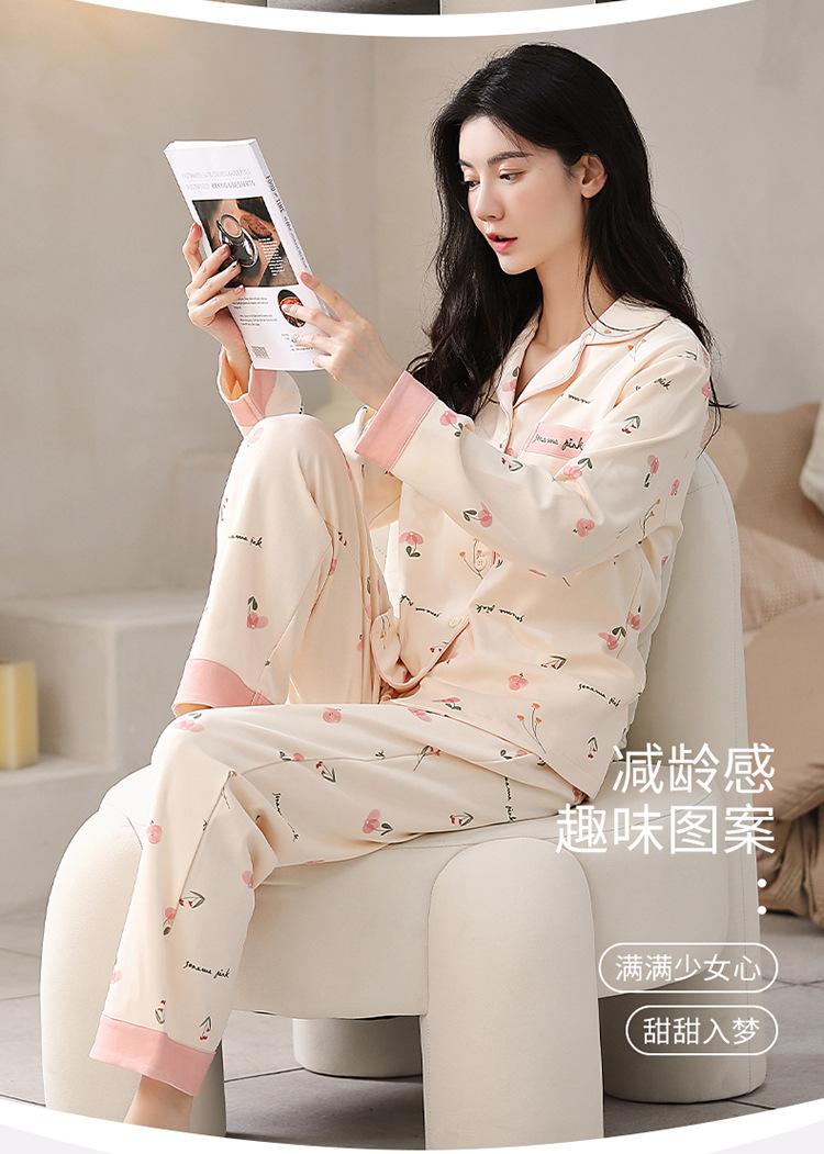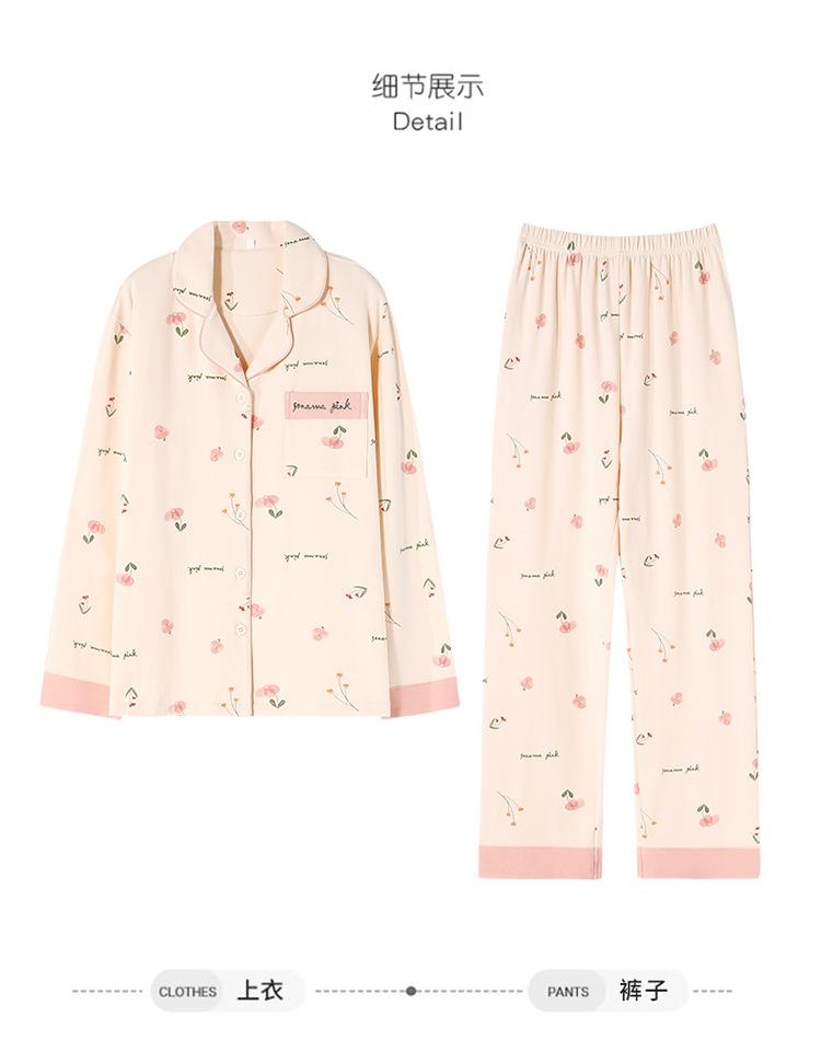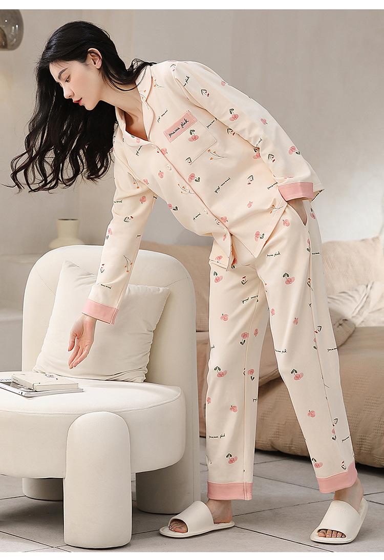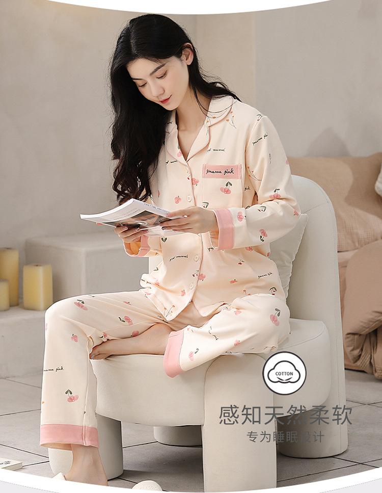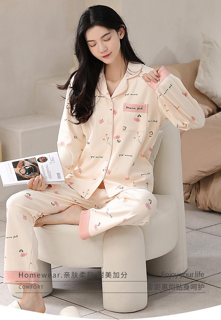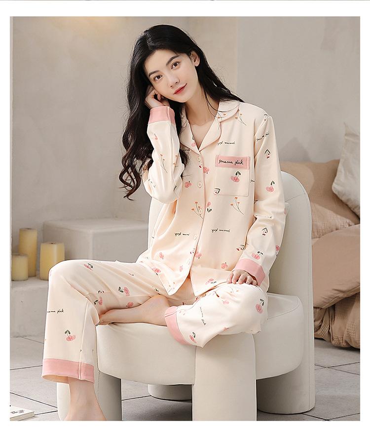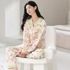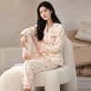 Pijama de algodón de doble cara para mujer, cárdigan dulce de manga larga para primavera y otoño, ropa de casa con solapa suelta, traje para invierno