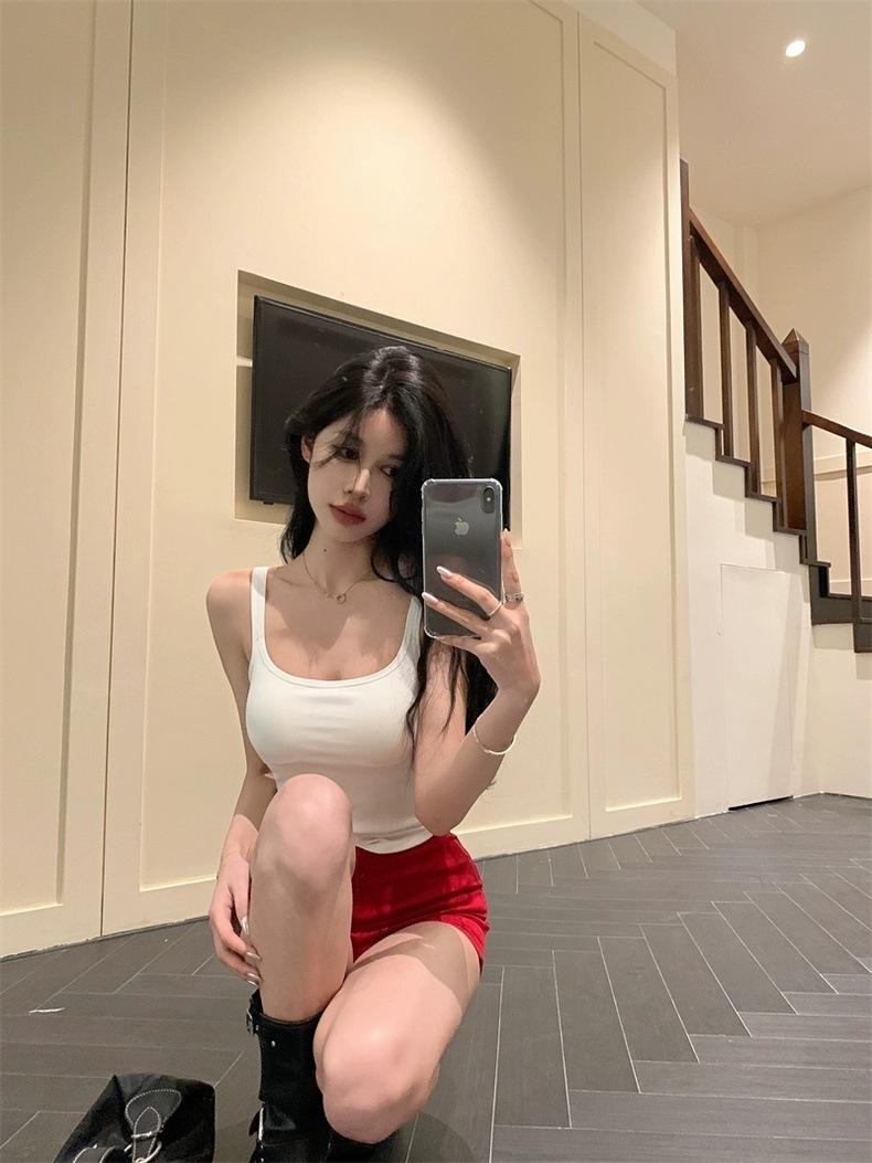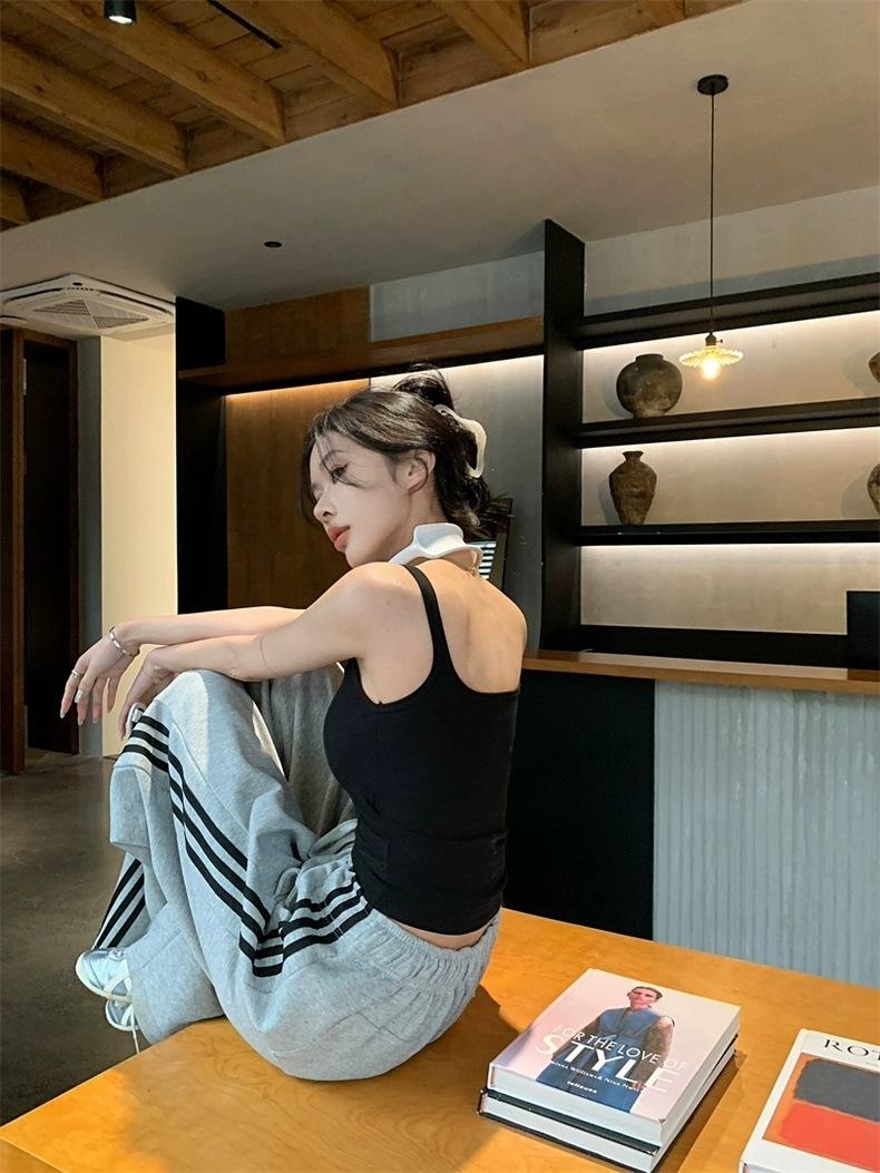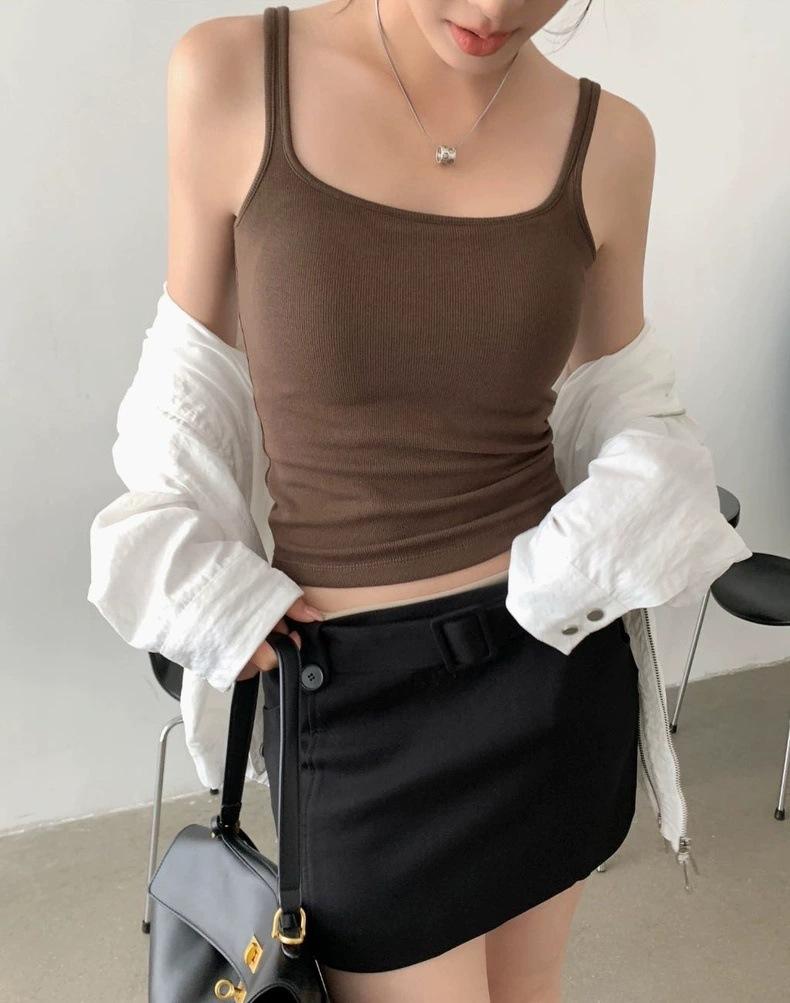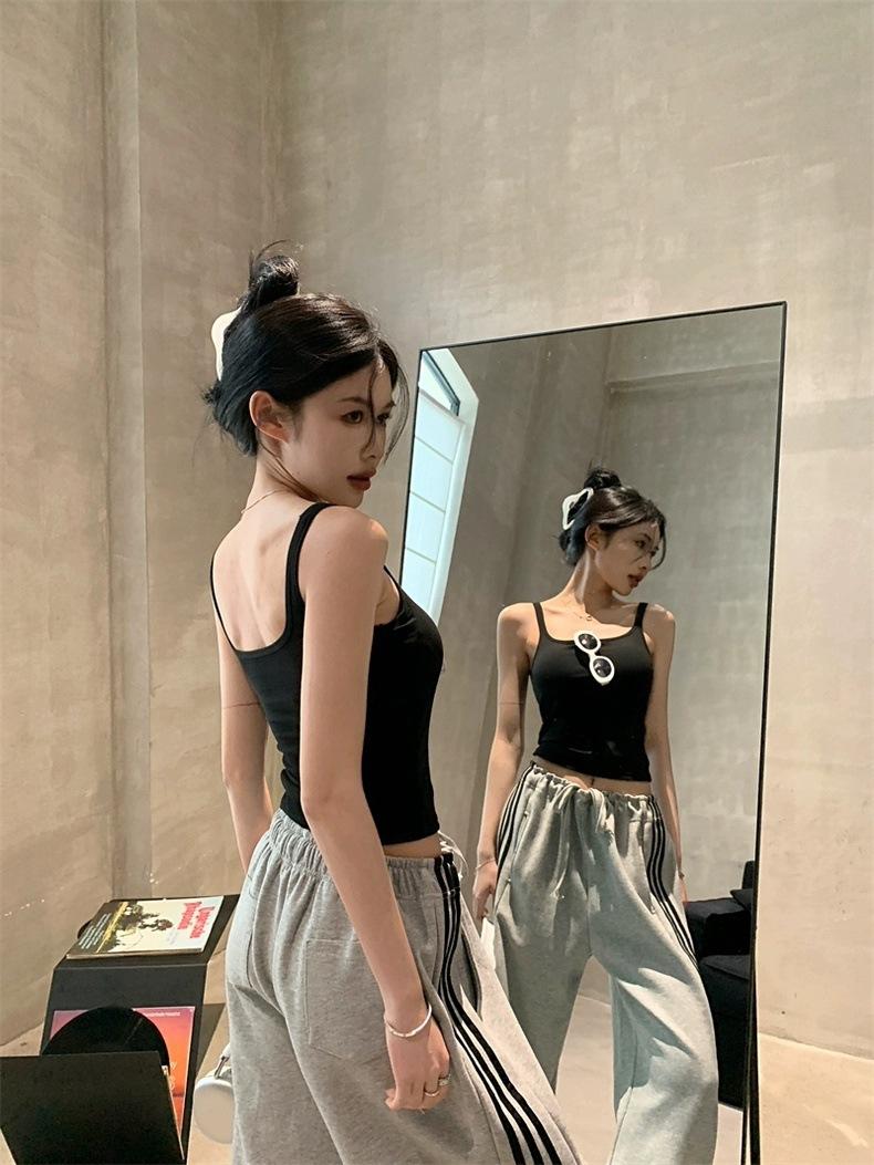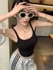 Camisola gris retro estilo americano con almohadilla para el pecho, prenda exterior sexy de verano para mujer, estilo Spice Girl, top corto ajustado con espalda hermosa