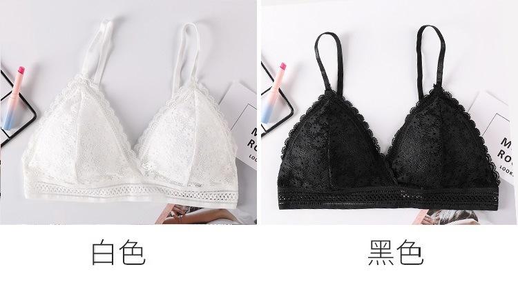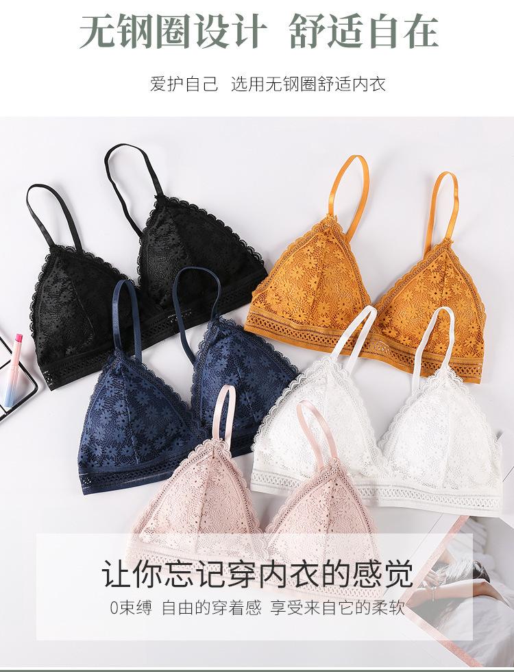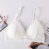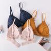 Bralette sin aros, pecho grande, copa triangular de encaje pequeño, ropa interior sexy francesa para mujer