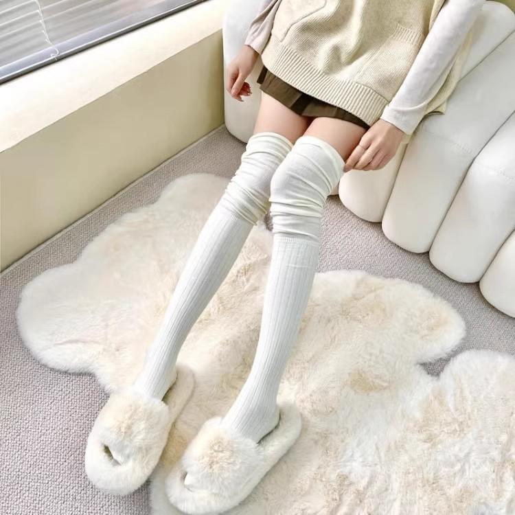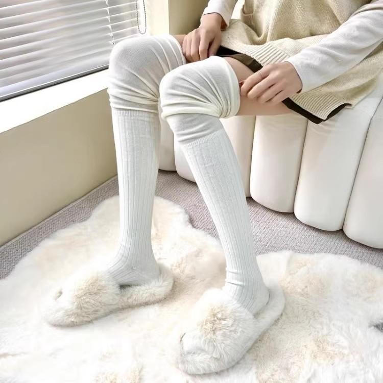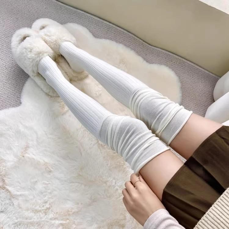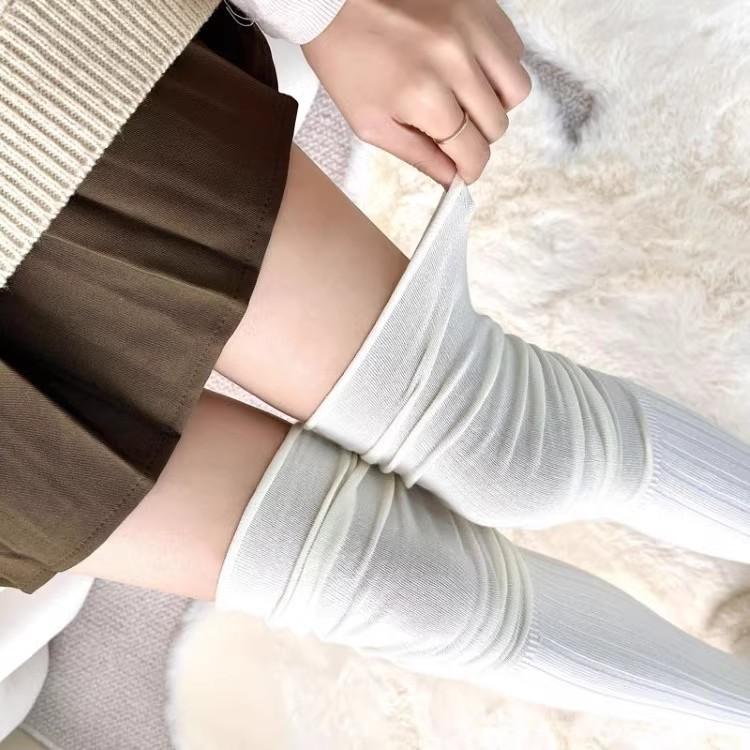 Medias blancas leche de otoño e invierno, medias altas color caqui para mujer, calcetines beige hasta el muslo, calcetines hasta la rodilla con costura japonesa, calcetines apilados