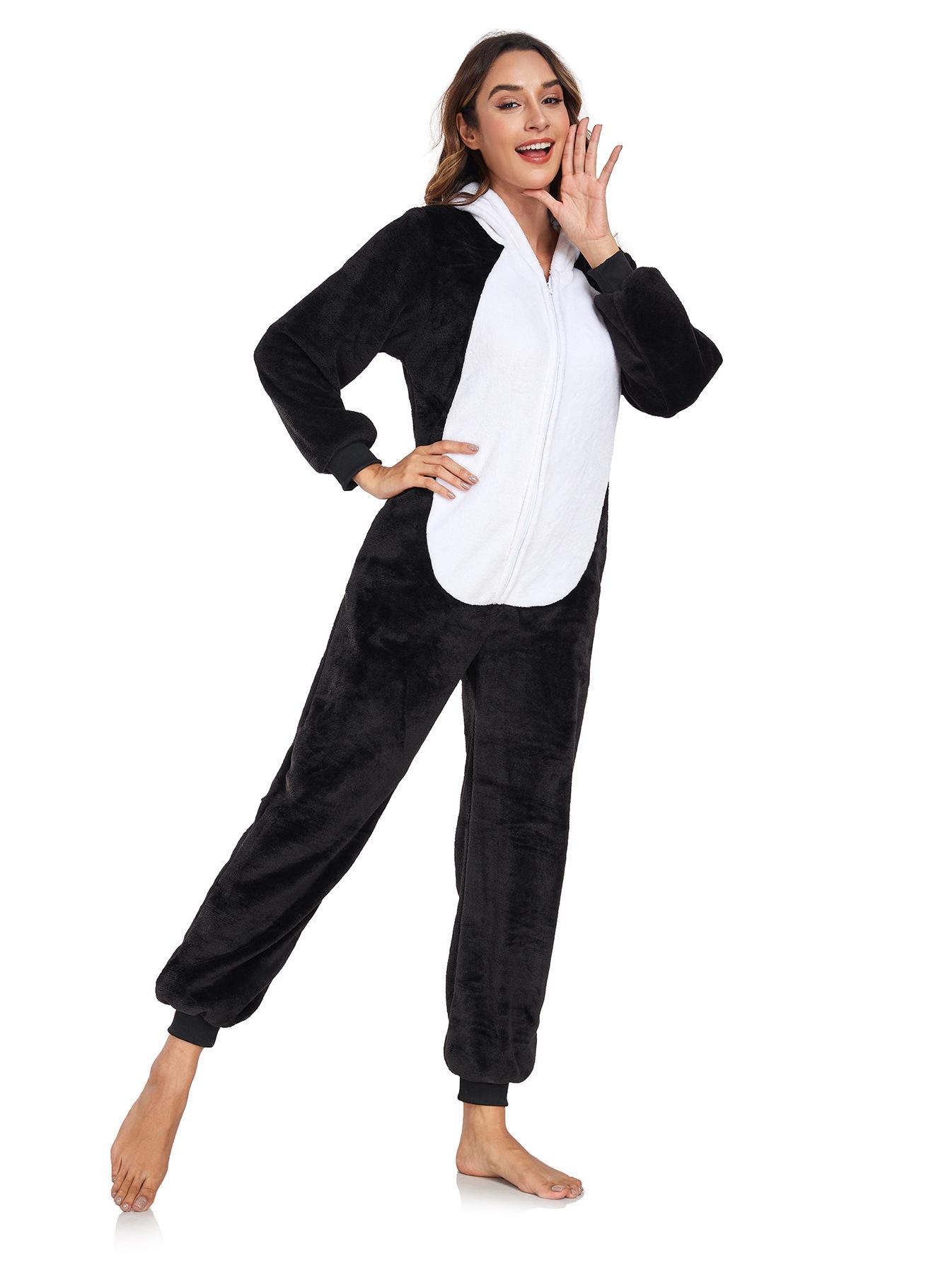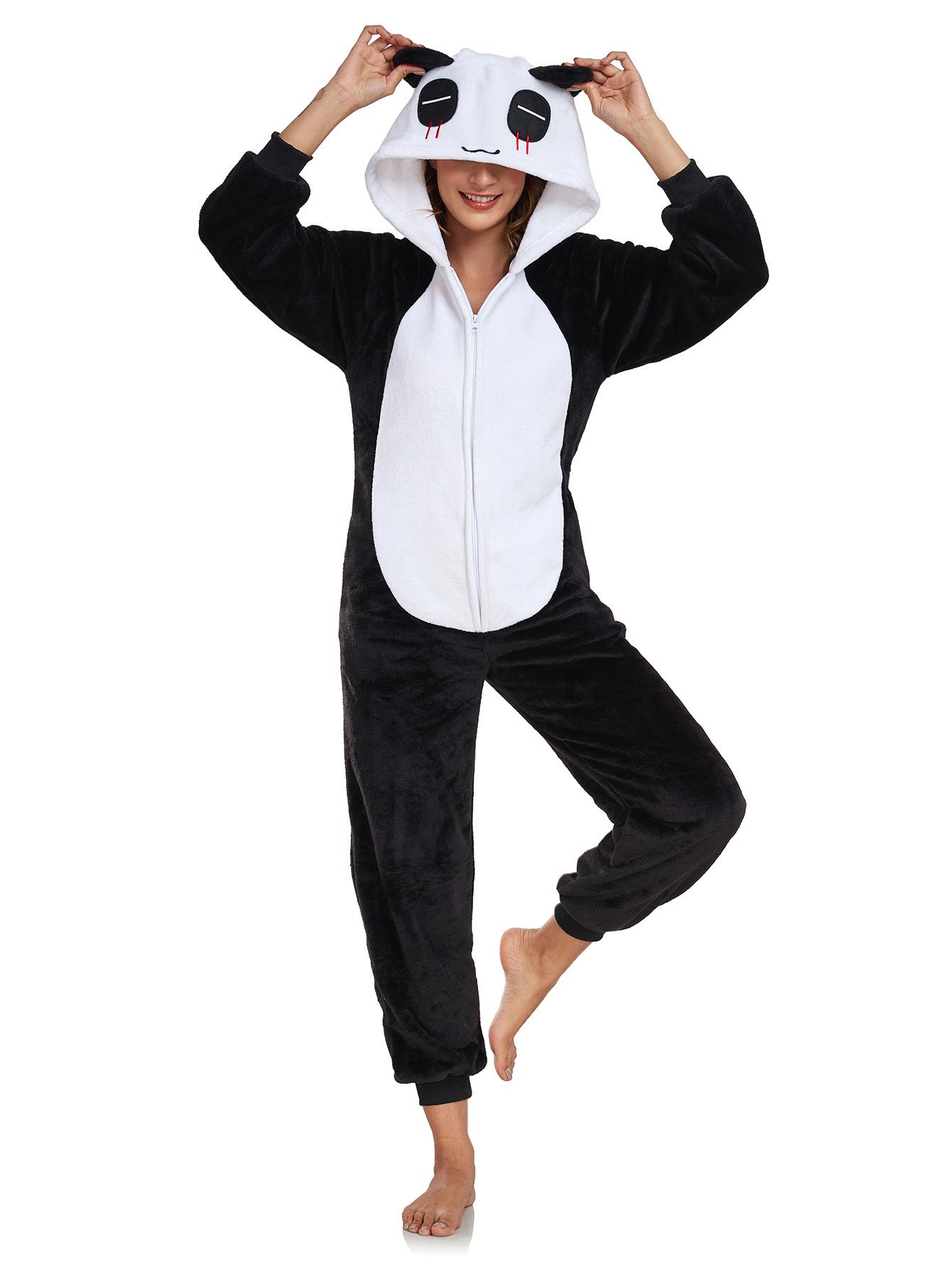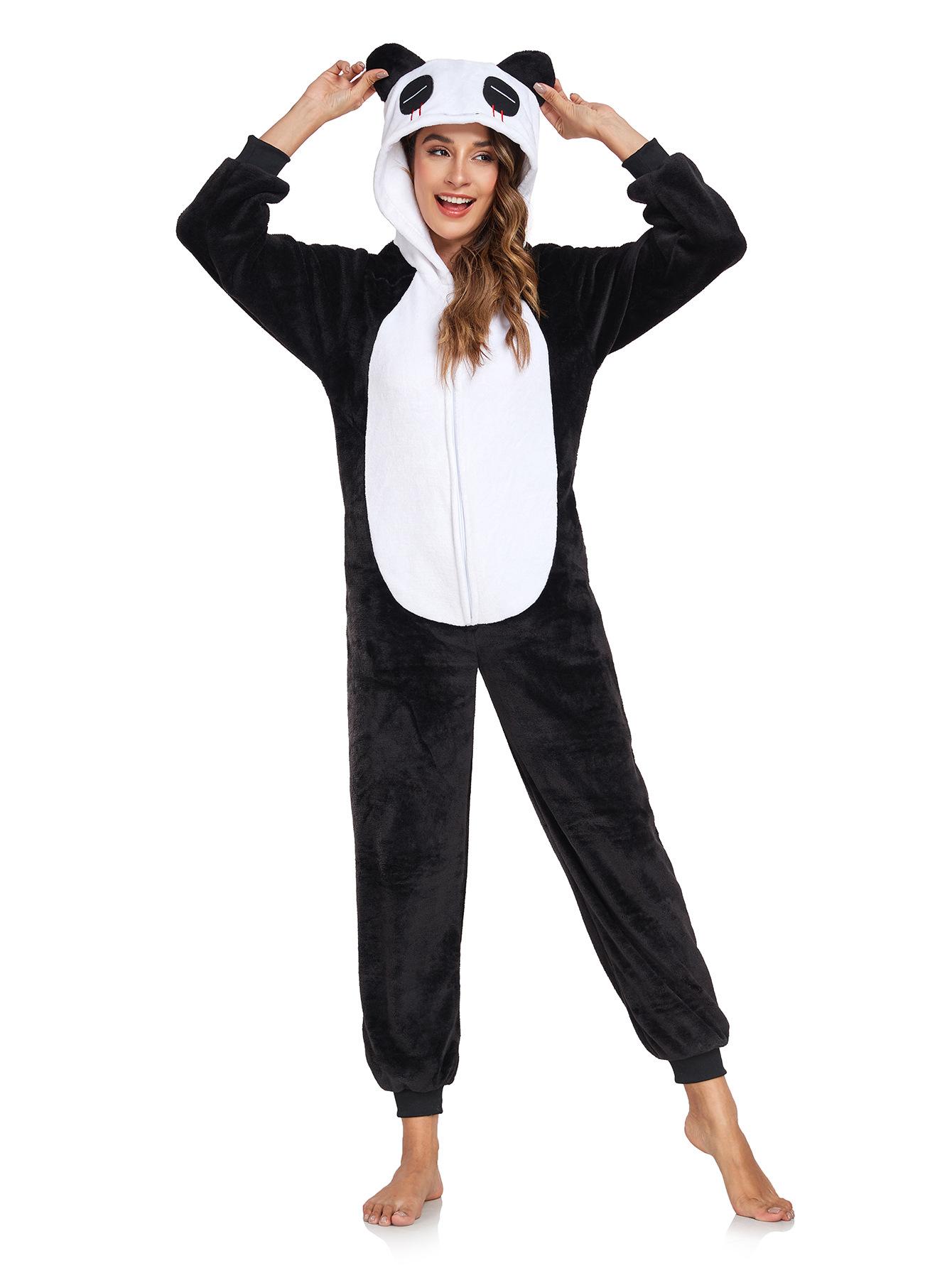 Pijama de una pieza de franela con dibujos animados de panda transfronterizos para otoño e invierno, cálido para el hogar