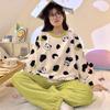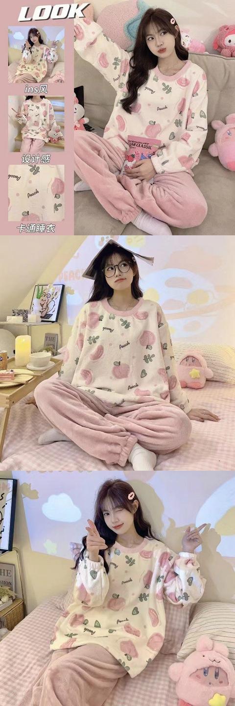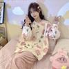 Pijamas de franela de otoño e invierno para mujer, dibujos animados, nuevo invierno 2024, forro polar coral grueso, ropa de casa para estudiantes, traje