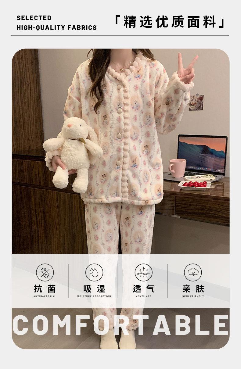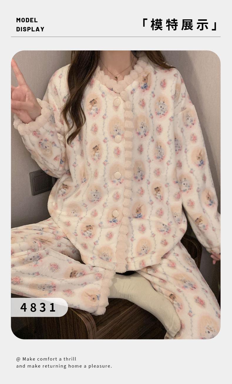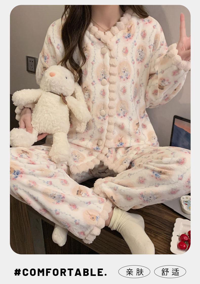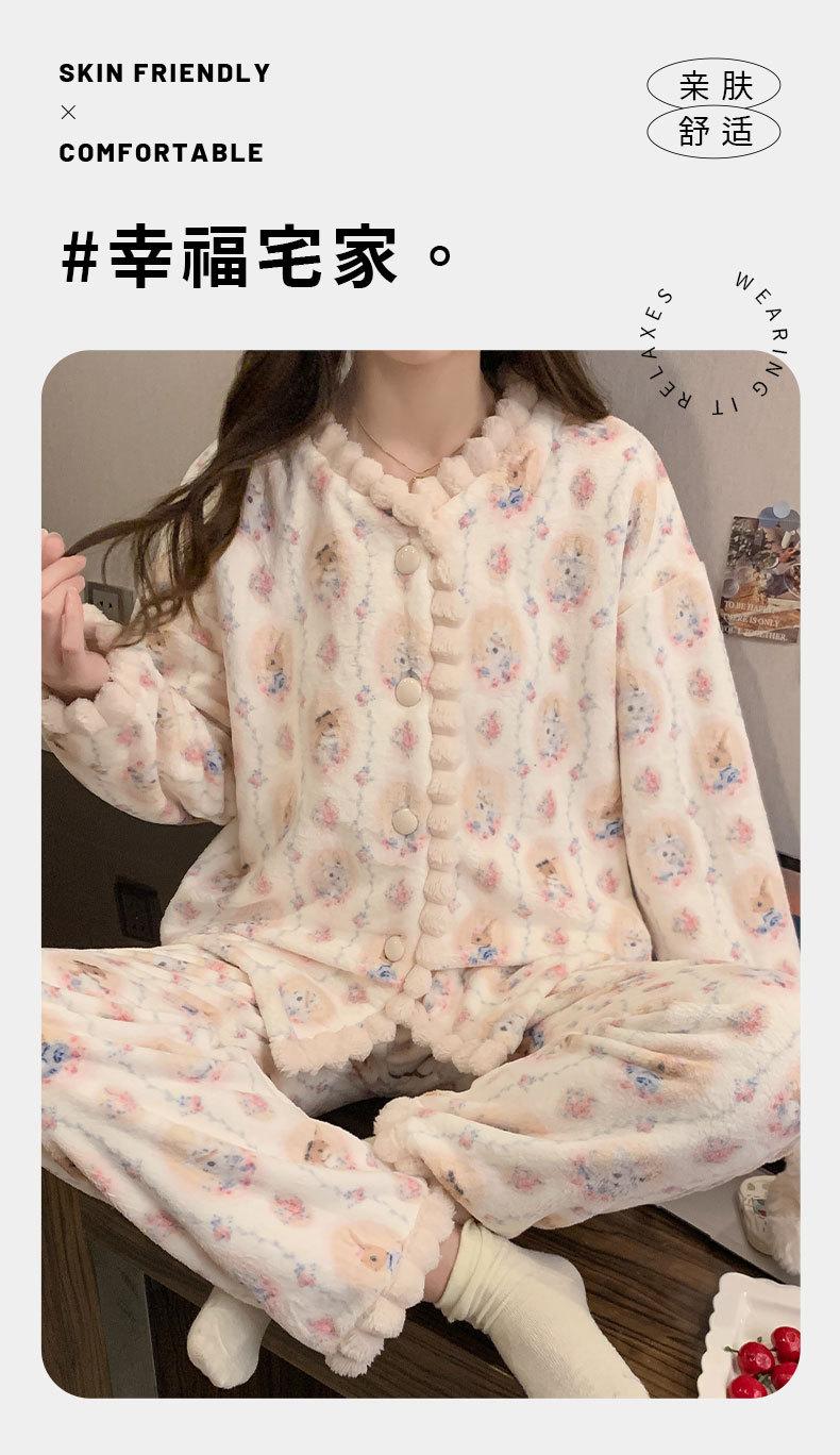 Pijamas de terciopelo coral para mujer, otoño e invierno, gruesos y cálidos, novedad de 2024, ropa de hogar de franela dulce y linda.