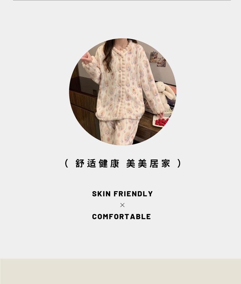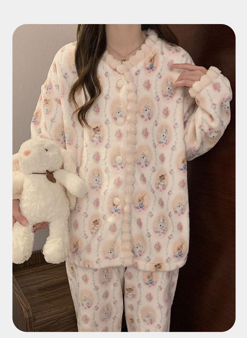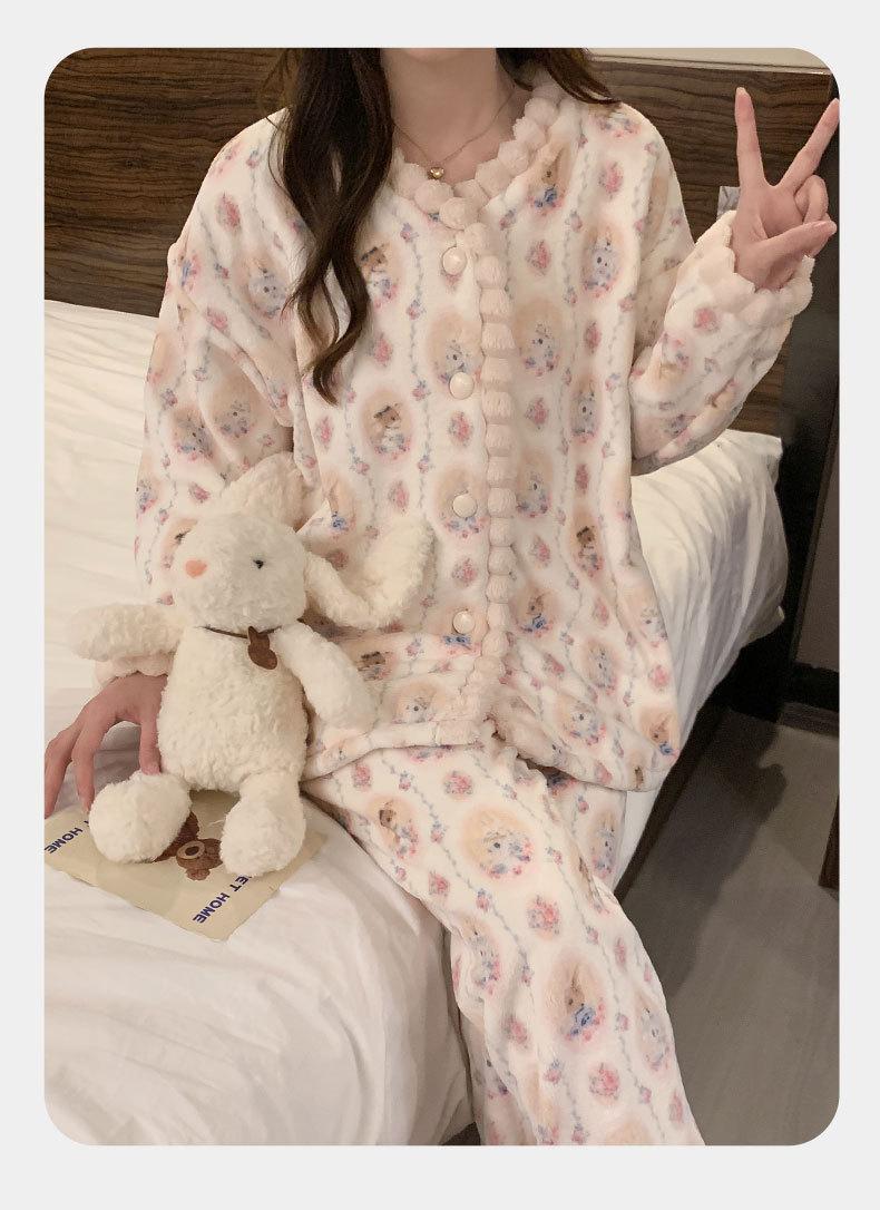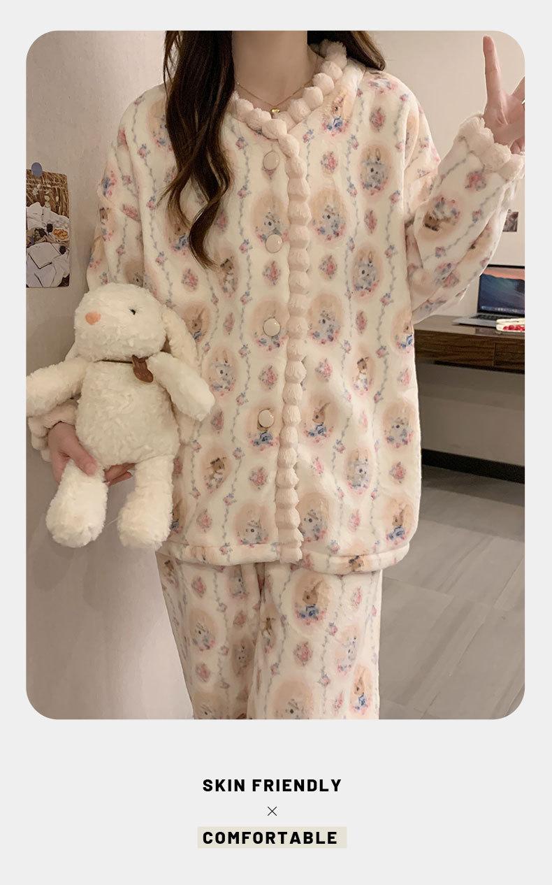 Pijamas de terciopelo coral para mujer, otoño e invierno, gruesos y cálidos, novedad de 2024, ropa de hogar de franela dulce y linda.