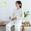 Pijama de gasa doble de algodón puro con cuello redondo sencillo de nuevo estilo para mujer, ropa de casa holgada de hilo fino de algodón para primavera y otoño y verano.