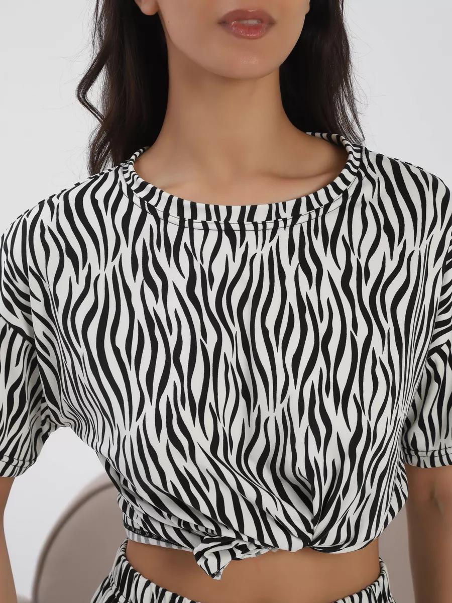 Pijama de verano europeo y americano, holgado, con estampado de leopardo, cómodo, de manga corta, para comercio exterior, para el hogar y exteriores de mujer.