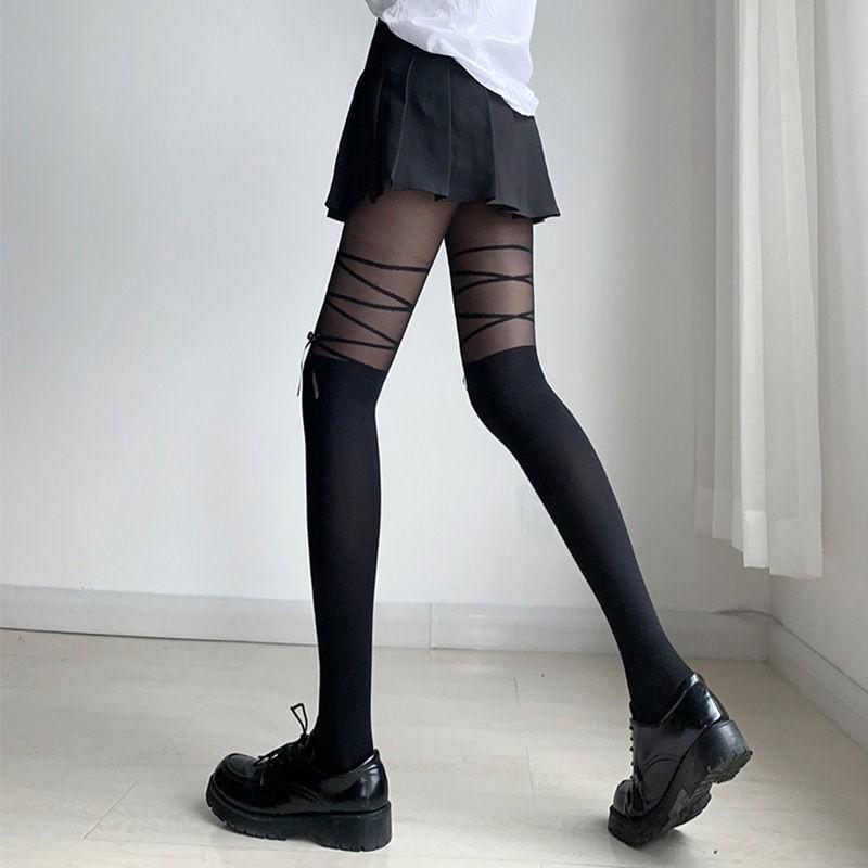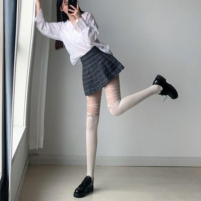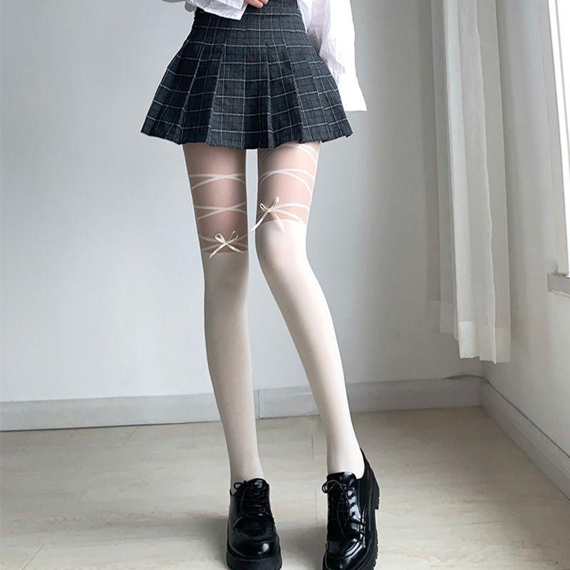 Medias de seda japonesas con costuras cruzadas de otoño, calcetines JK para chicas dulces y sexys, pantimedias de seda negras altas falsas para mujer