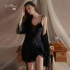 Guiruo Intimates Deseo Puro Transparente Empalme de Malla Dulce Terciopelo Camisón con Tirantes Bata Exterior Más Almohadilla para el Busto Traje para Mujer 4771