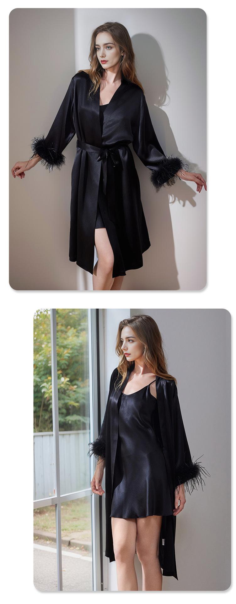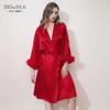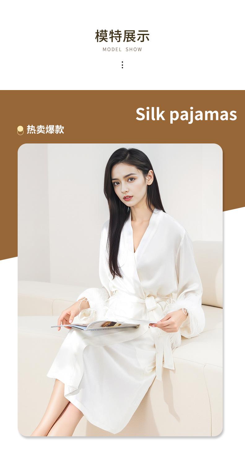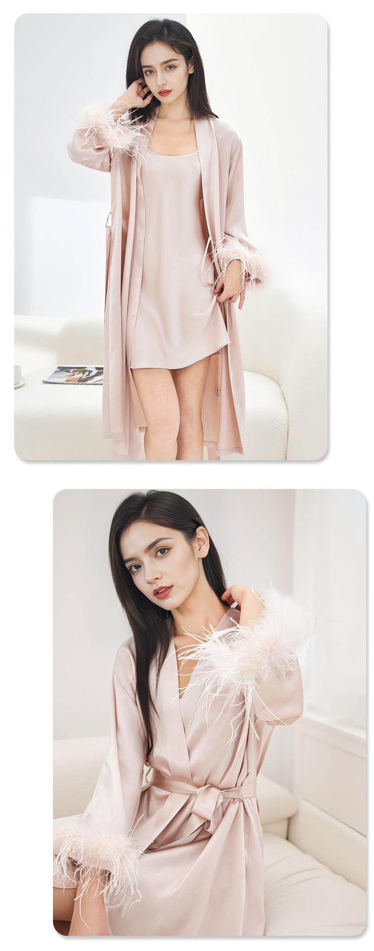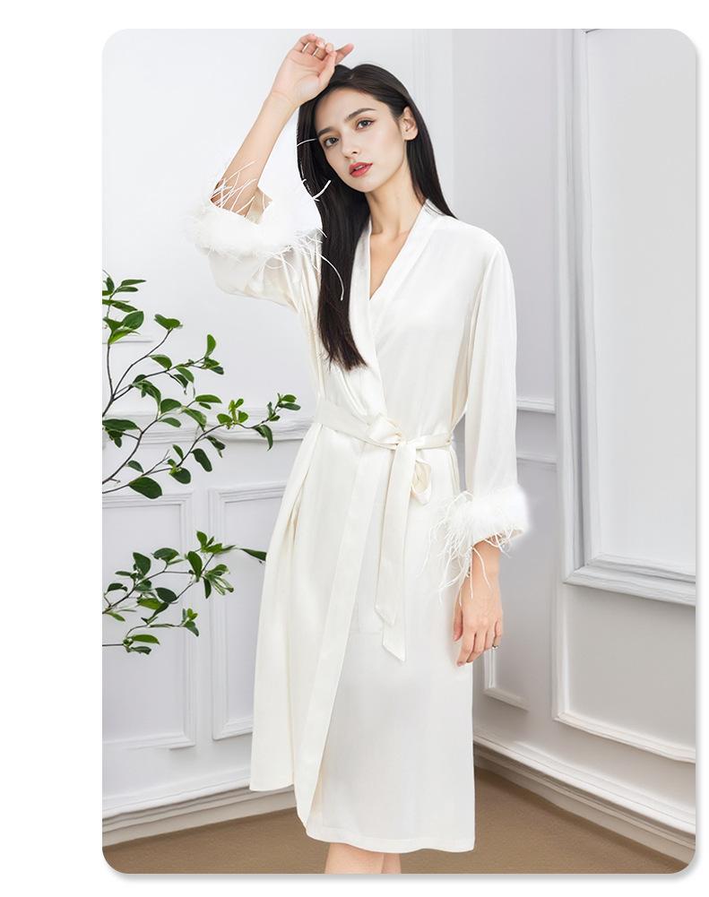 Camisón de Seda Pesada de 19 mm para Mujer, 100% Seda de Morera, Puños de Plumas Desmontables, Ropa de Dormir, Bata