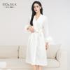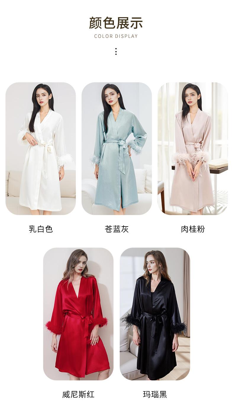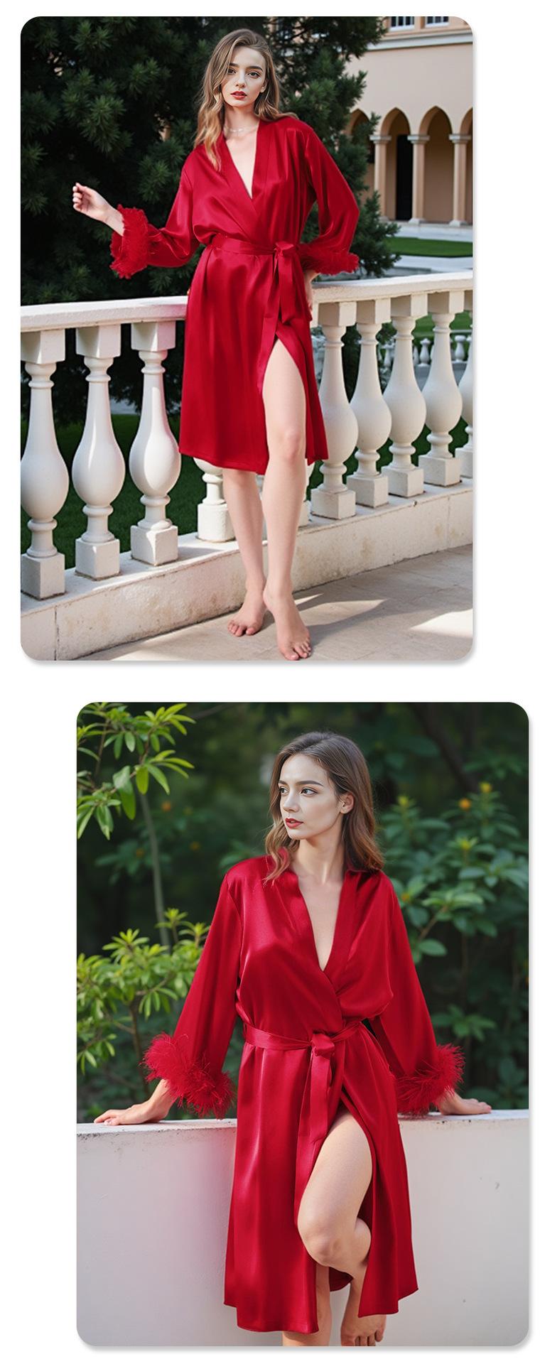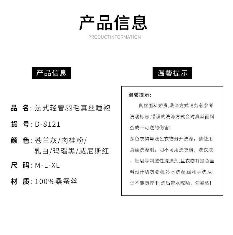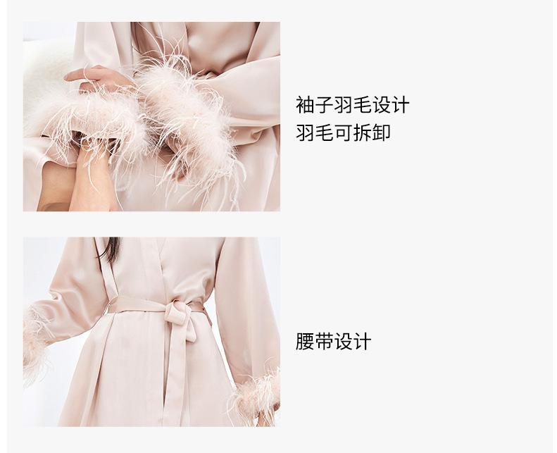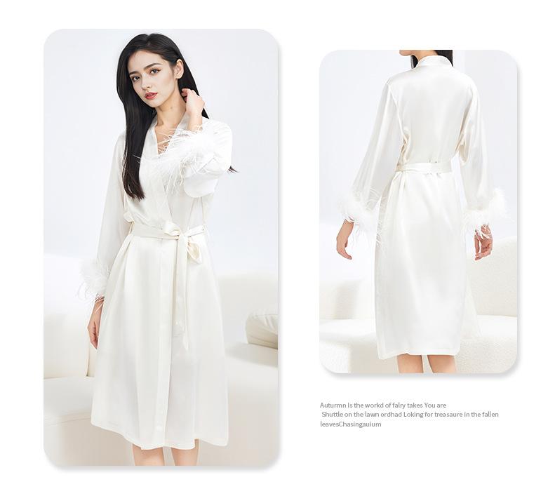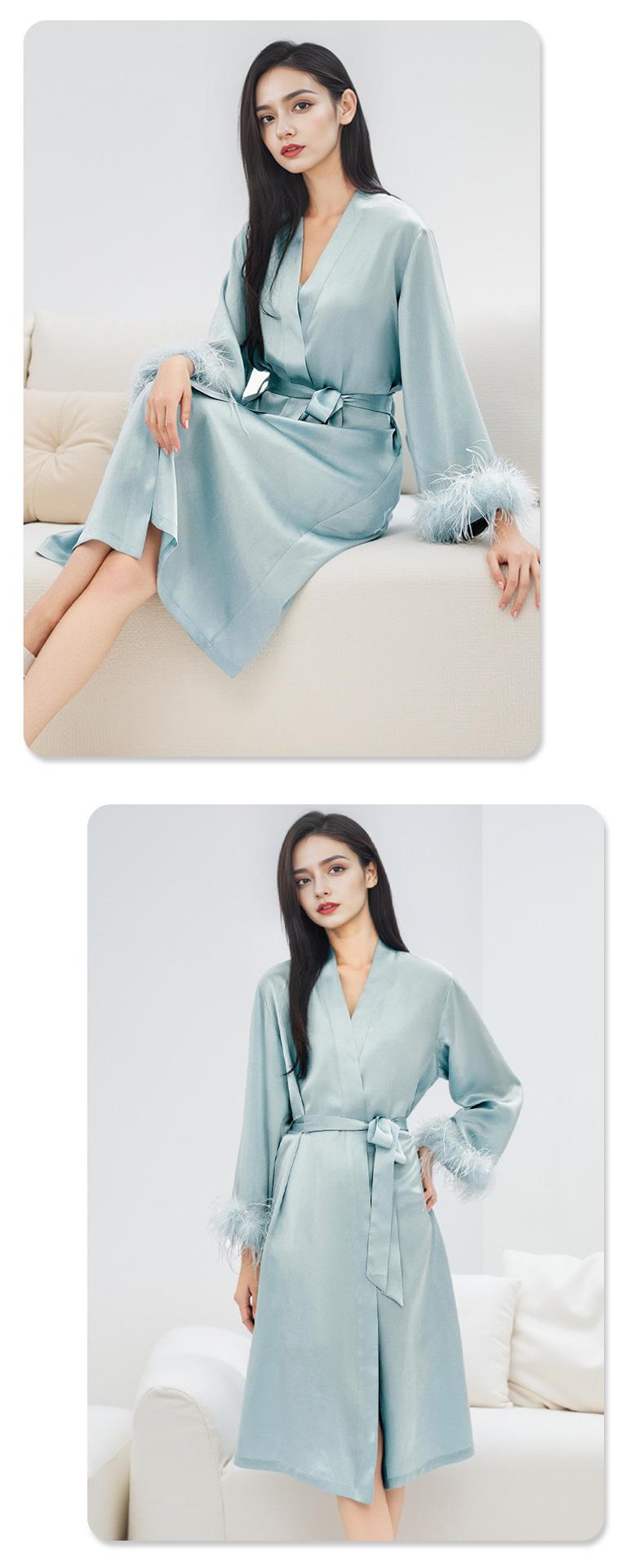 Camisón de Seda Pesada de 19 mm para Mujer, 100% Seda de Morera, Puños de Plumas Desmontables, Ropa de Dormir, Bata