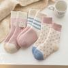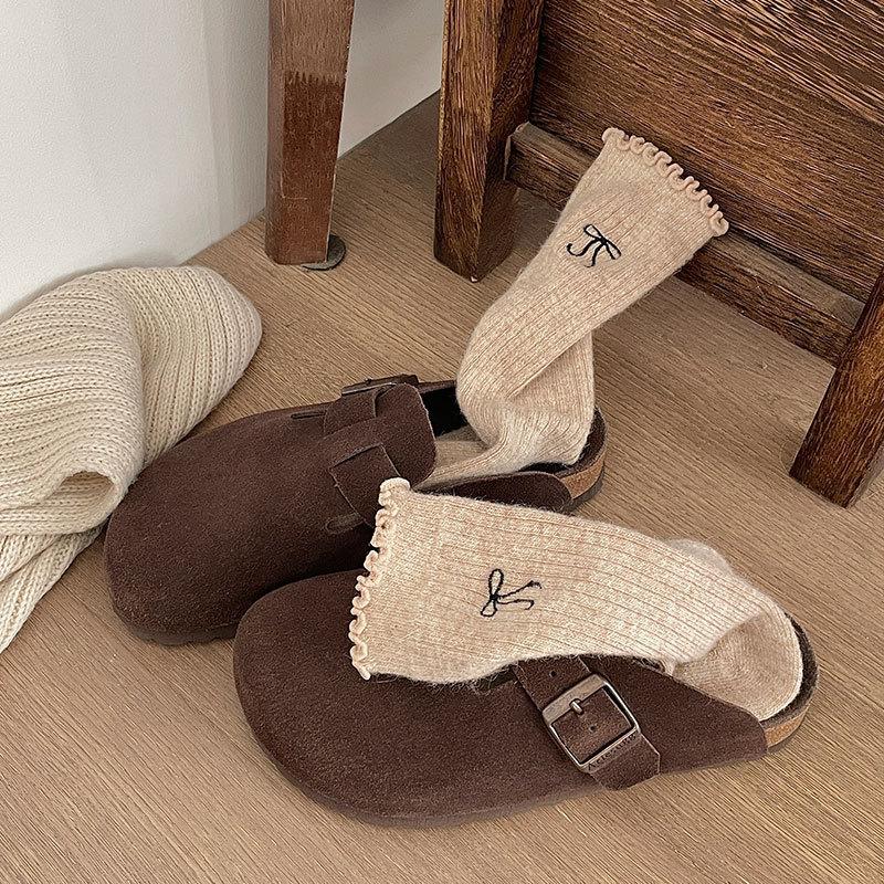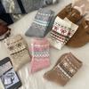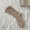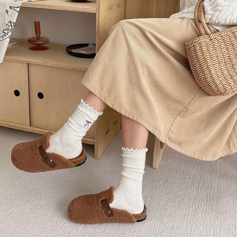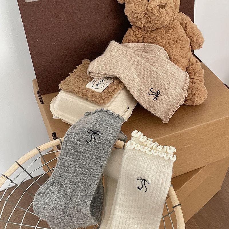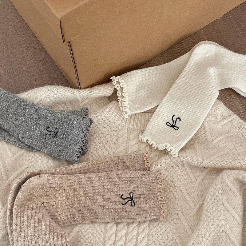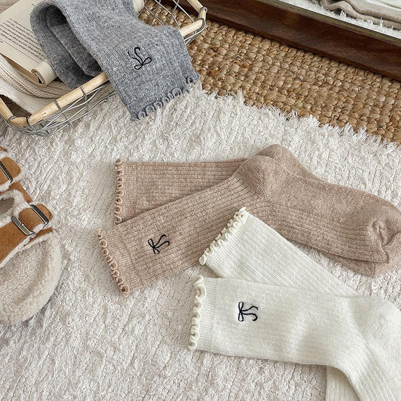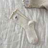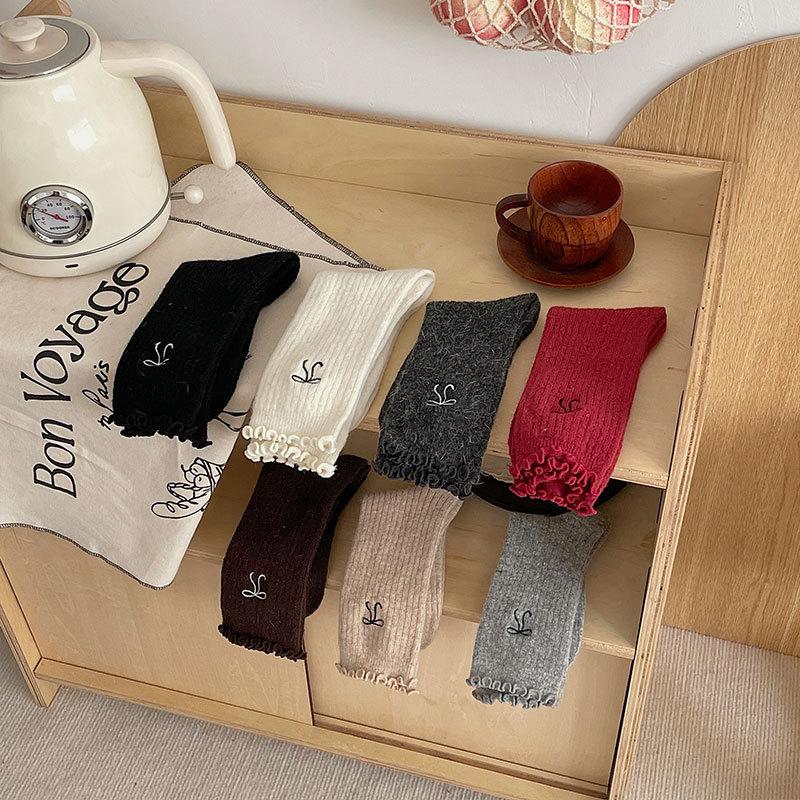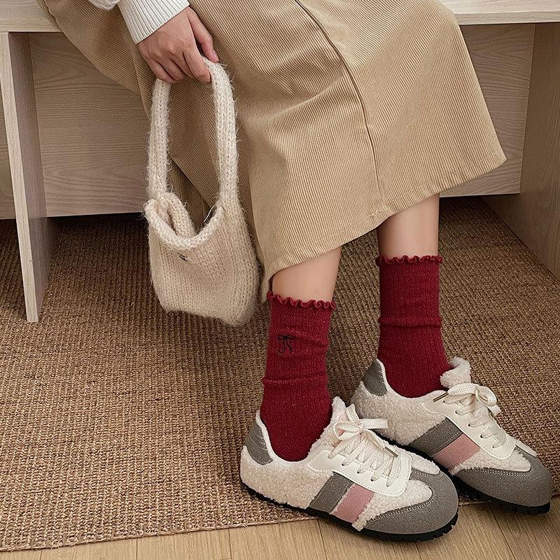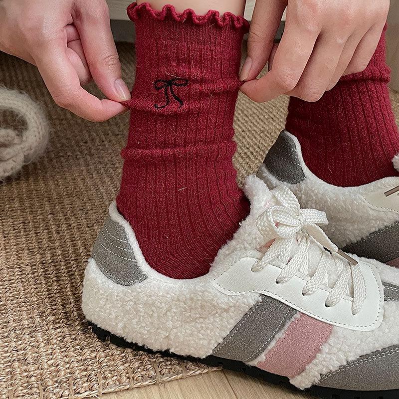 Calcetines de Lana de Invierno Bordado de Lazo Calcetines de Mujer Estilo Coreano Oreja de Madera Calcetines Medios Calcetines Gruesos Cálidos de Pelo de Conejo Apilados