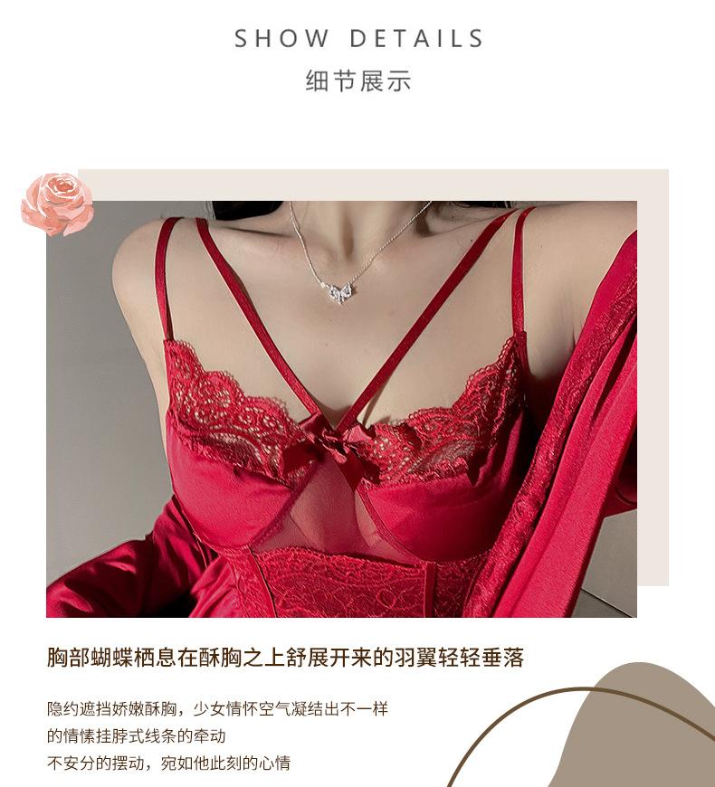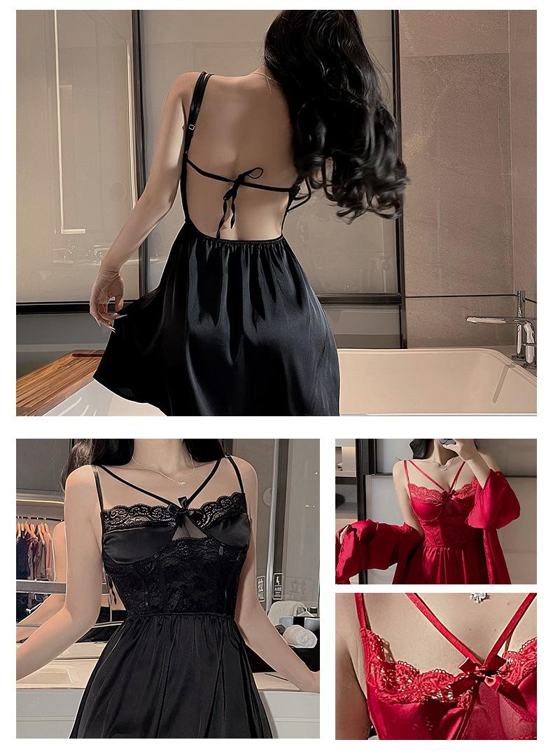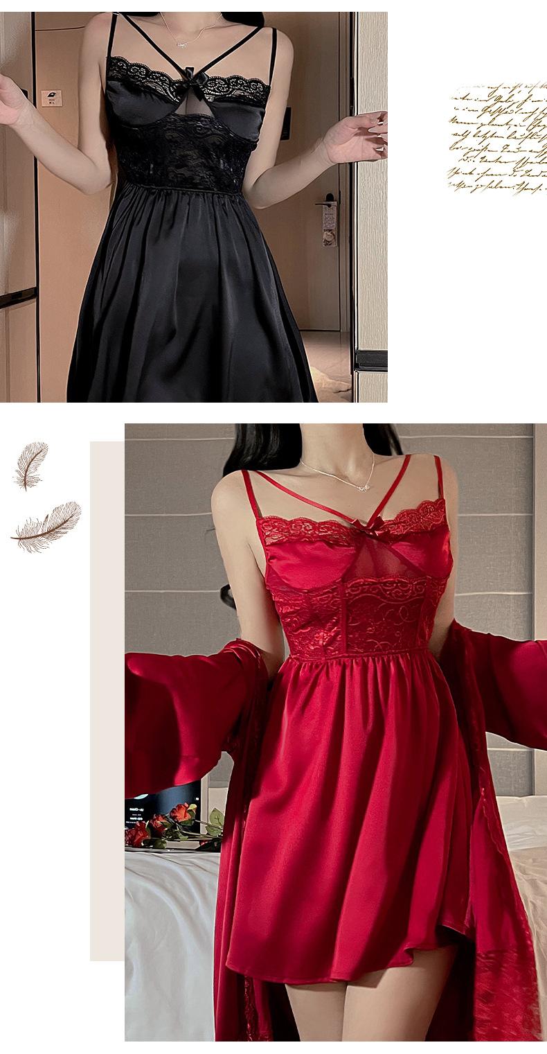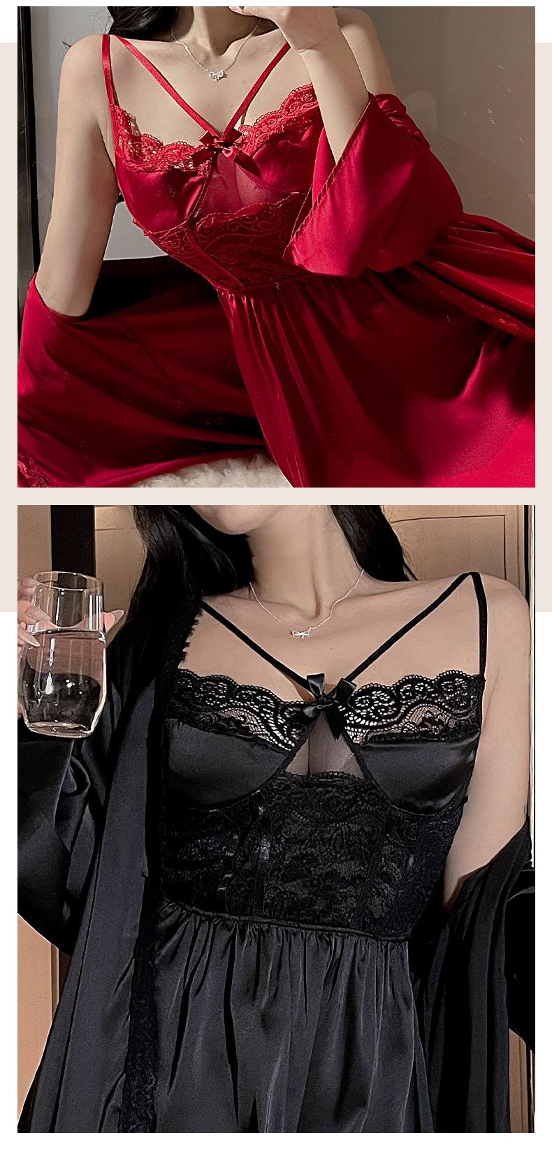 Nightqu's Nuevo Original Seda de Hielo Sexy Prenda Camisón de Tirantes Conjunto de Dos Piezas Encaje Sexy Camisón para el Hogar Dropshipping