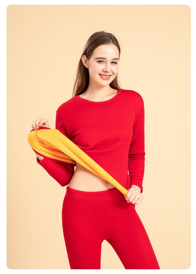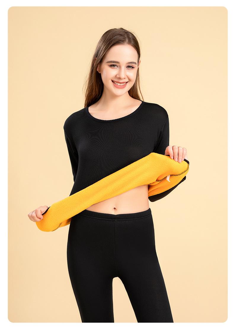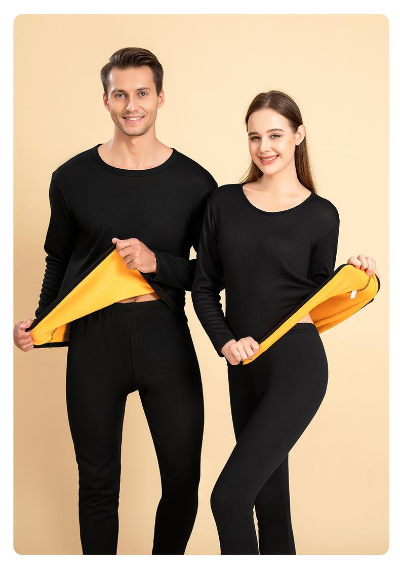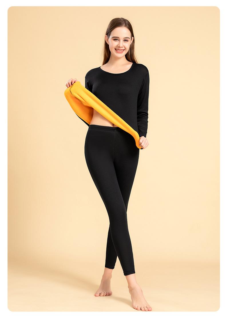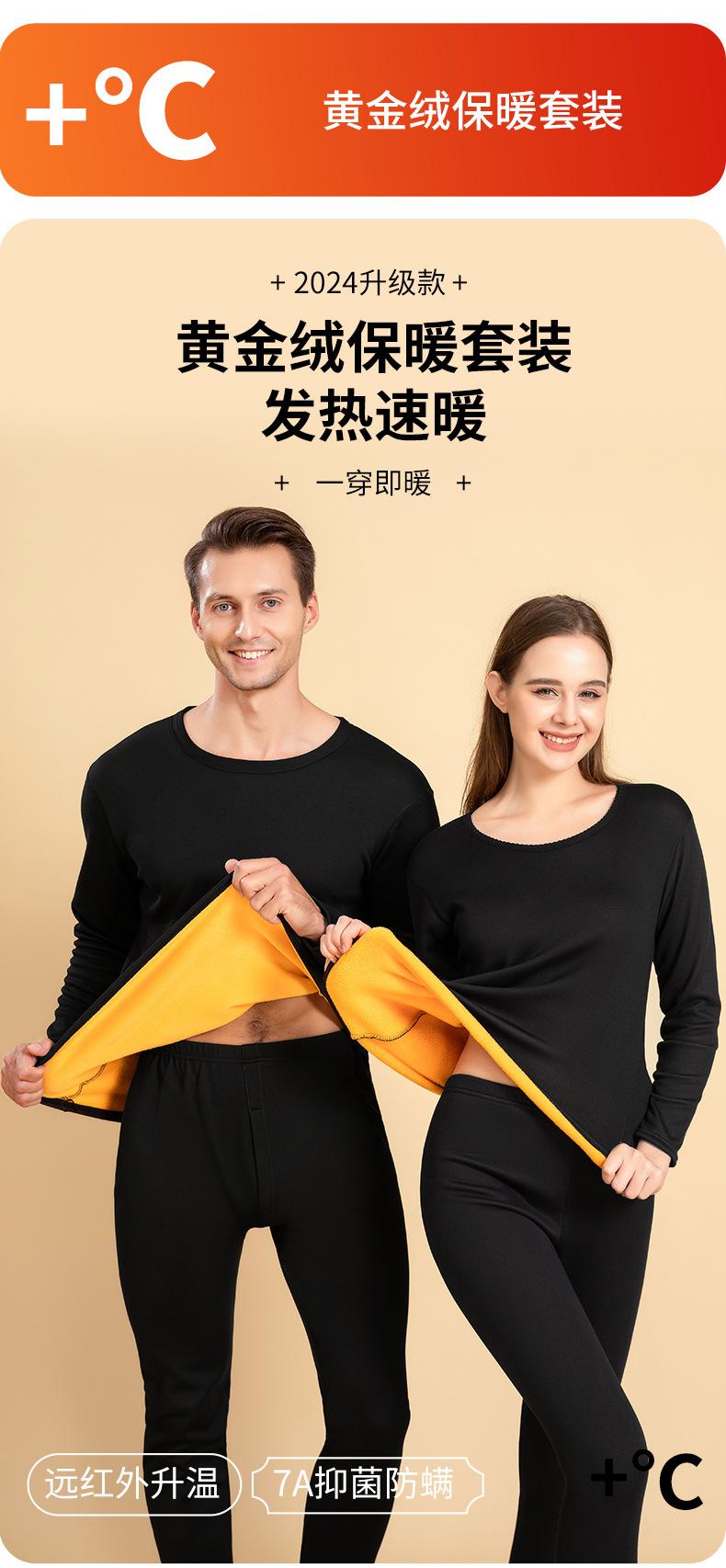 Ropa interior térmica de terciopelo dorado, ropa de otoño y pantalones para mujer, forrados con vellón, gruesos y sin marcas, cuello redondo para hombre, antibacterianos, fideos AB de terciopelo