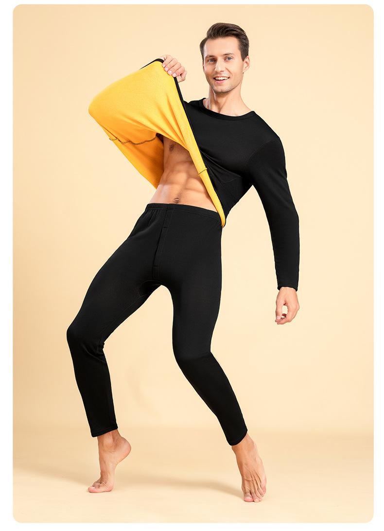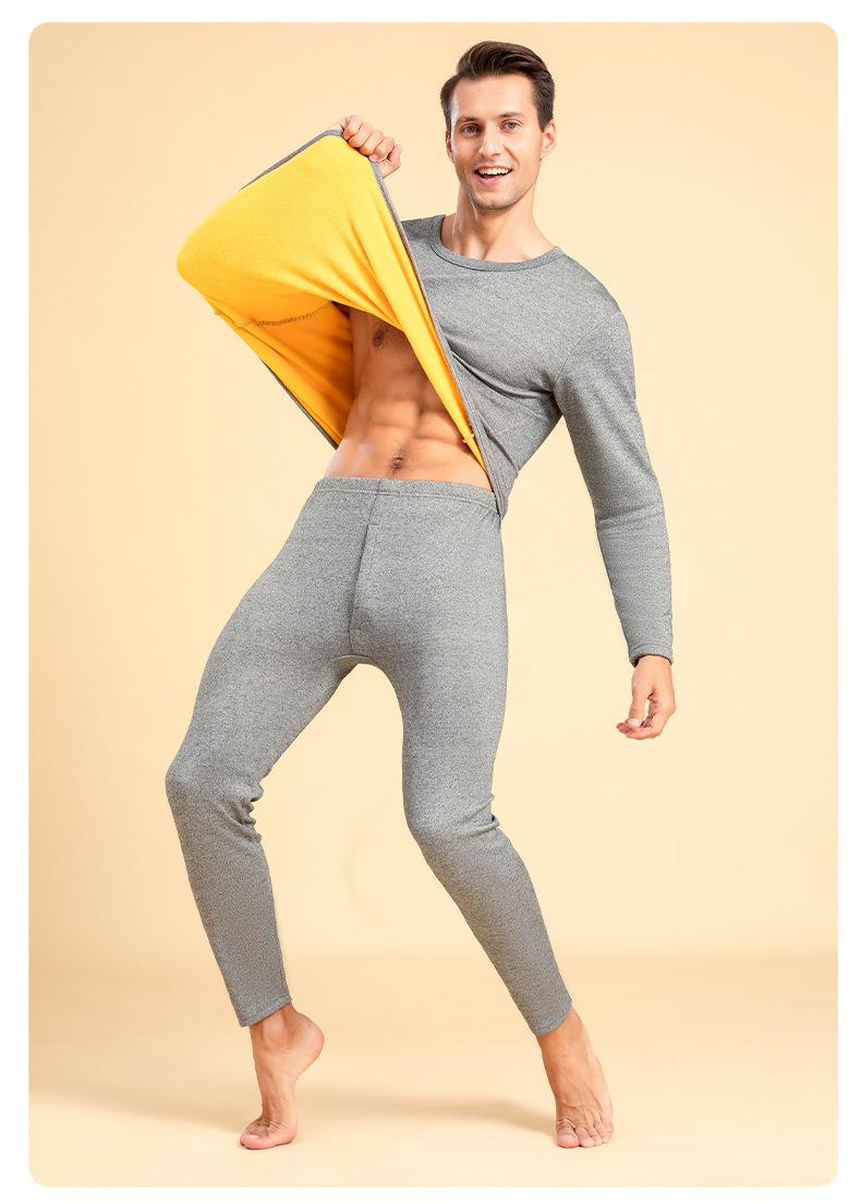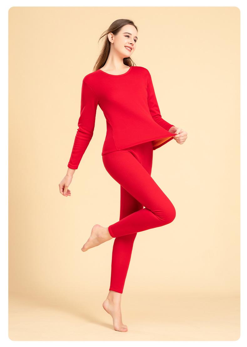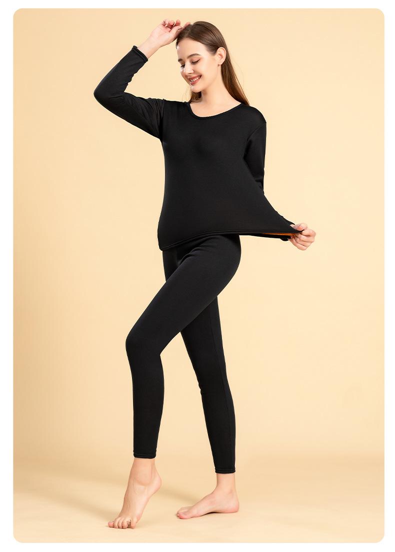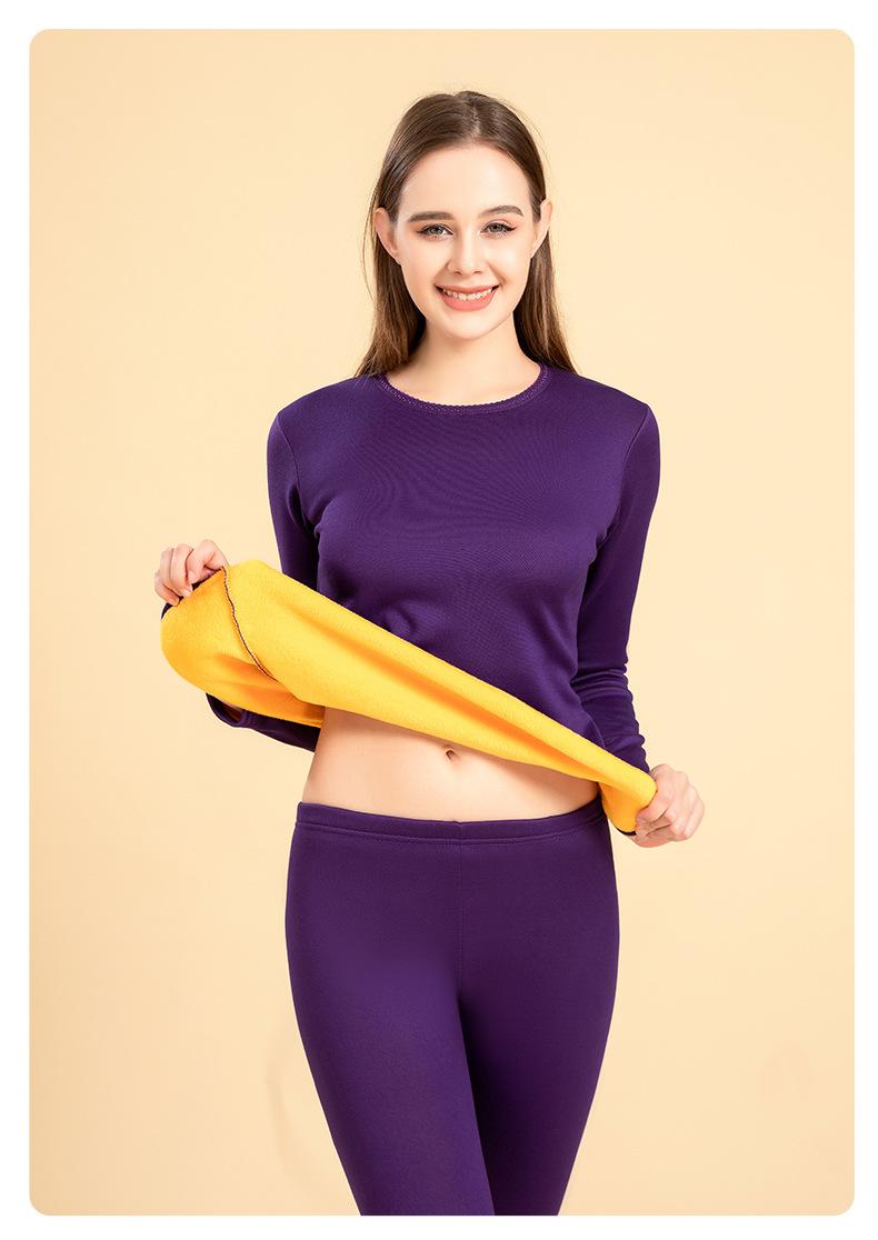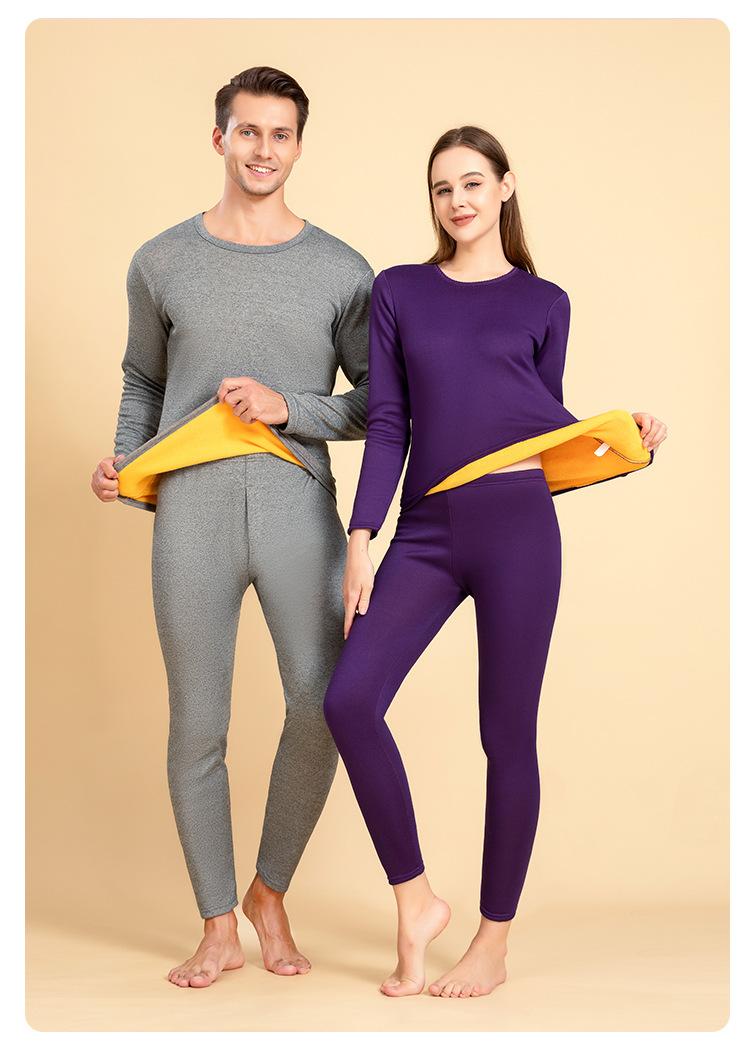 Ropa interior térmica de terciopelo dorado, ropa de otoño y pantalones para mujer, forrados con vellón, gruesos y sin marcas, cuello redondo para hombre, antibacterianos, fideos AB de terciopelo
