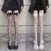 Medias negras sexys de tubo largo para mujer, finas, blancas, hasta la rodilla, negras, con encaje puro hasta la mitad.