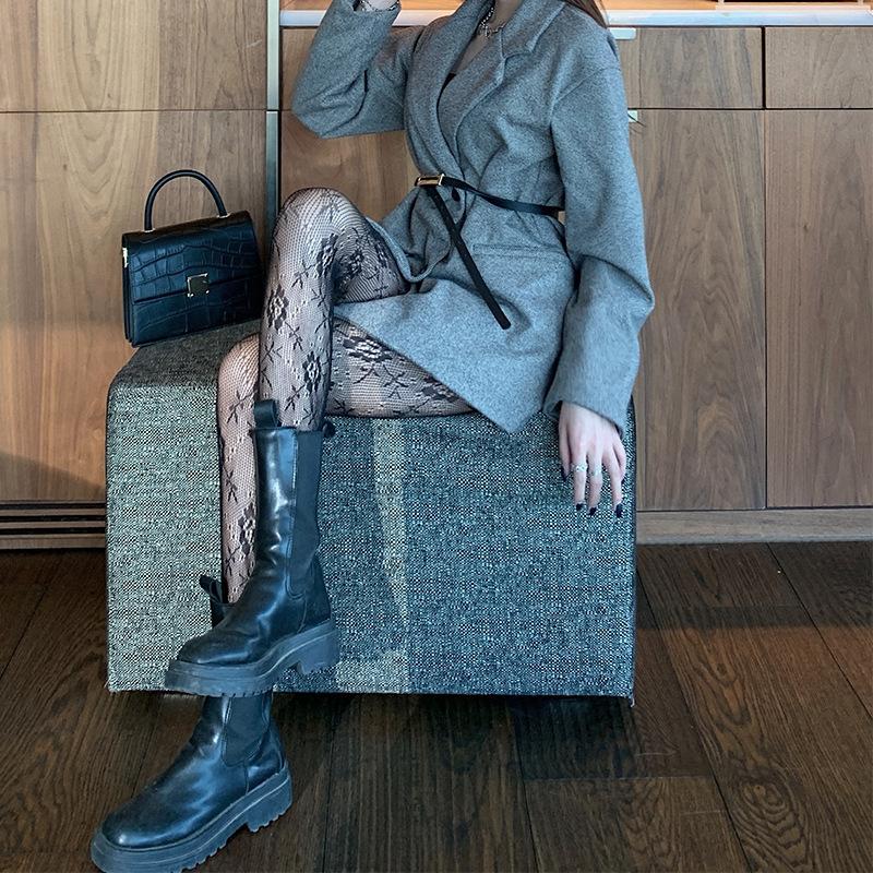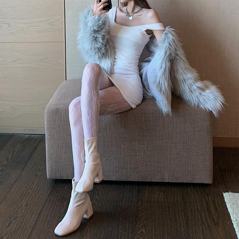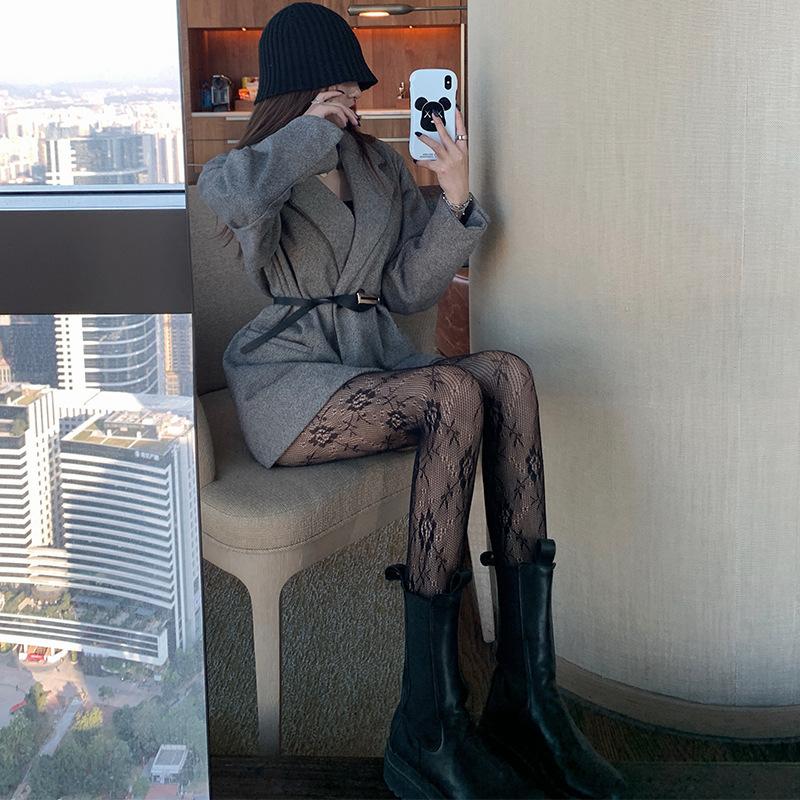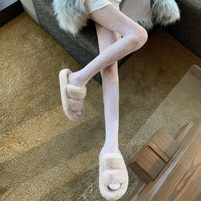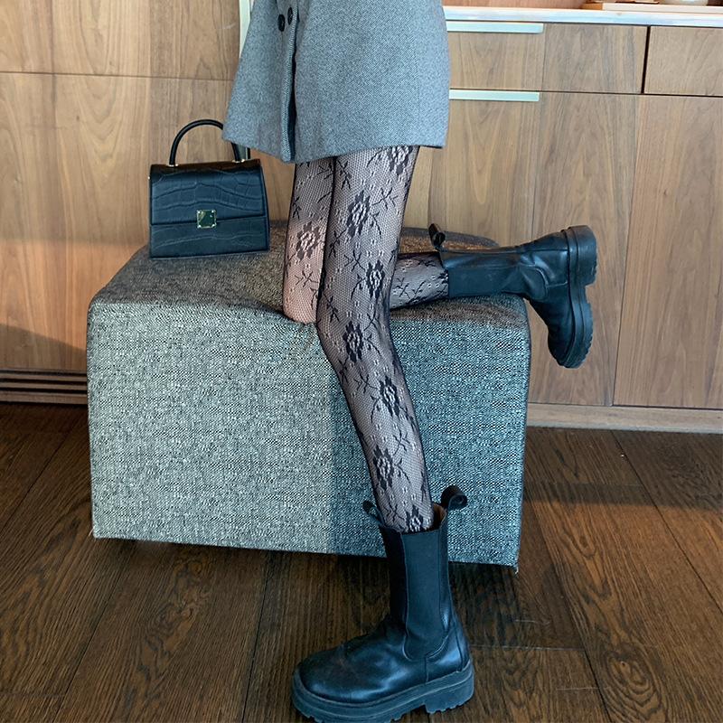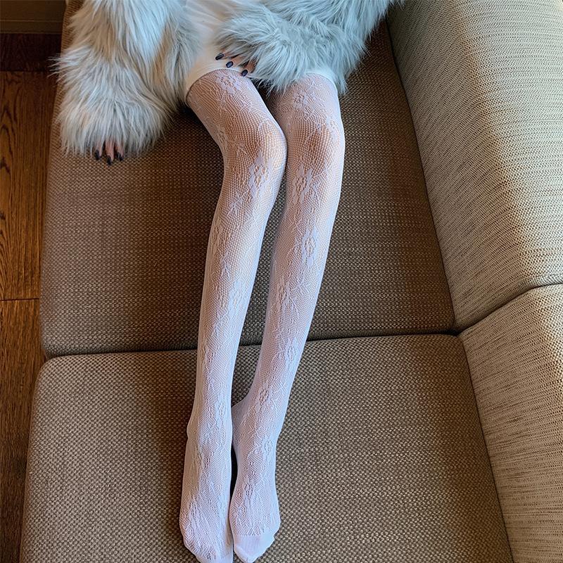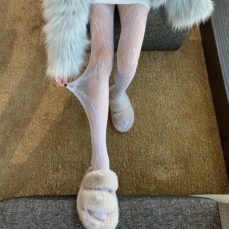 Medias de rejilla Spice Girls de seda negra con lazo hueco y estampado jacquard, pantimedias sexys de encaje oscuro antigancho