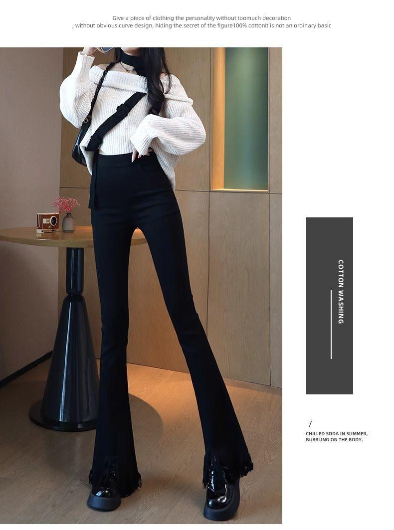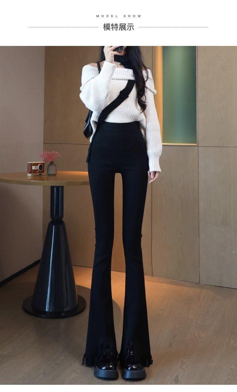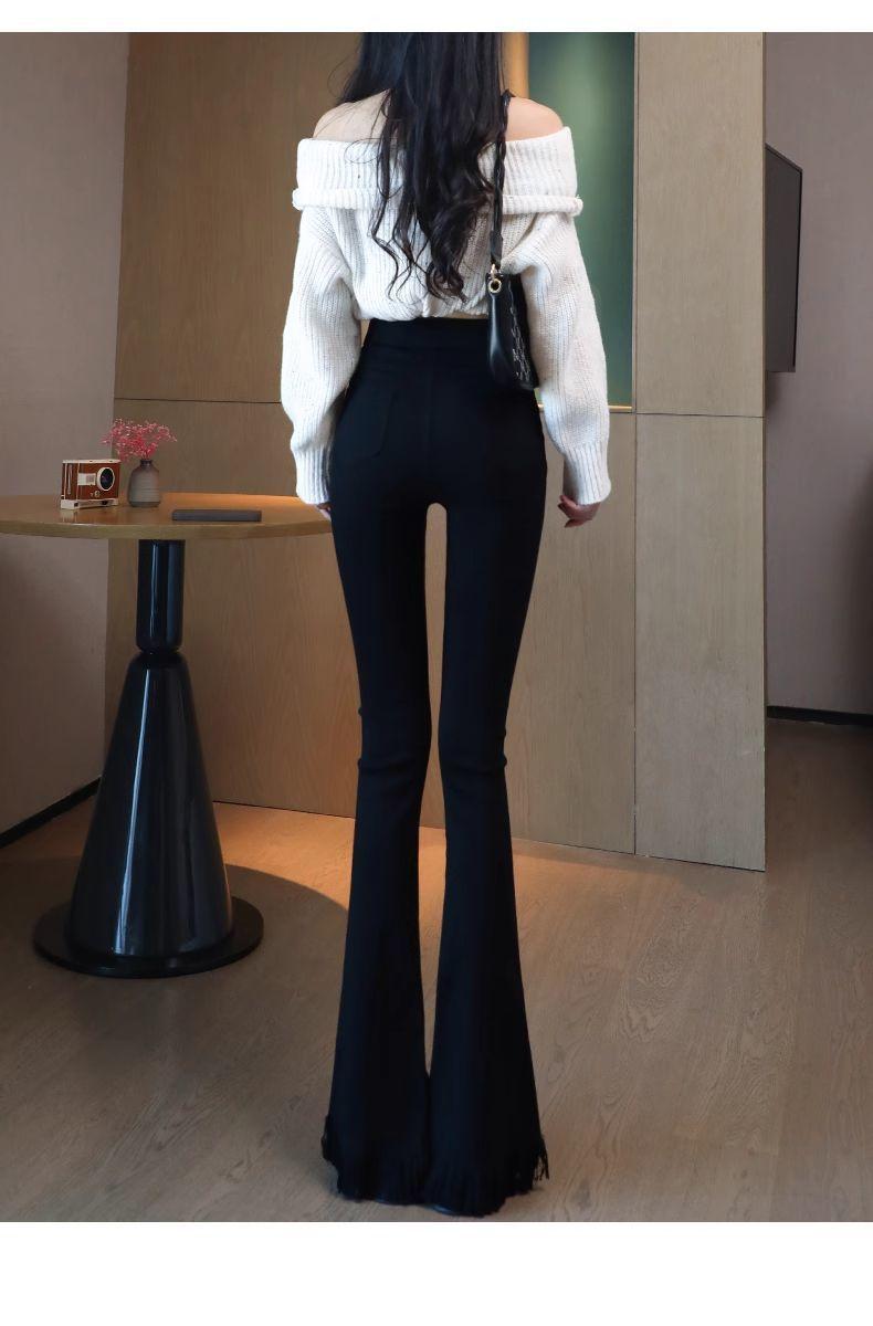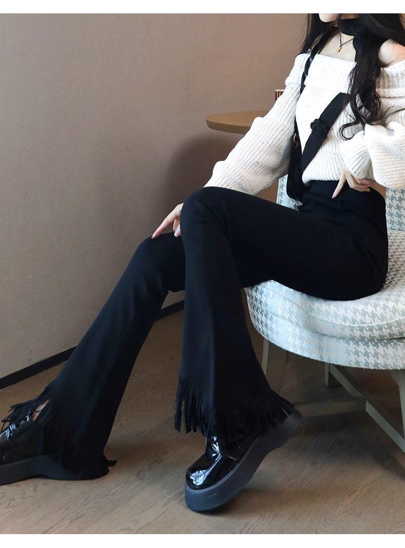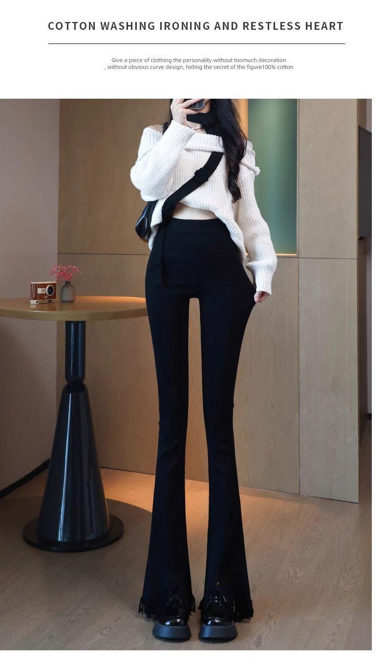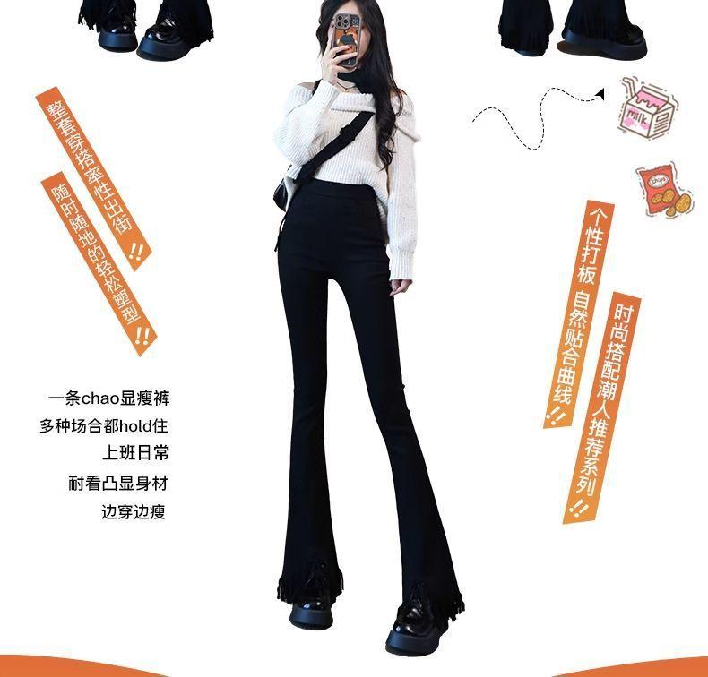 Pantalones acampanados con borlas negras para mujer, primavera y otoño, nuevos pantalones de talle alto con flecos y herraduras divididas.