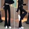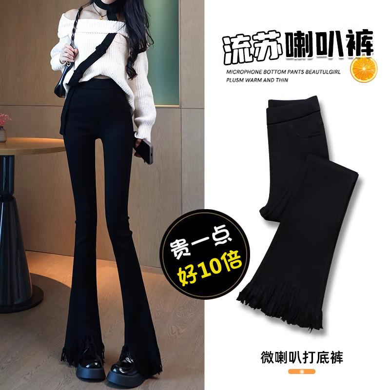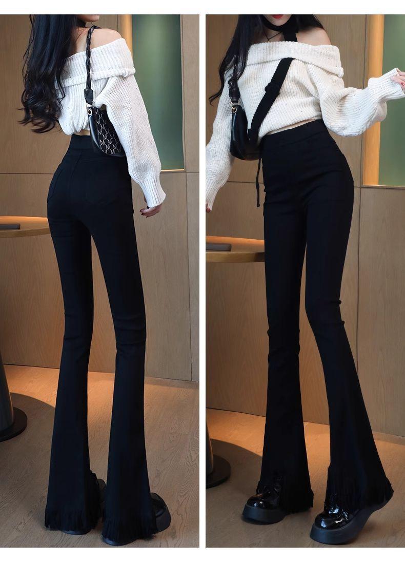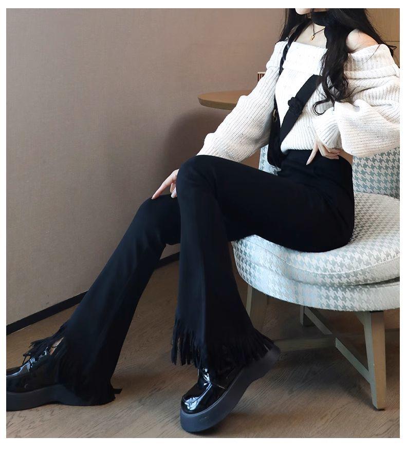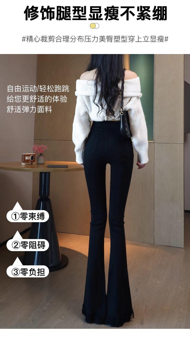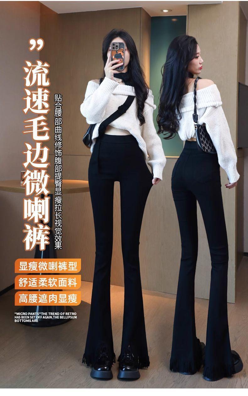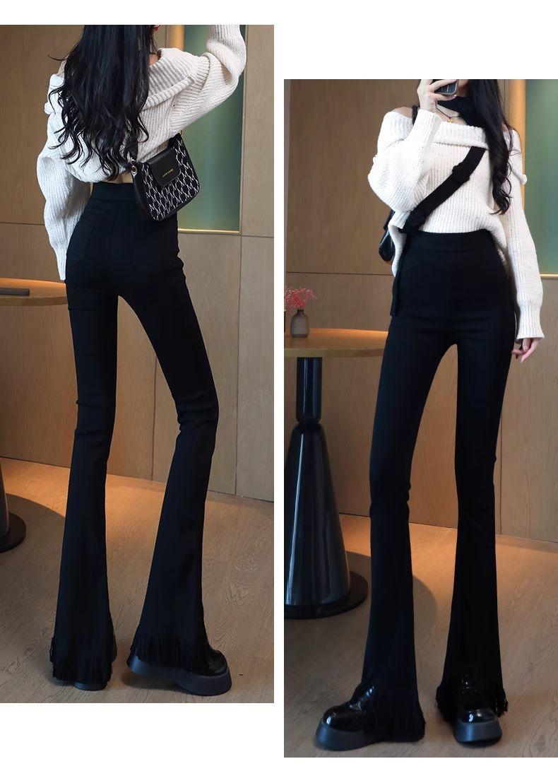 Pantalones acampanados con borlas negras para mujer, primavera y otoño, nuevos pantalones de talle alto con flecos y herraduras divididas.