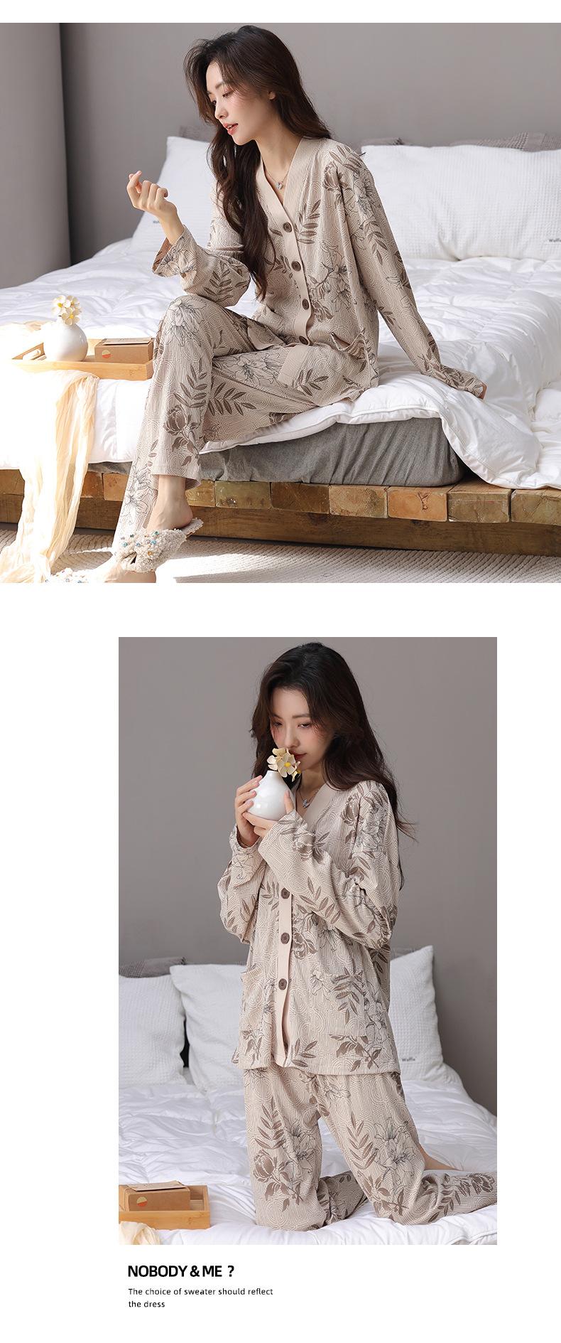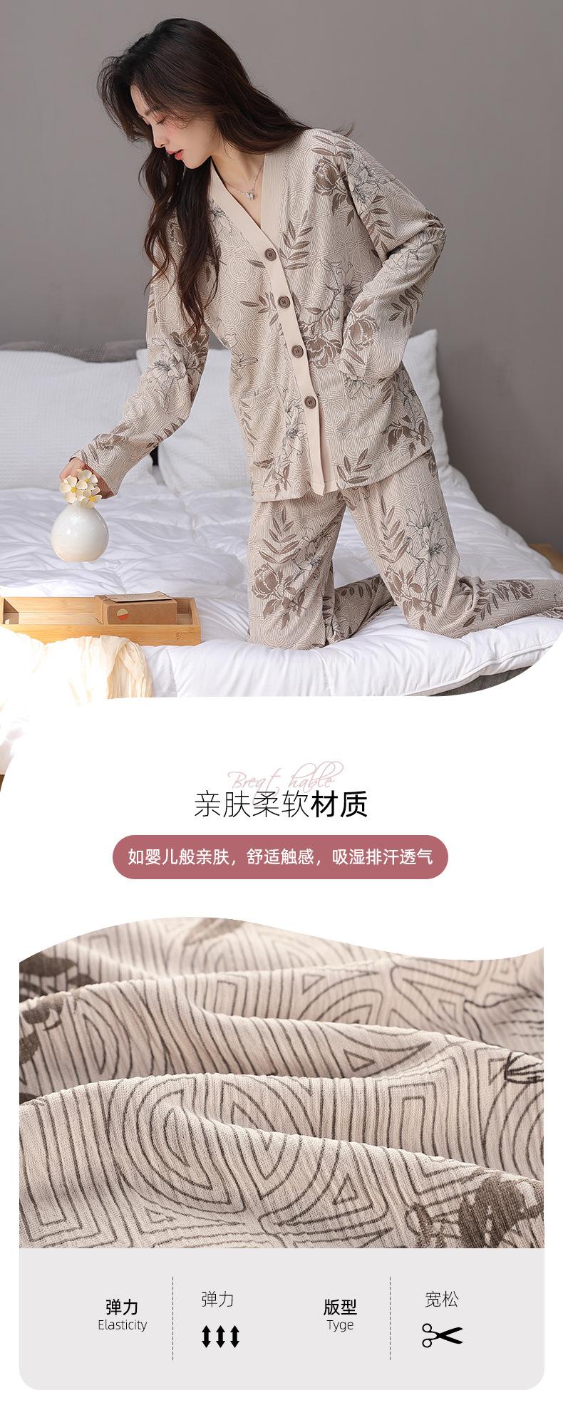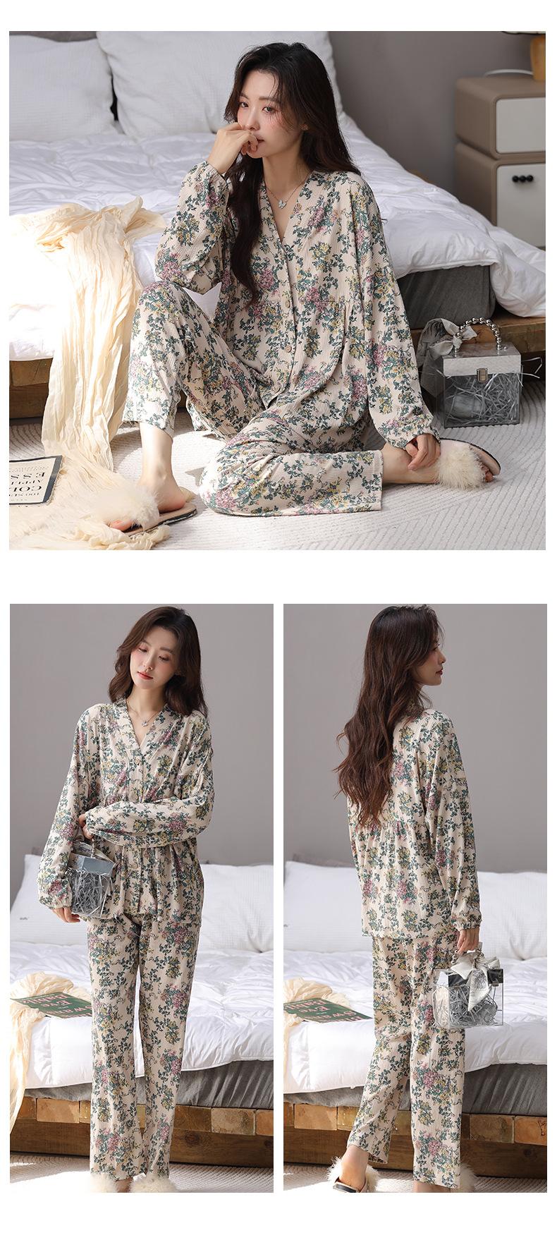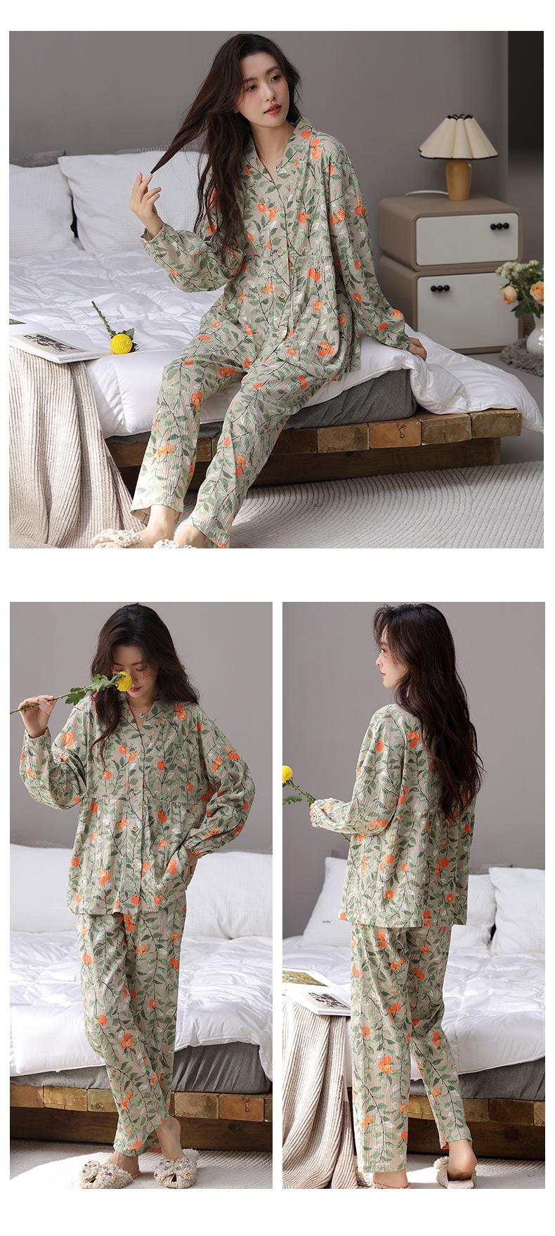 En stock Cárdigan de algodón arrugado de primavera y otoño, pijamas dulces para mujer, traje holgado de manga larga de talla grande, ropa para el hogar con almohadilla para el pecho