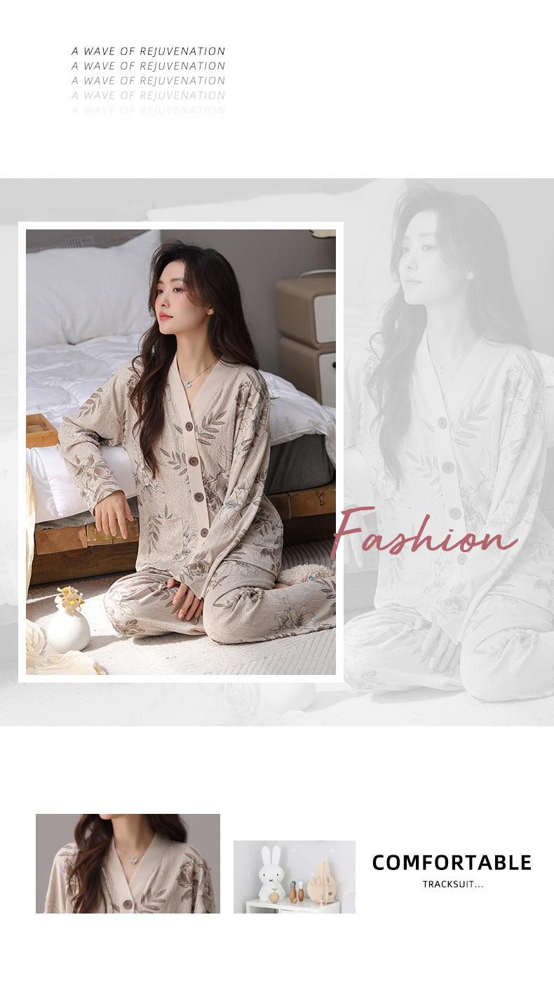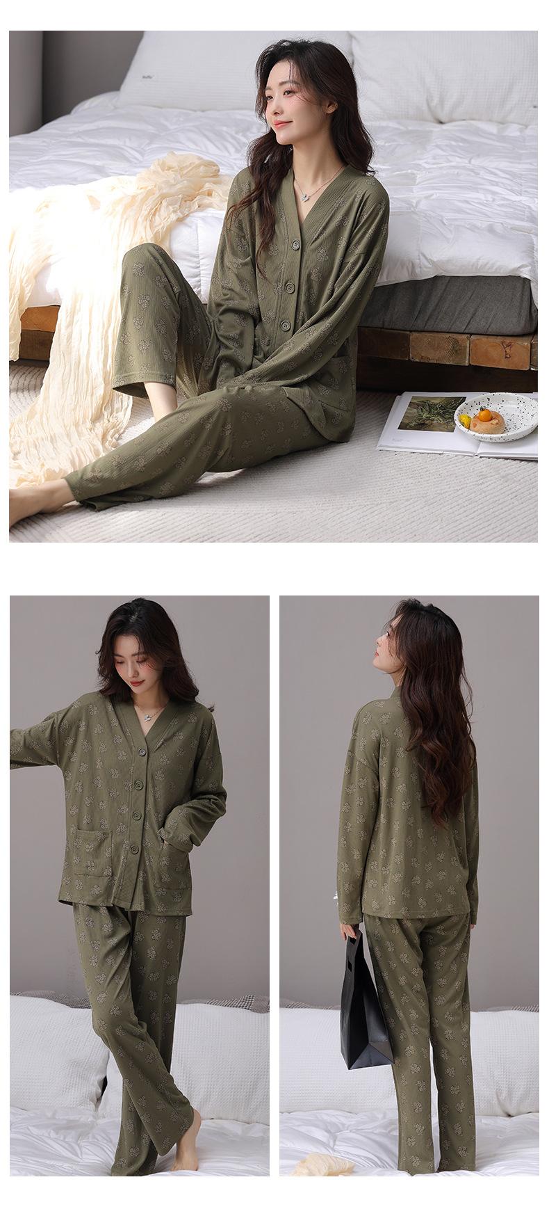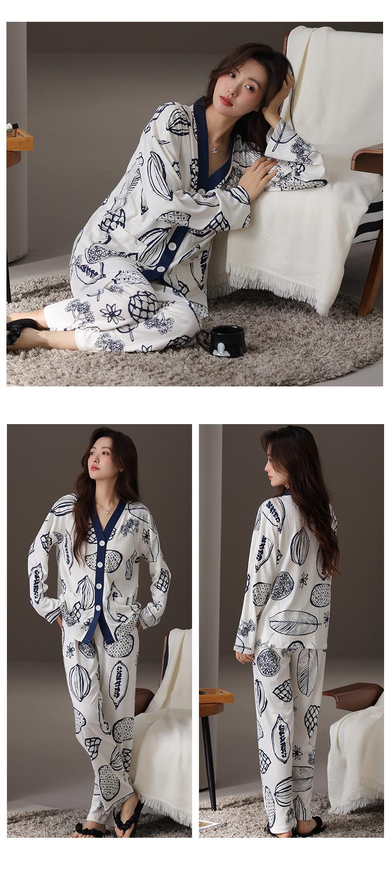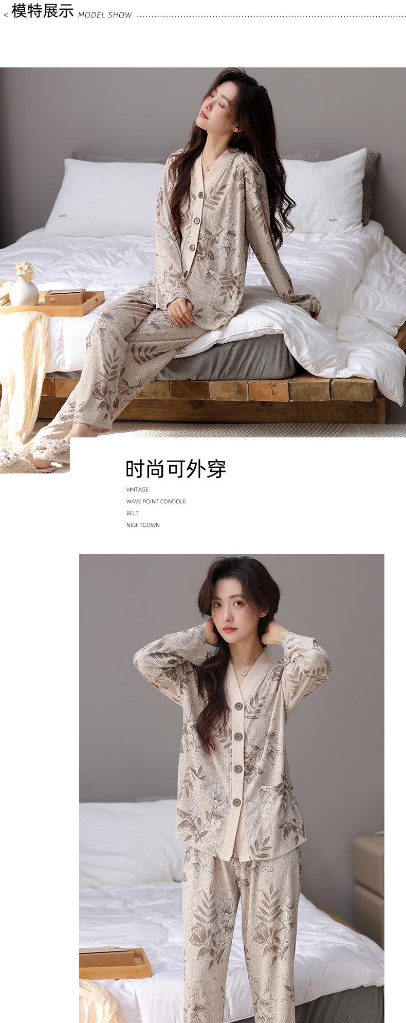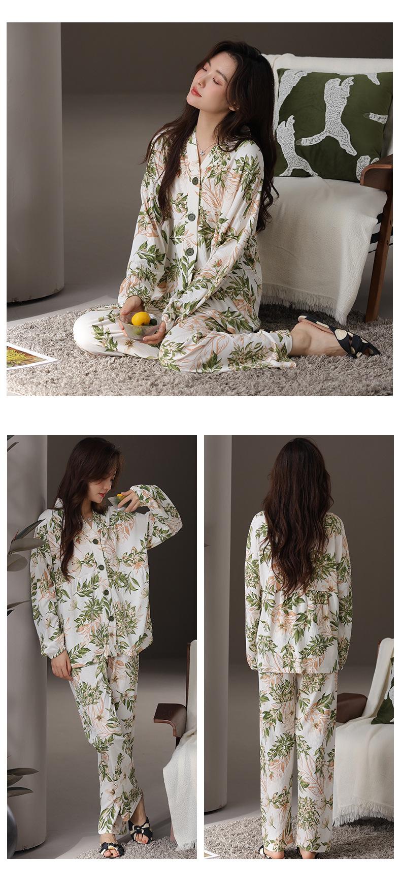 En stock Cárdigan de algodón arrugado de primavera y otoño, pijamas dulces para mujer, traje holgado de manga larga de talla grande, ropa para el hogar con almohadilla para el pecho