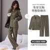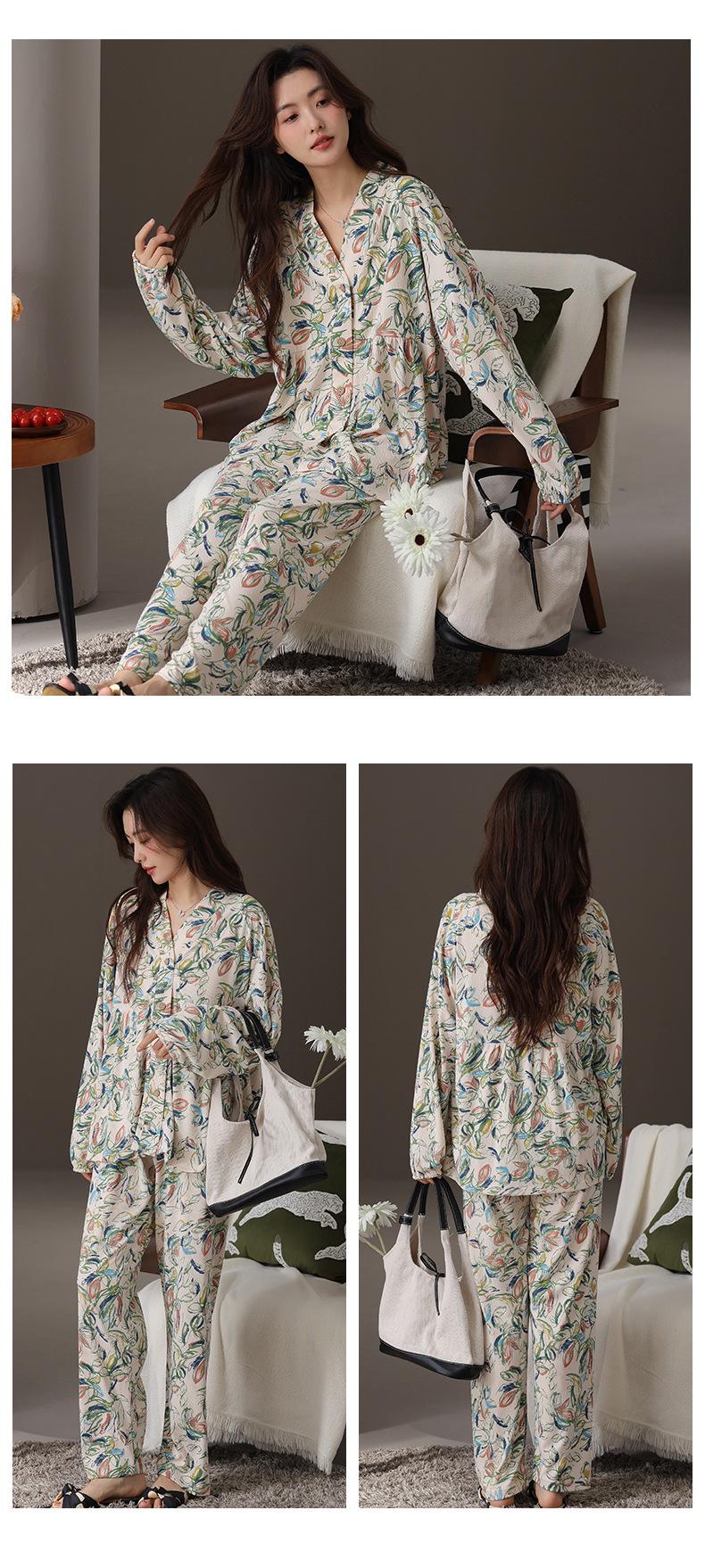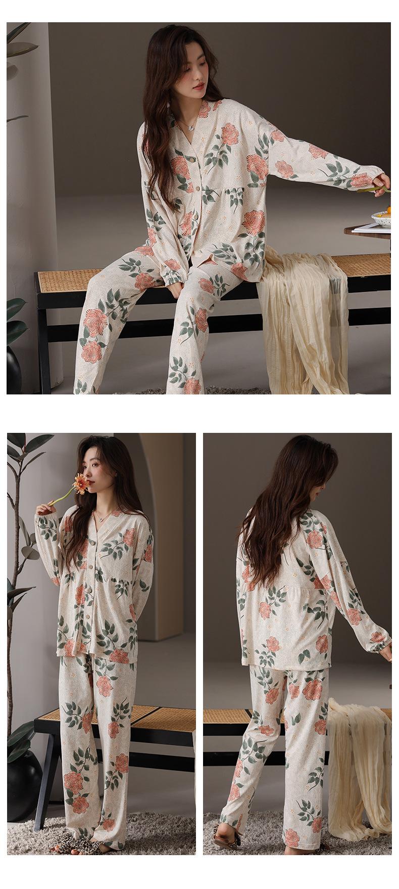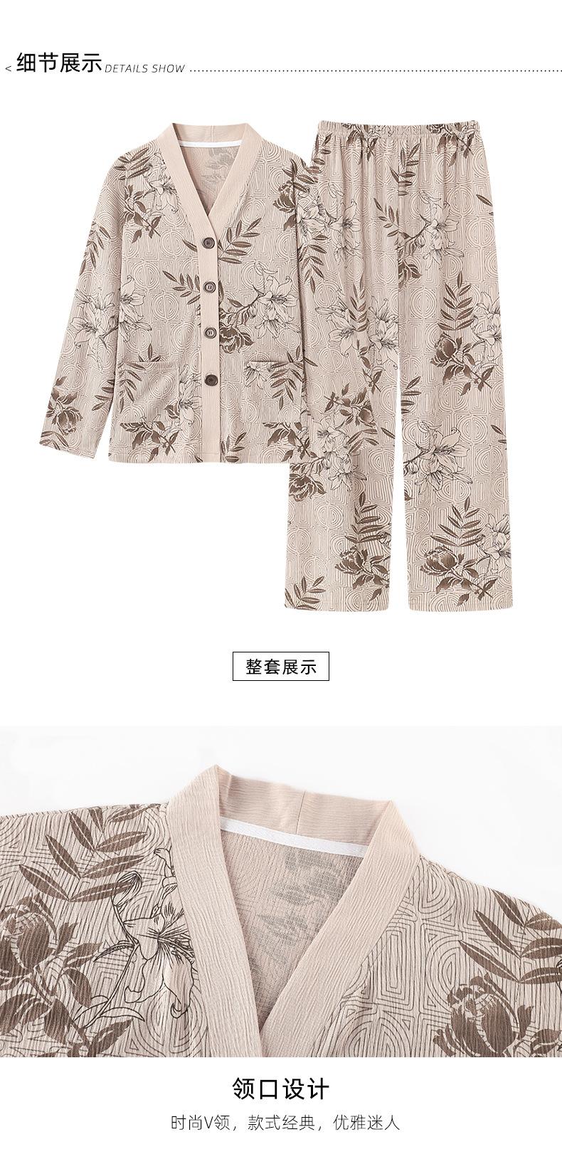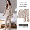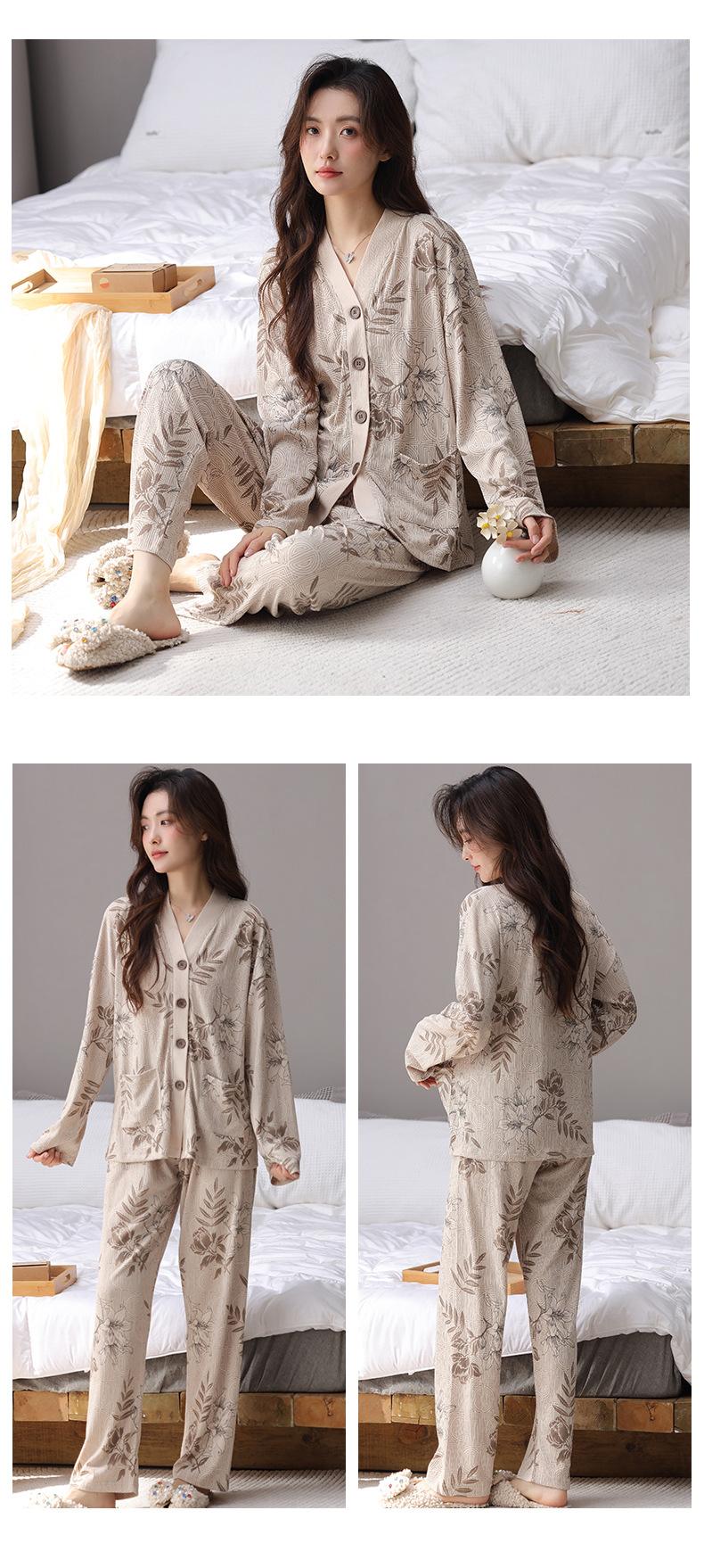 En stock Cárdigan de algodón arrugado de primavera y otoño, pijamas dulces para mujer, traje holgado de manga larga de talla grande, ropa para el hogar con almohadilla para el pecho