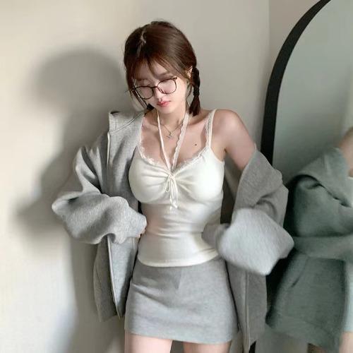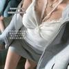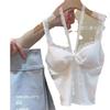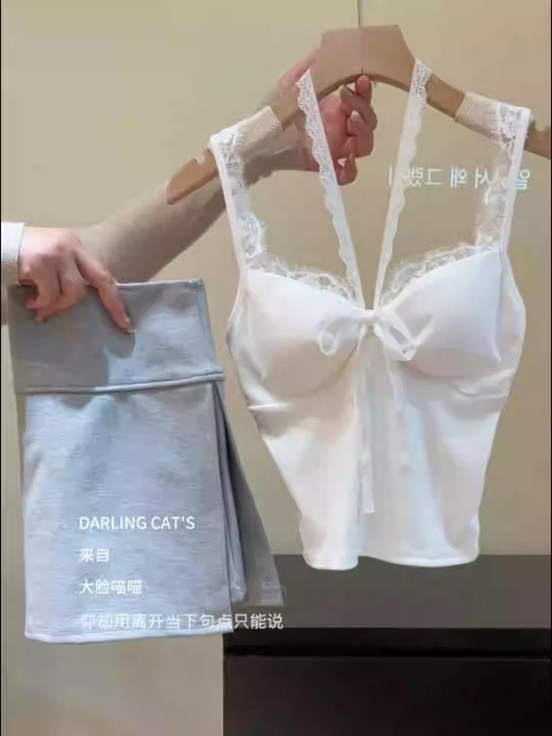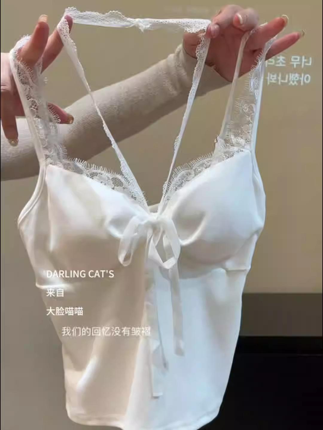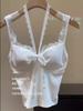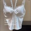 Camisola de Chica Caliente Encaje Puro Lazo Halter Cuello Camiseta Interior con Almohadillas para el Busto y Top Delgado Sexy
