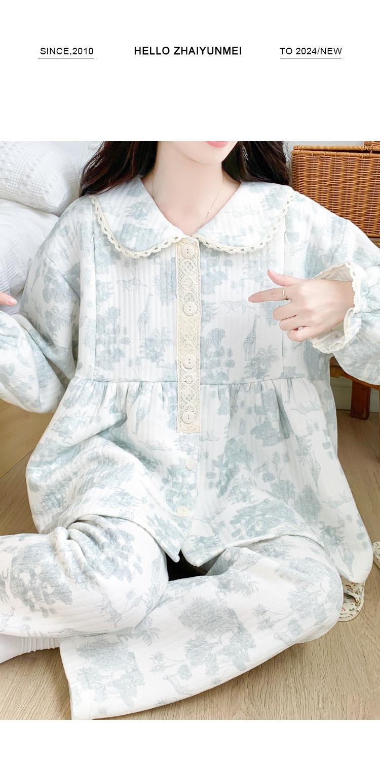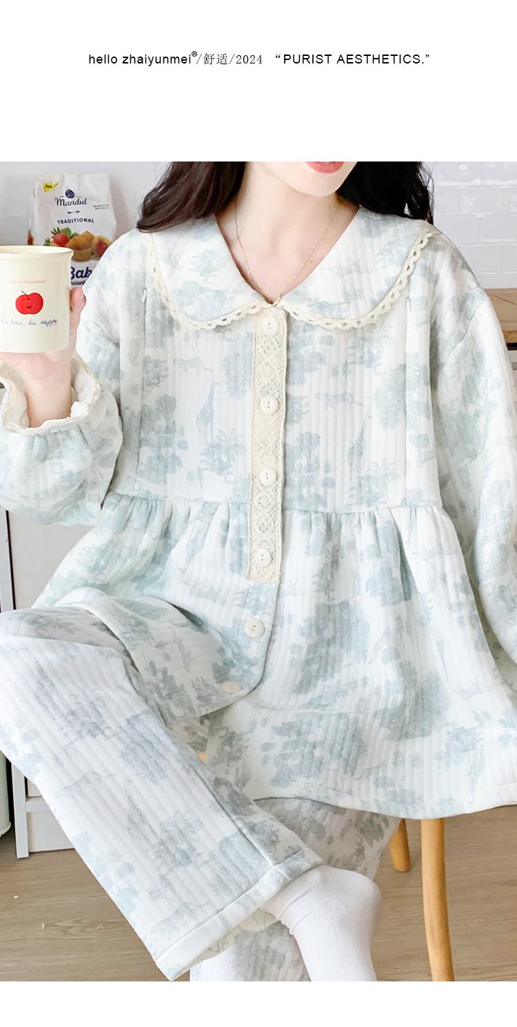 Ropa Postparto un Pijama de Maternidad Algodón Aire Otoño e Invierno Lactancia Postparto Conjunto de Ropa para el Hogar de Maternidad Antibacteriano y Cálido