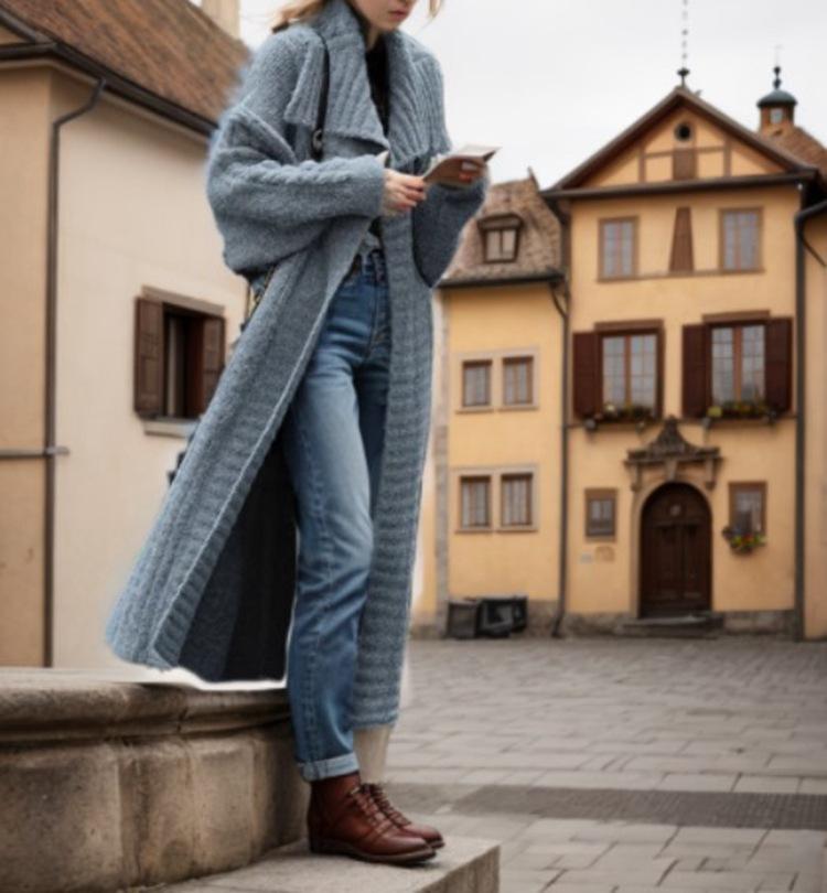 Cárdigan de Punto para Mujer Otoño e Invierno Europeo y Americano Nuevo Estilo Amazon Solapa Color Puro Geométrico Talla Grande Abrigo Suéter