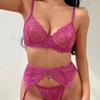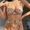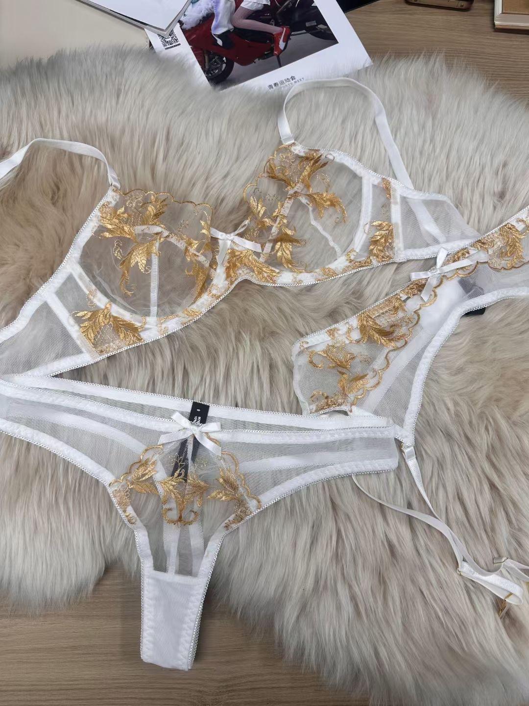 Lencería Sexy Europea y Americana, Ropa Interior Francesa de Encaje Bordado Ultradelgado, Pechos Grandes, Conjunto de Tres Piezas Anticaída