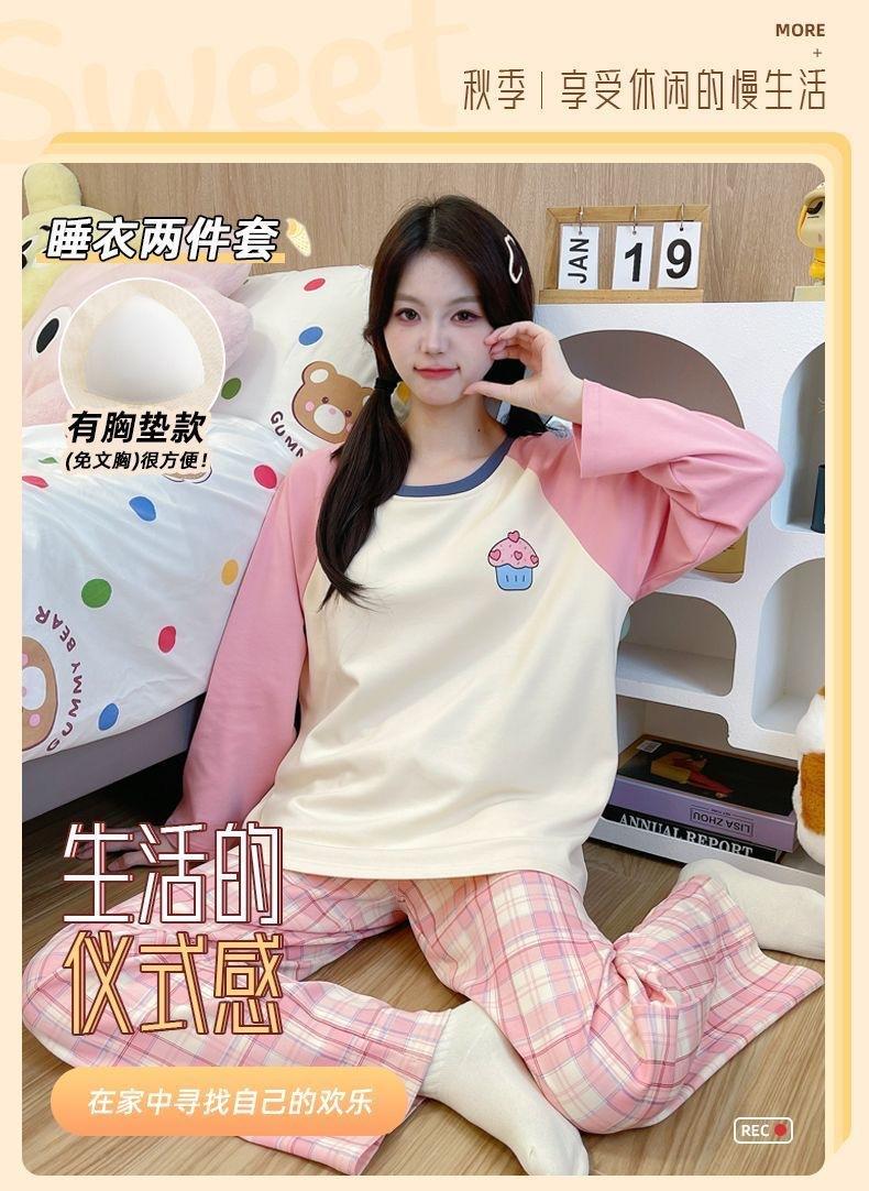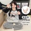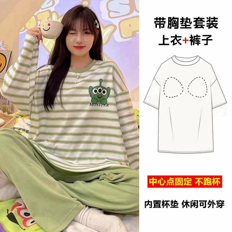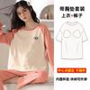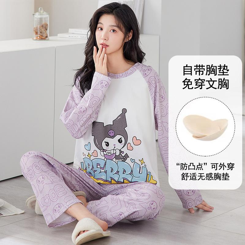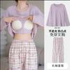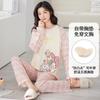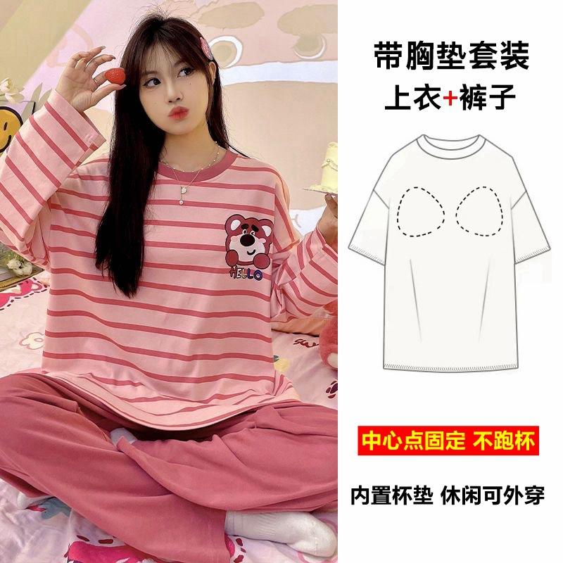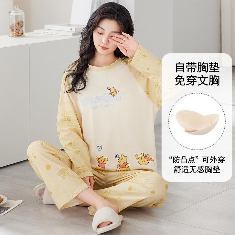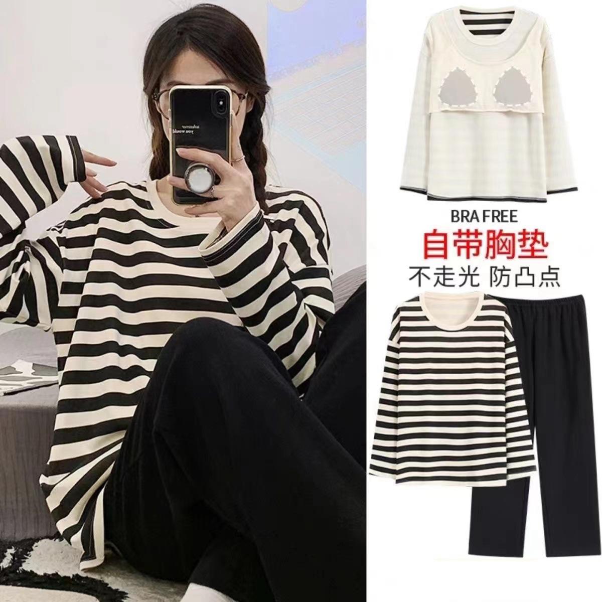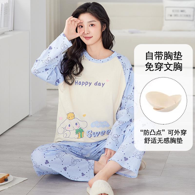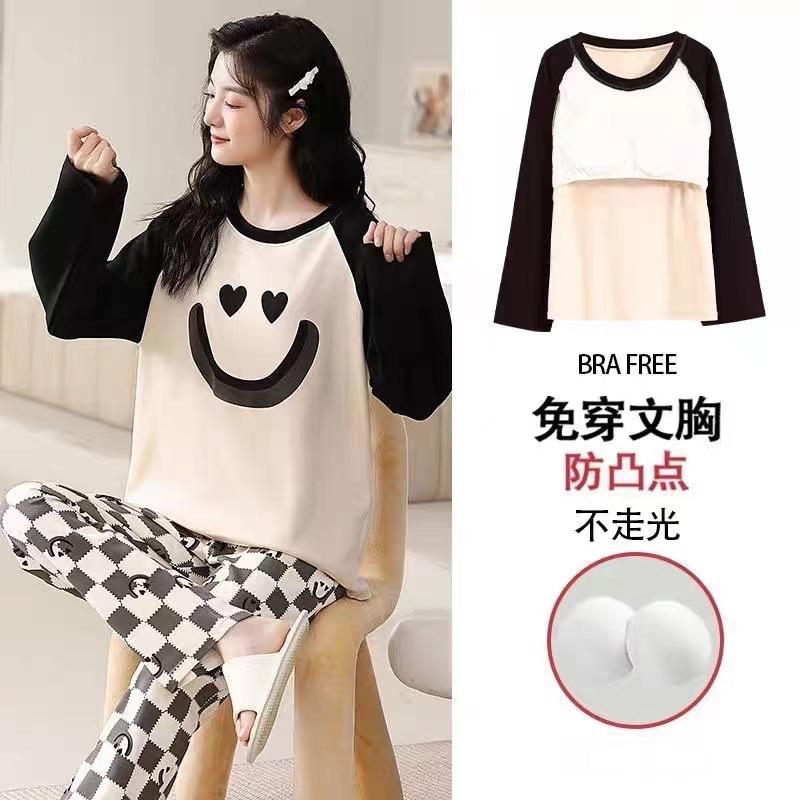 Pijama de exportación transfronteriza con almohadilla de pecho integrada, pijama de algodón de imitación 2025 nuevo para mujer, primavera y otoño, pantalones de manga larga, pijama para mujer