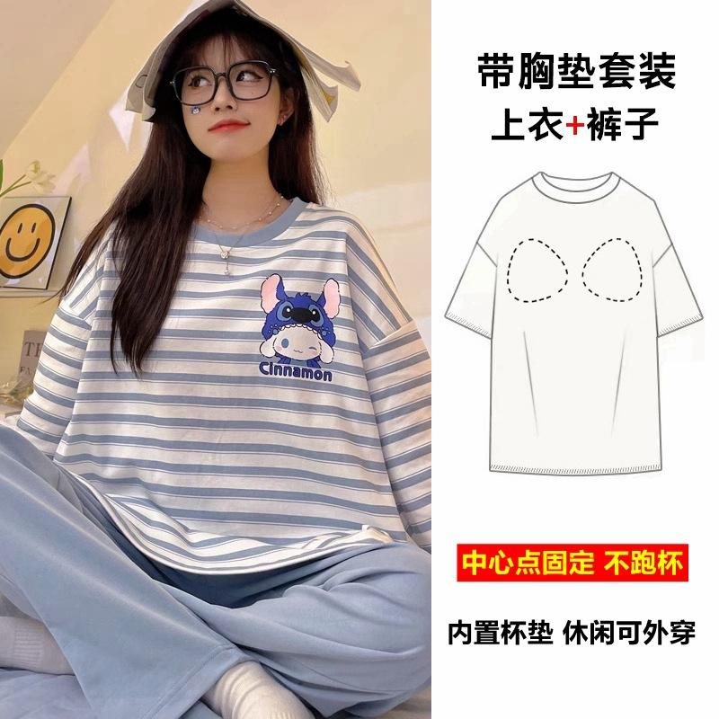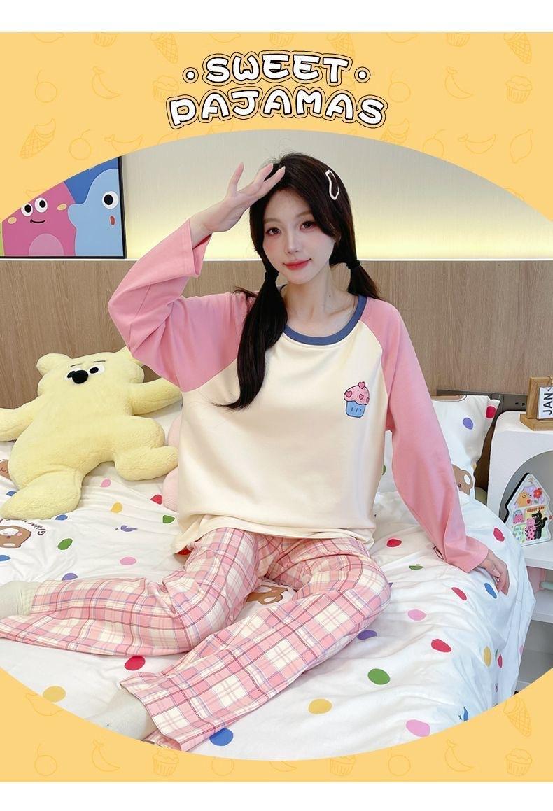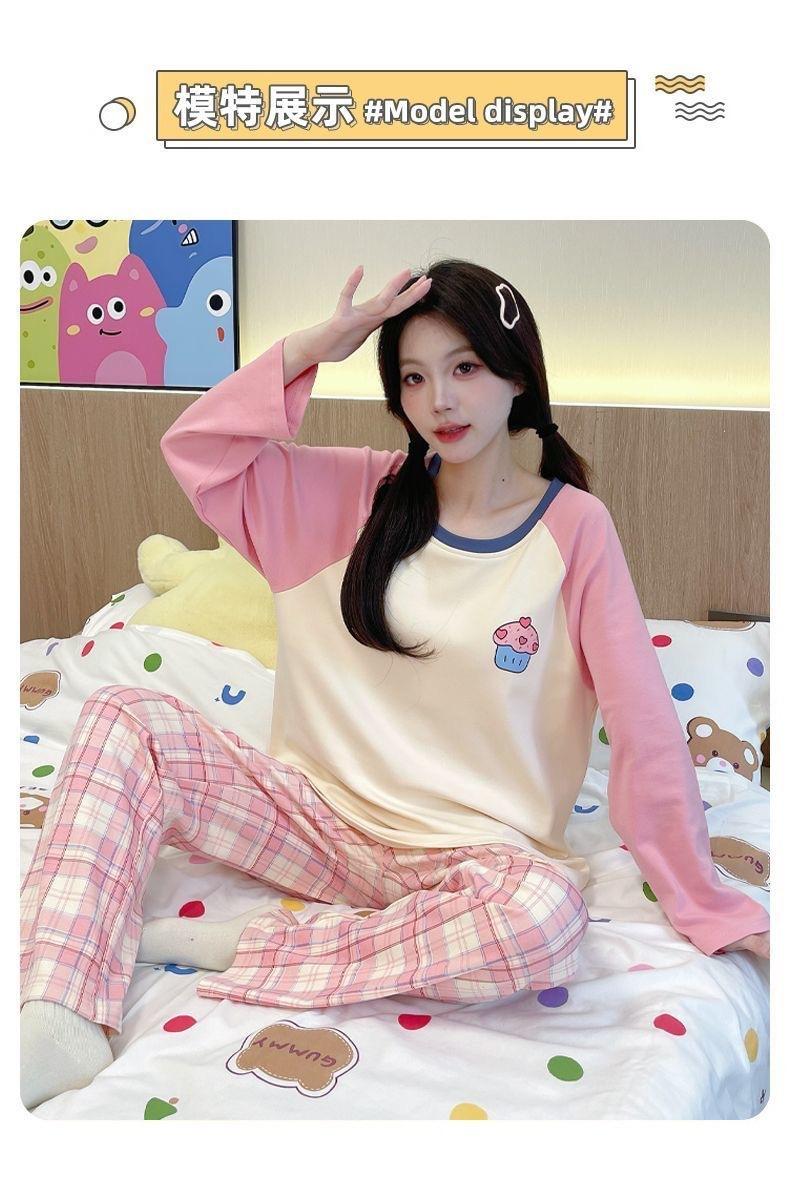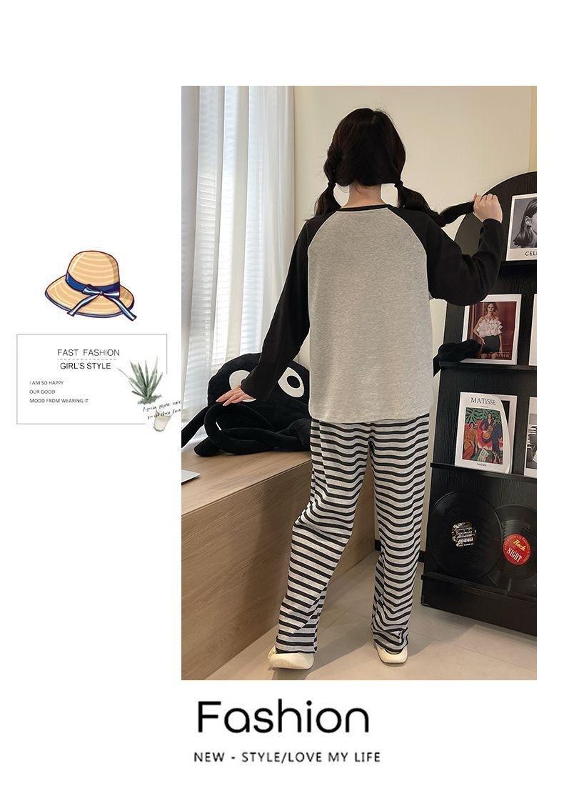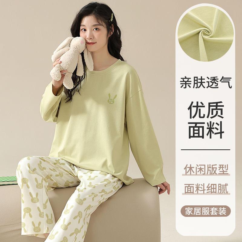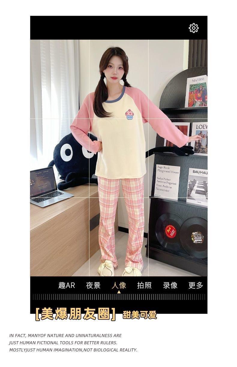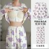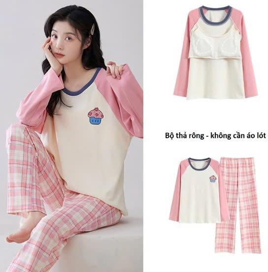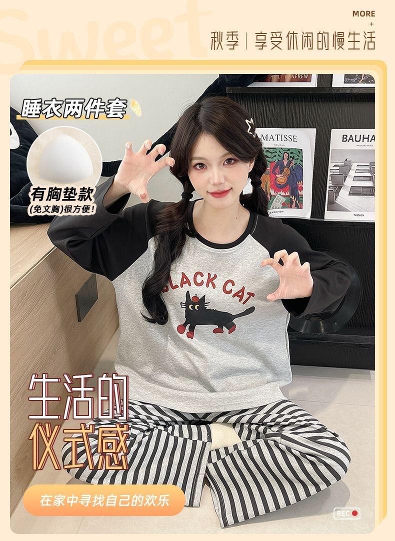 Pijama de exportación transfronteriza con almohadilla de pecho integrada, pijama de algodón de imitación 2025 nuevo para mujer, primavera y otoño, pantalones de manga larga, pijama para mujer