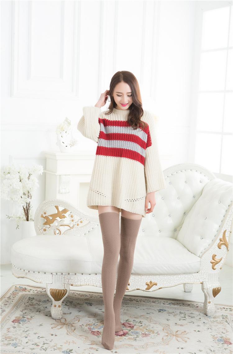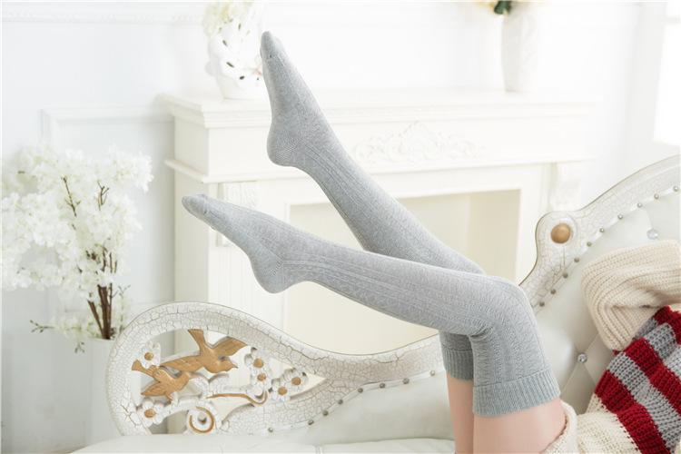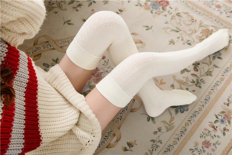 Calcetines por encima de la rodilla de algodón con aguja gruesa de primavera y otoño, calcetines altos de jacquard frescos de estilo academia, medias por encima de la rodilla, calcetines de mujer