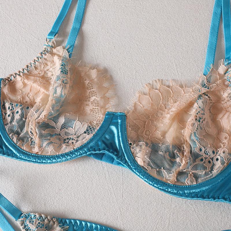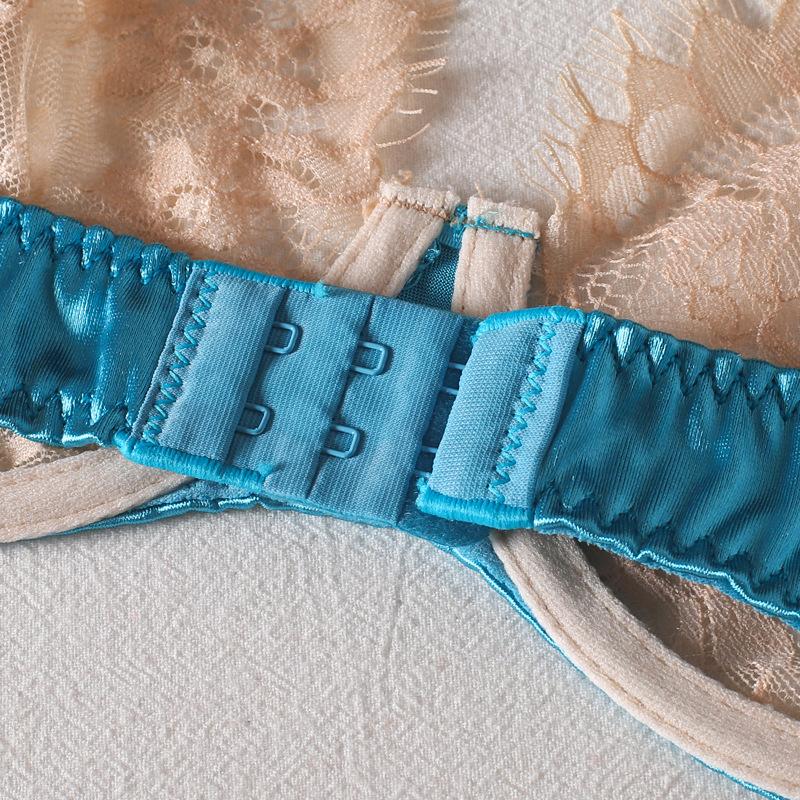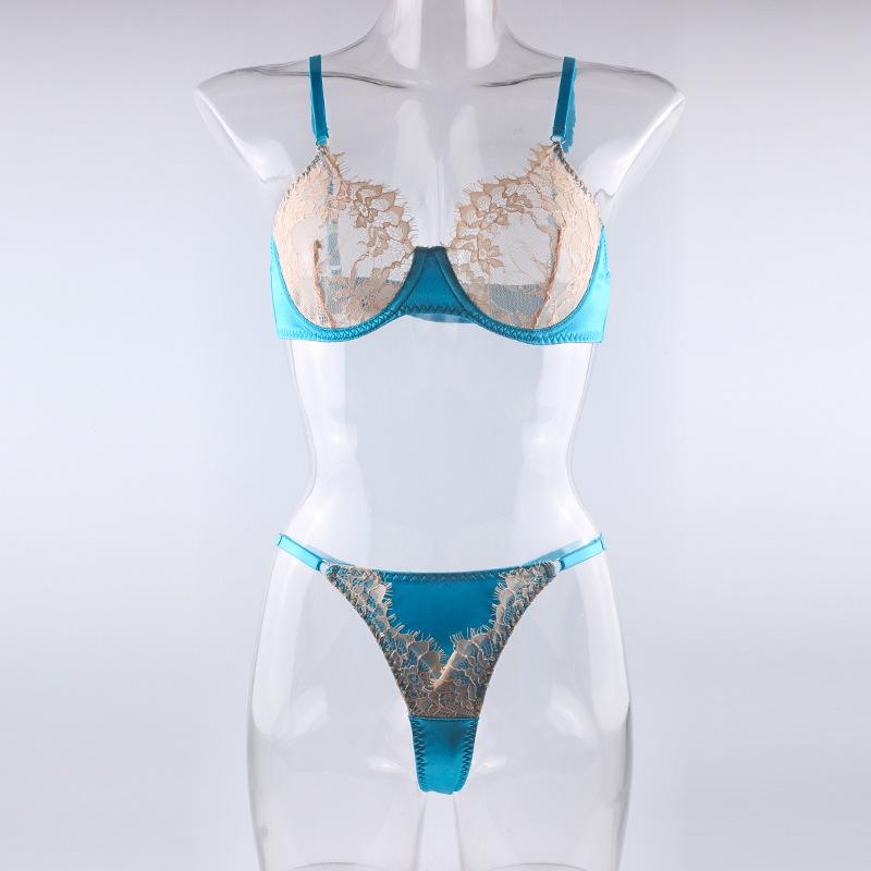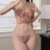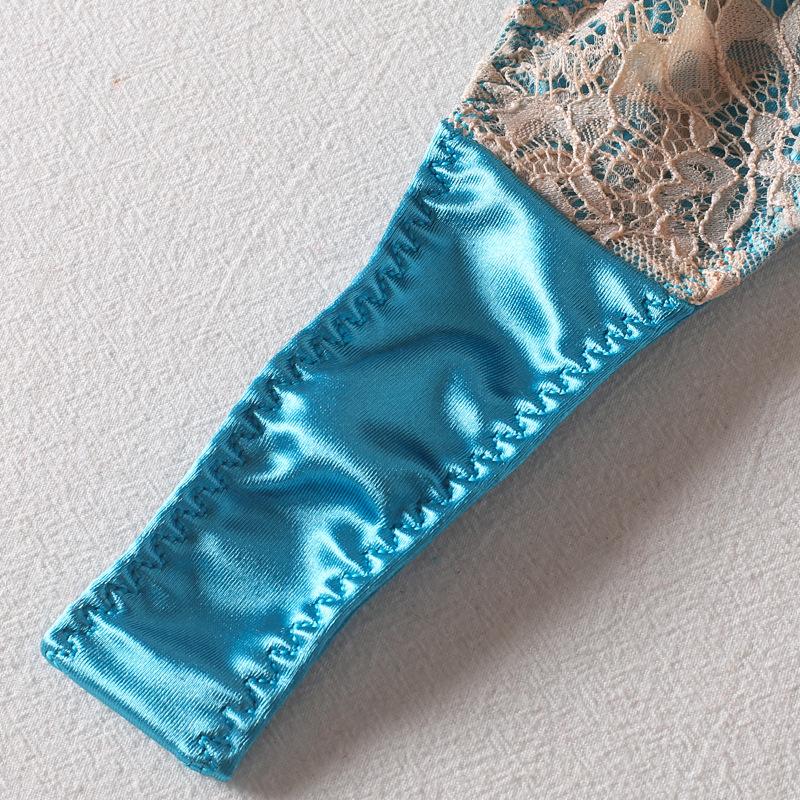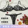 Sujetador con costuras de encaje caliente de comercio exterior europeo y americano, tanga con aro de acero fruncido, lencería sexy de pecho grande en stock