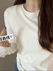 Camiseta de color liso con hombros descubiertos para mujer, otoño e invierno, nuevo diseño de línea de doble hombro, sensación adelgazante, sencilla, combinable, cuello redondo, manga larga, base.