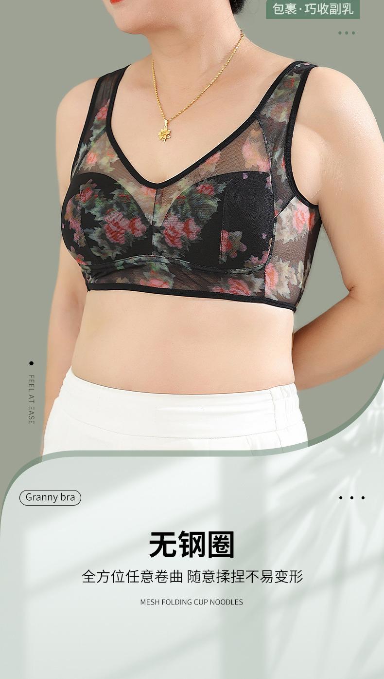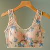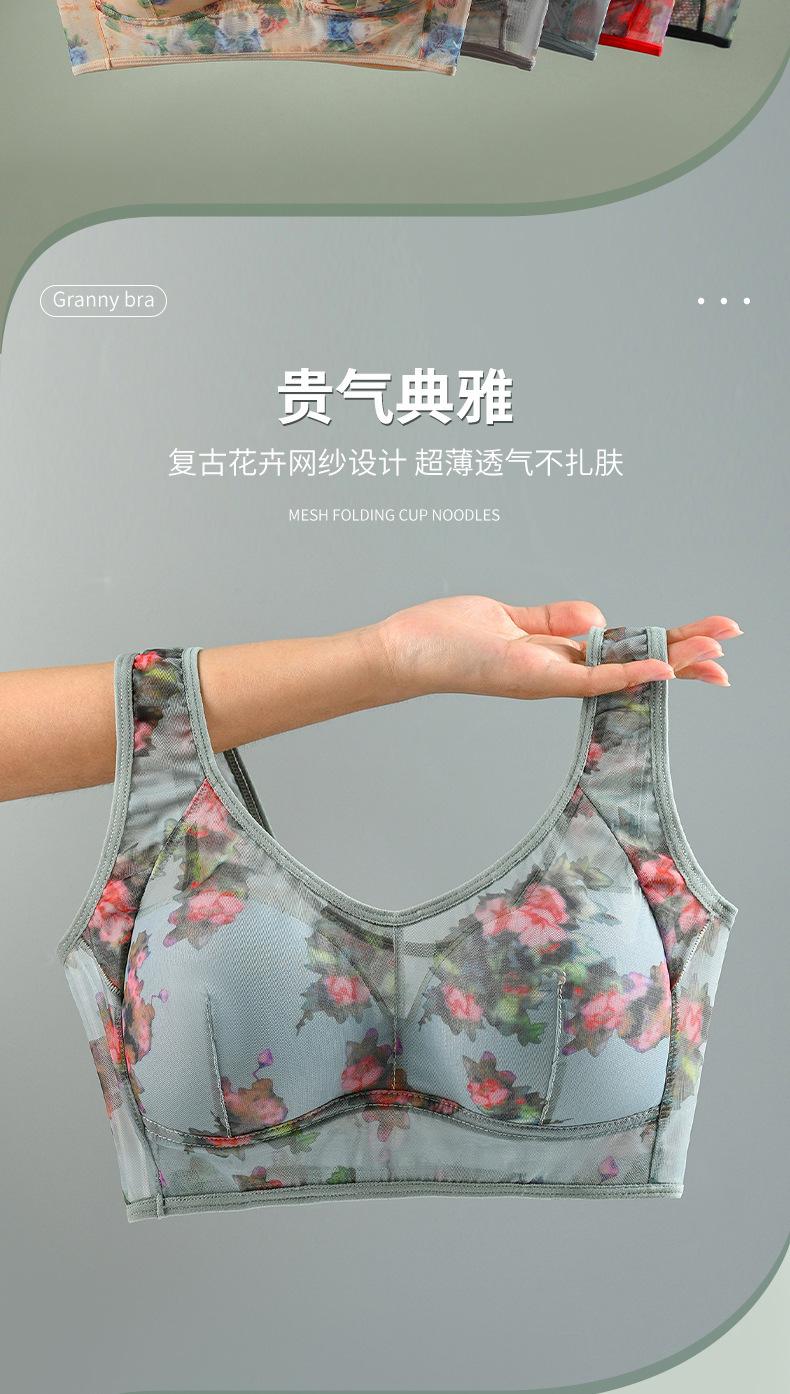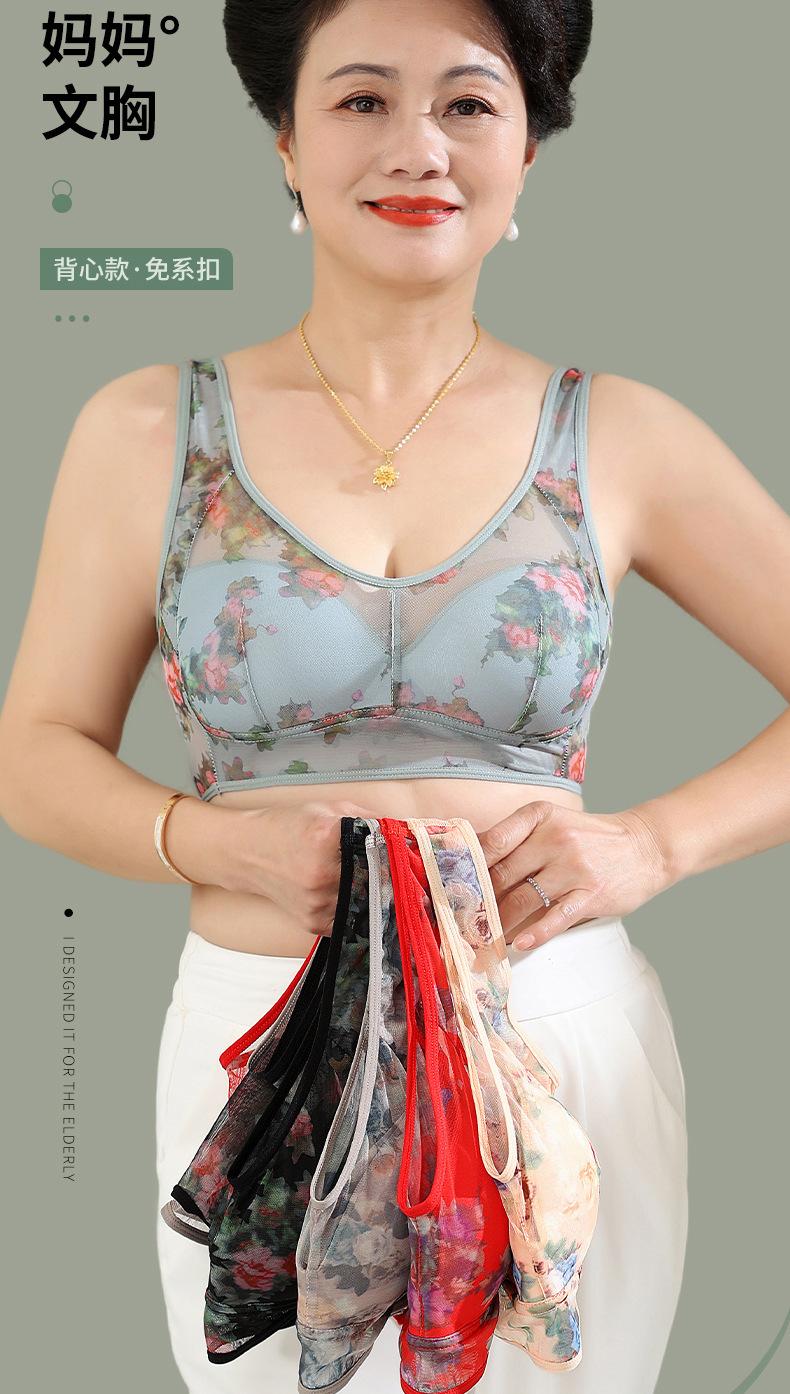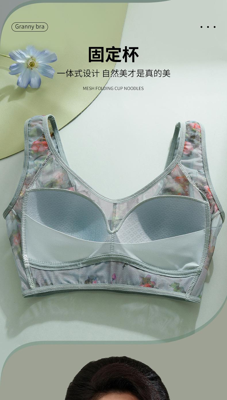 Ropa interior para madres de mediana edad para mujer, sujetador de encaje sin aros con copa fija tipo chaleco de talla grande estampado