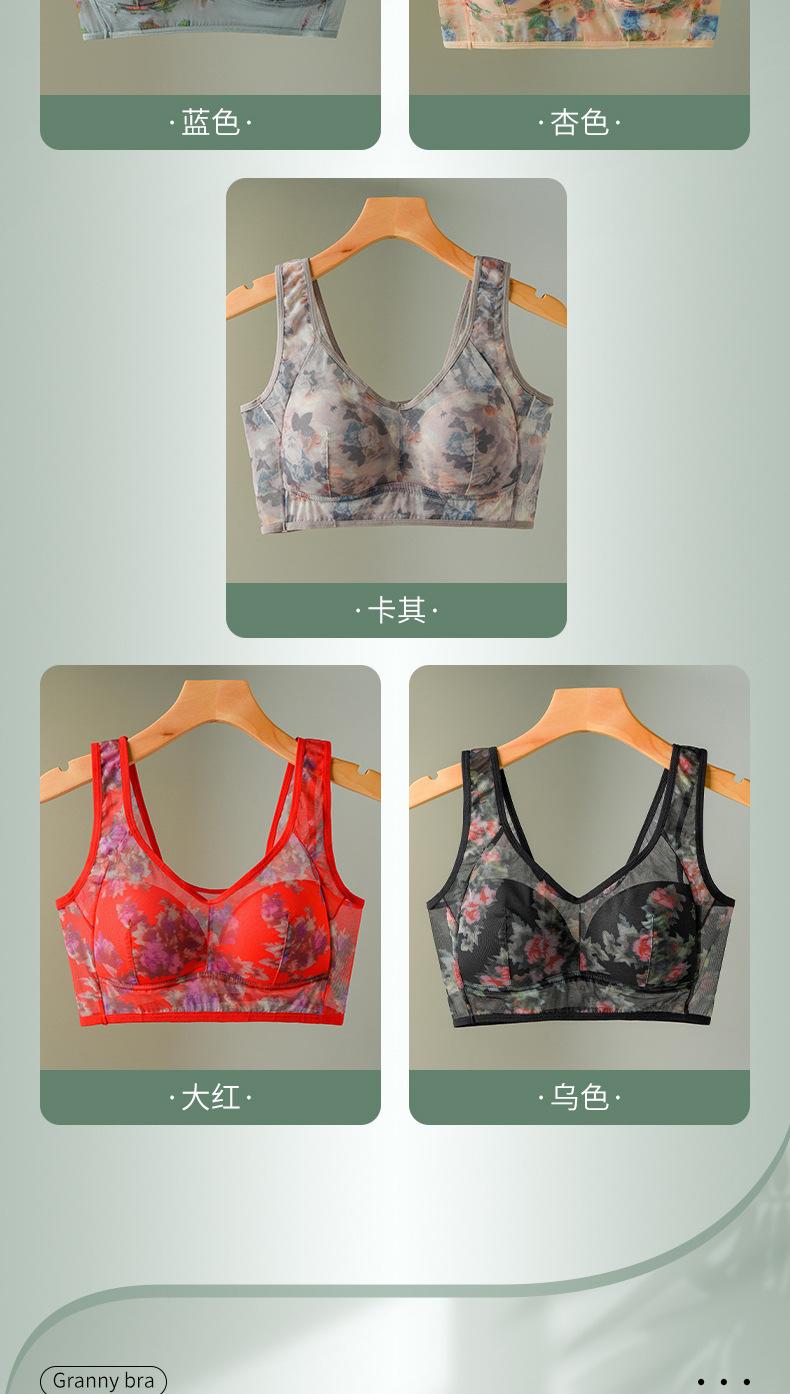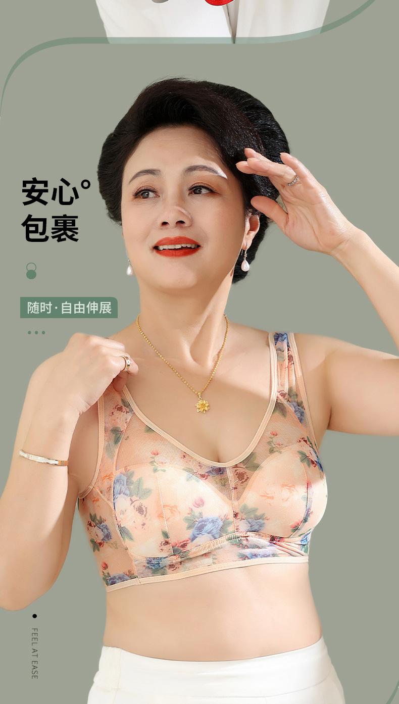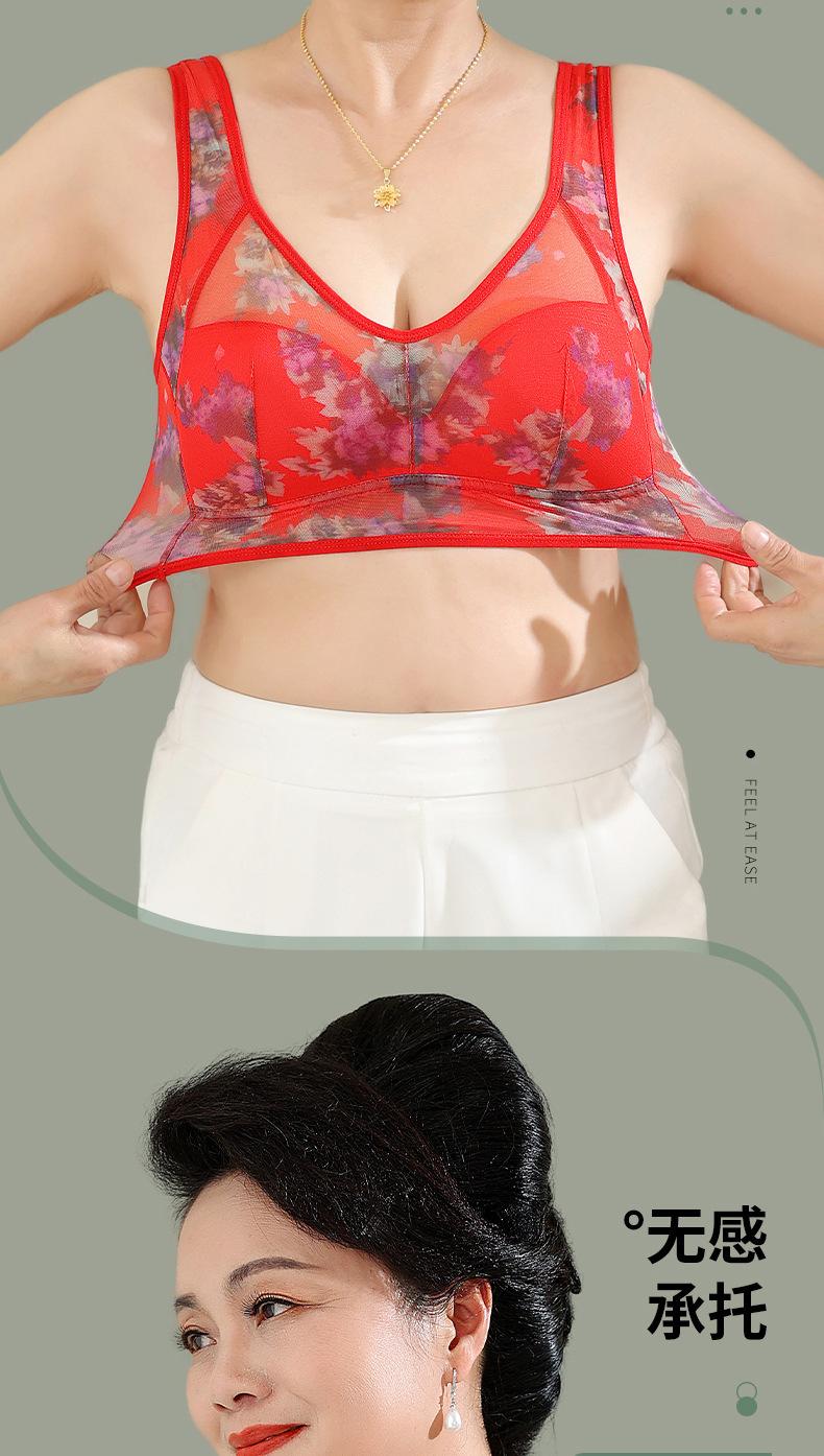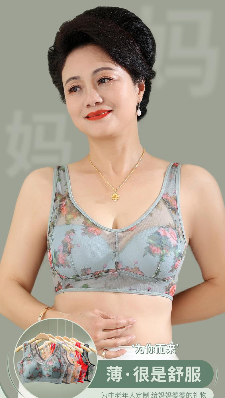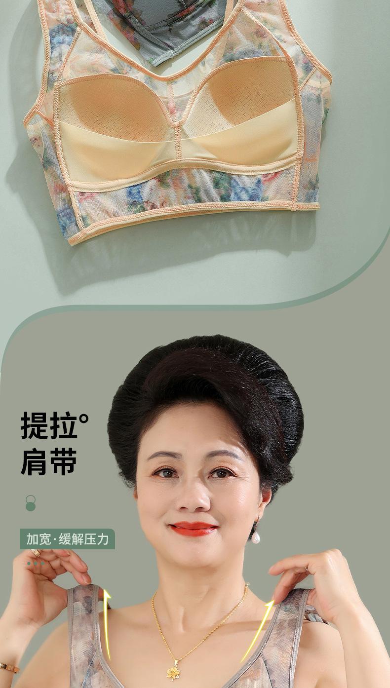 Ropa interior para madres de mediana edad para mujer, sujetador de encaje sin aros con copa fija tipo chaleco de talla grande estampado