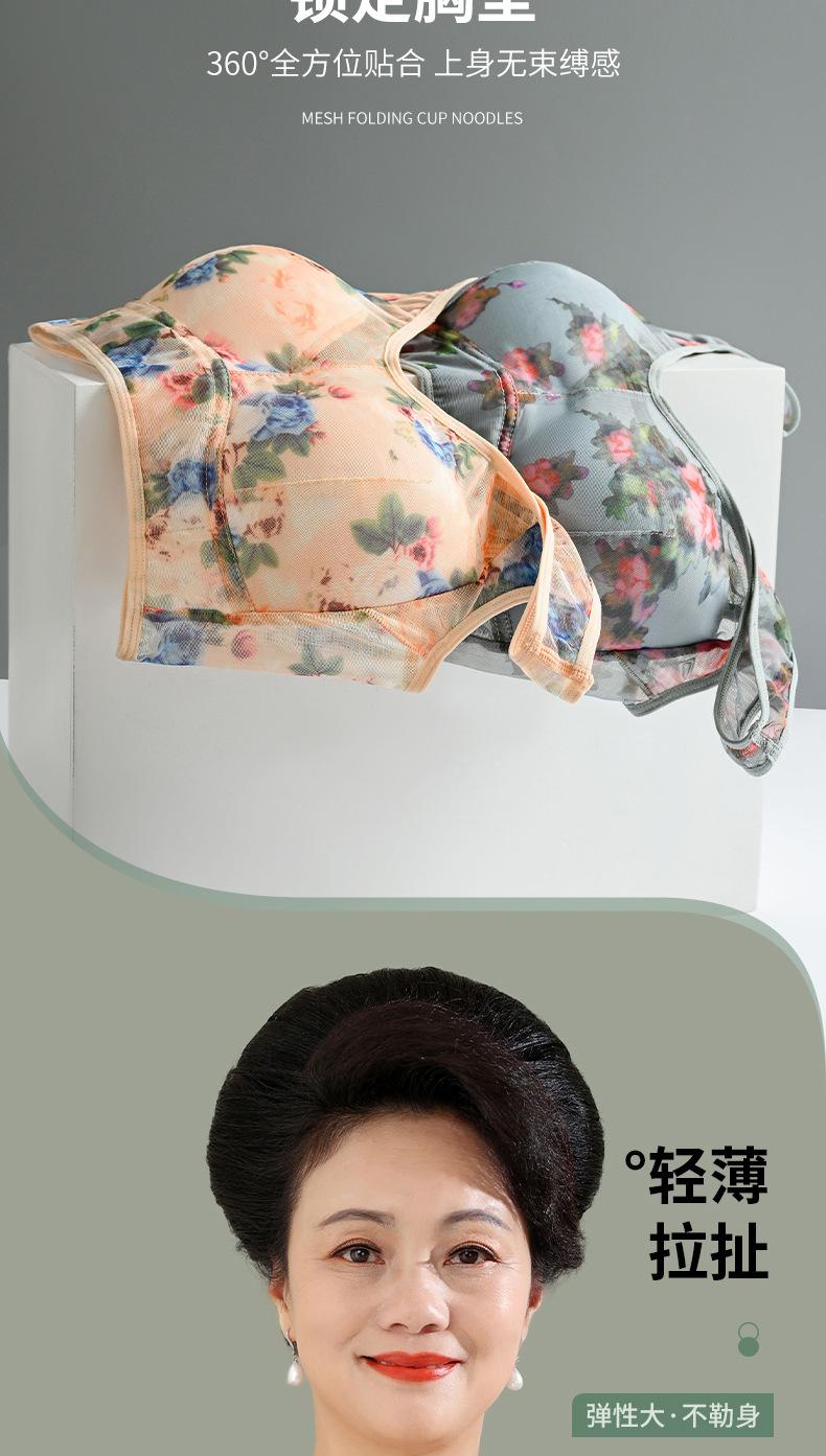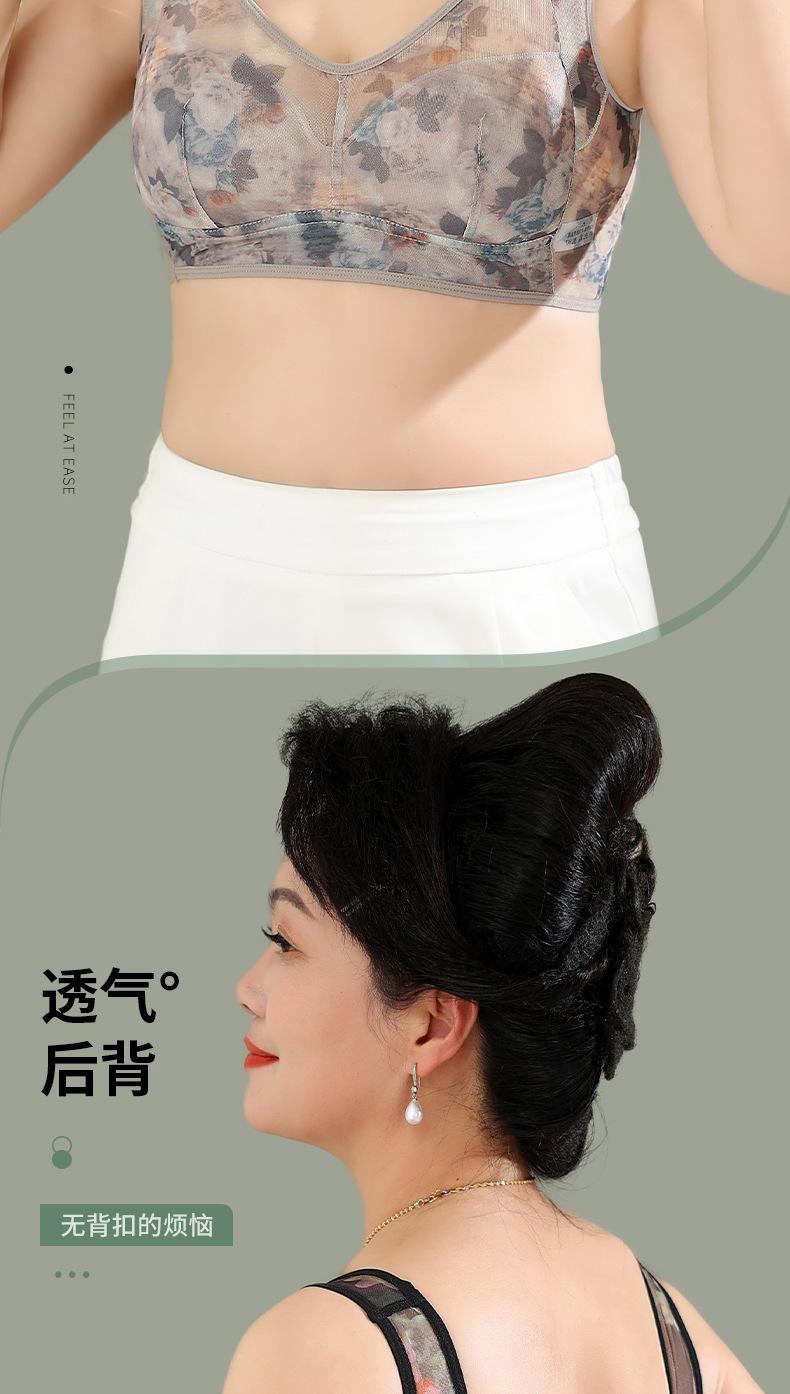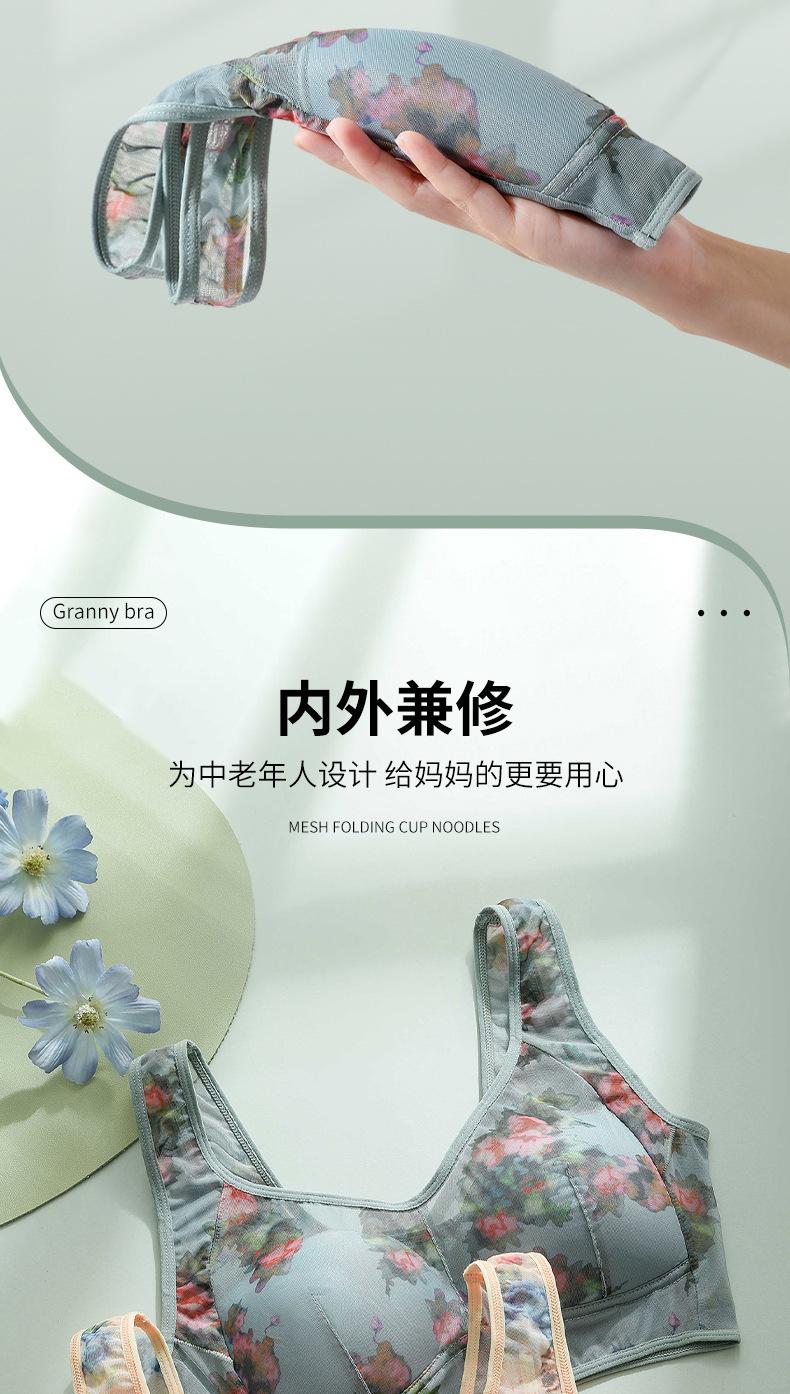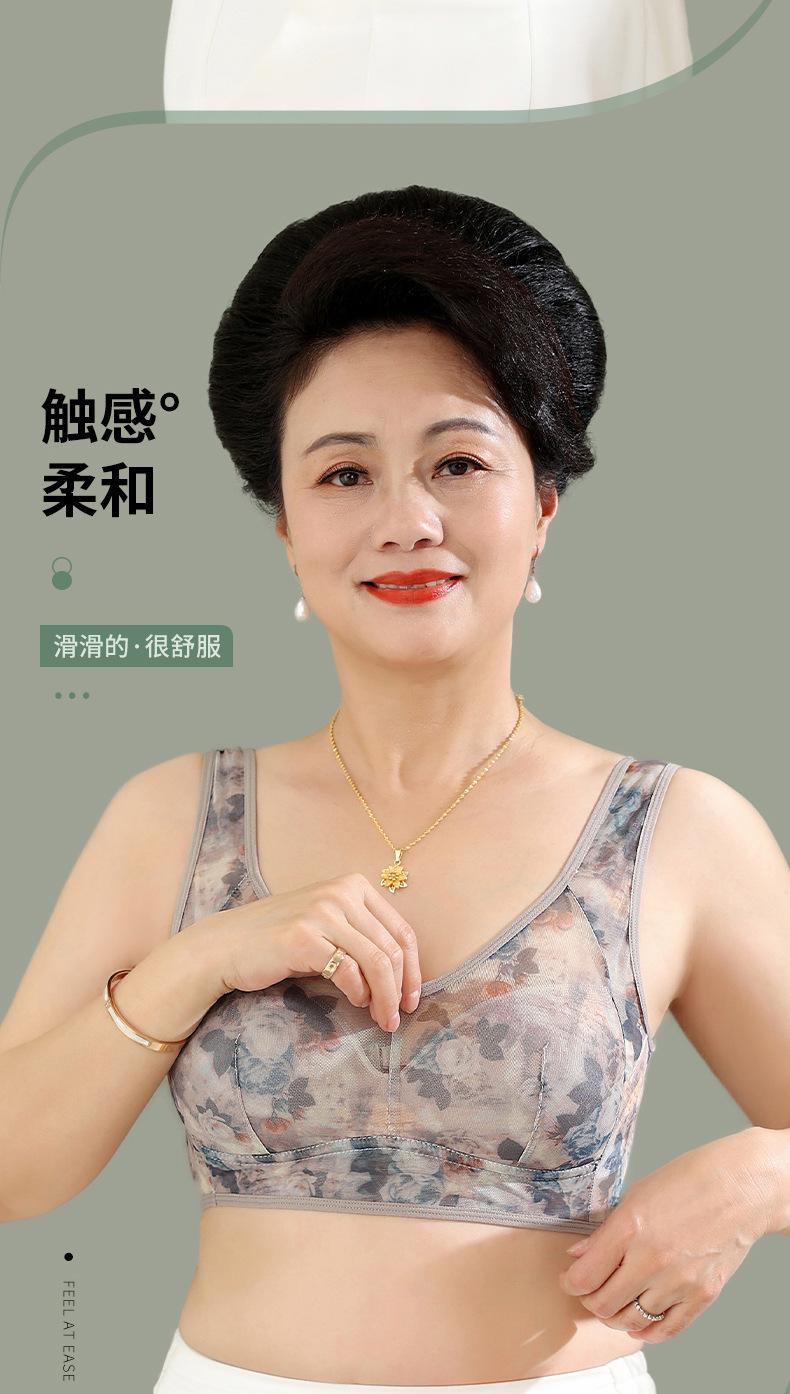 Ropa interior para madres de mediana edad para mujer, sujetador de encaje sin aros con copa fija tipo chaleco de talla grande estampado
