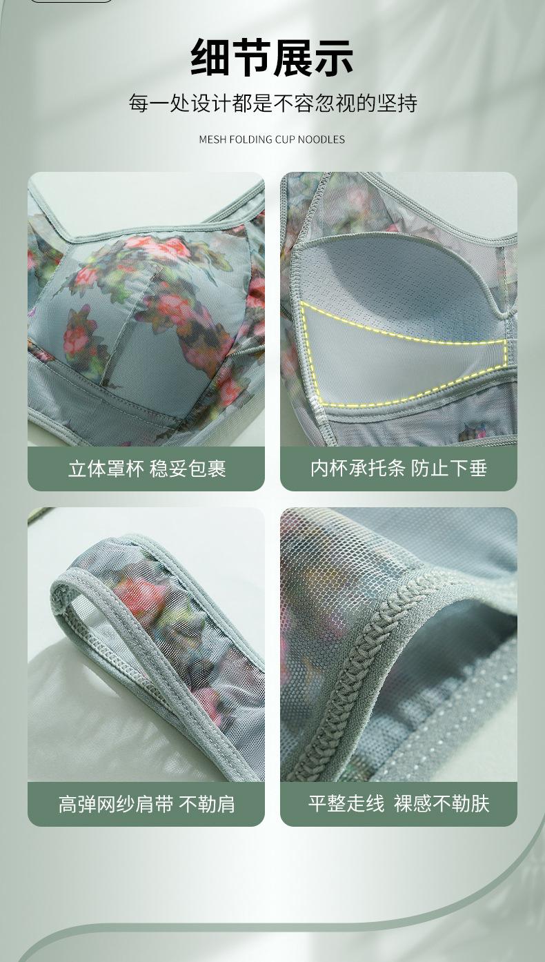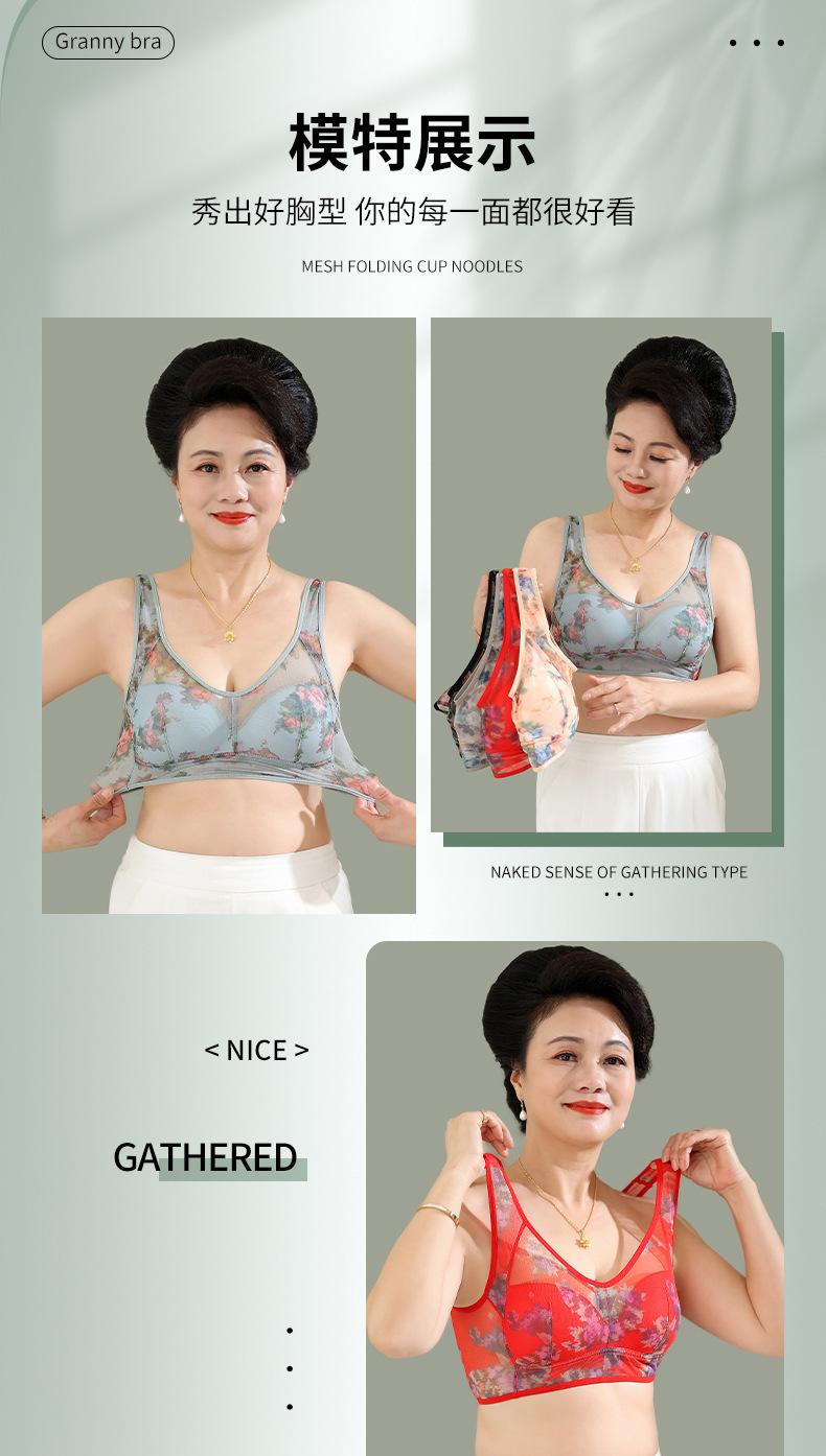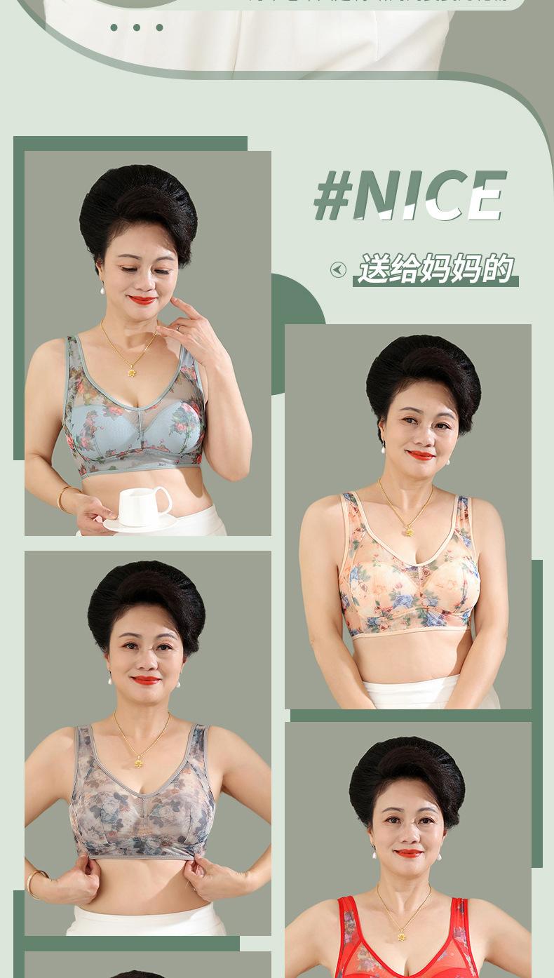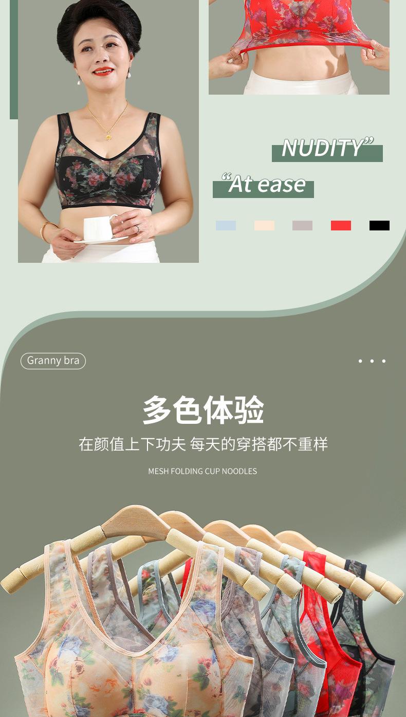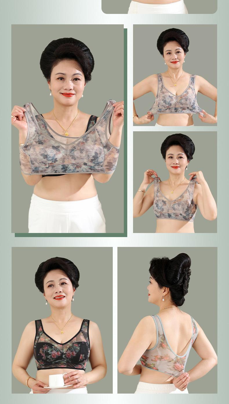 Ropa interior para madres de mediana edad para mujer, sujetador de encaje sin aros con copa fija tipo chaleco de talla grande estampado