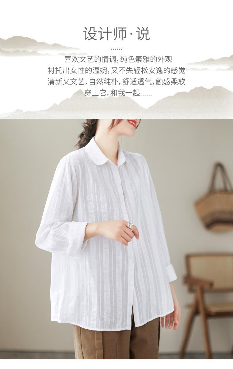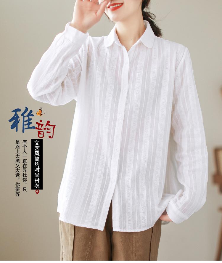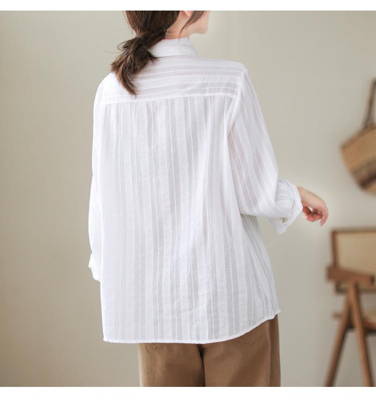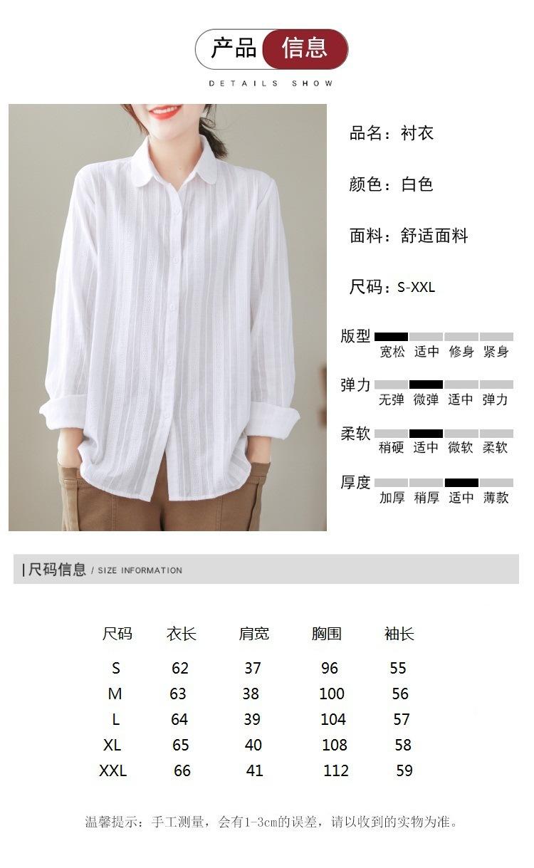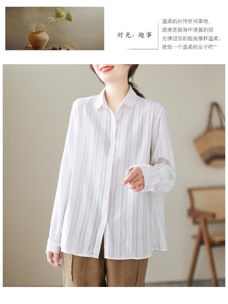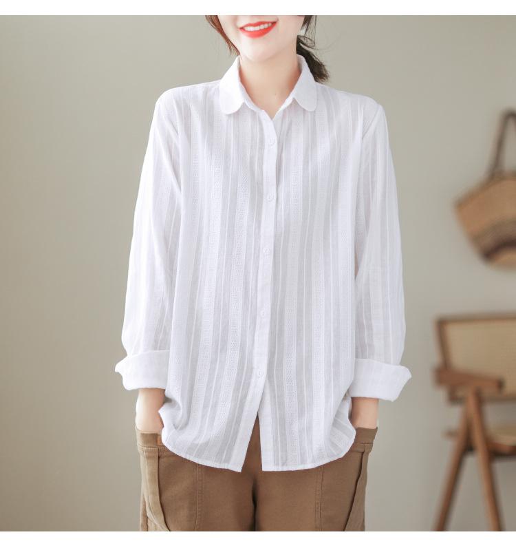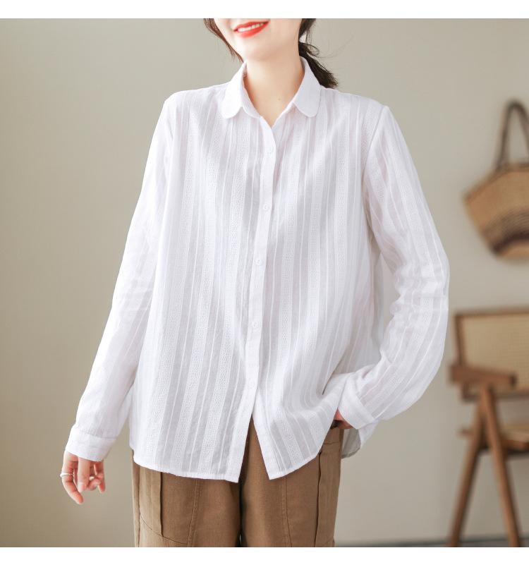 Camisa de algodón 2868A Real Shot 2023, nueva primavera, para mujer, de manga larga, blanca, con jacquard