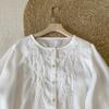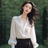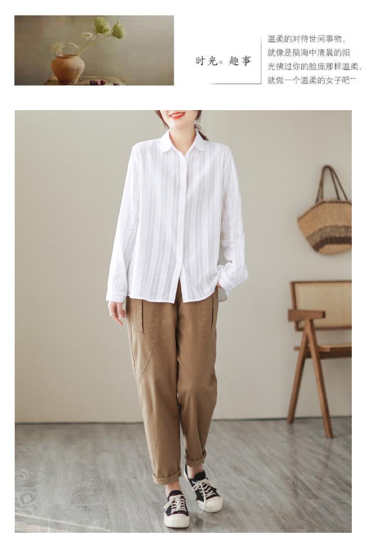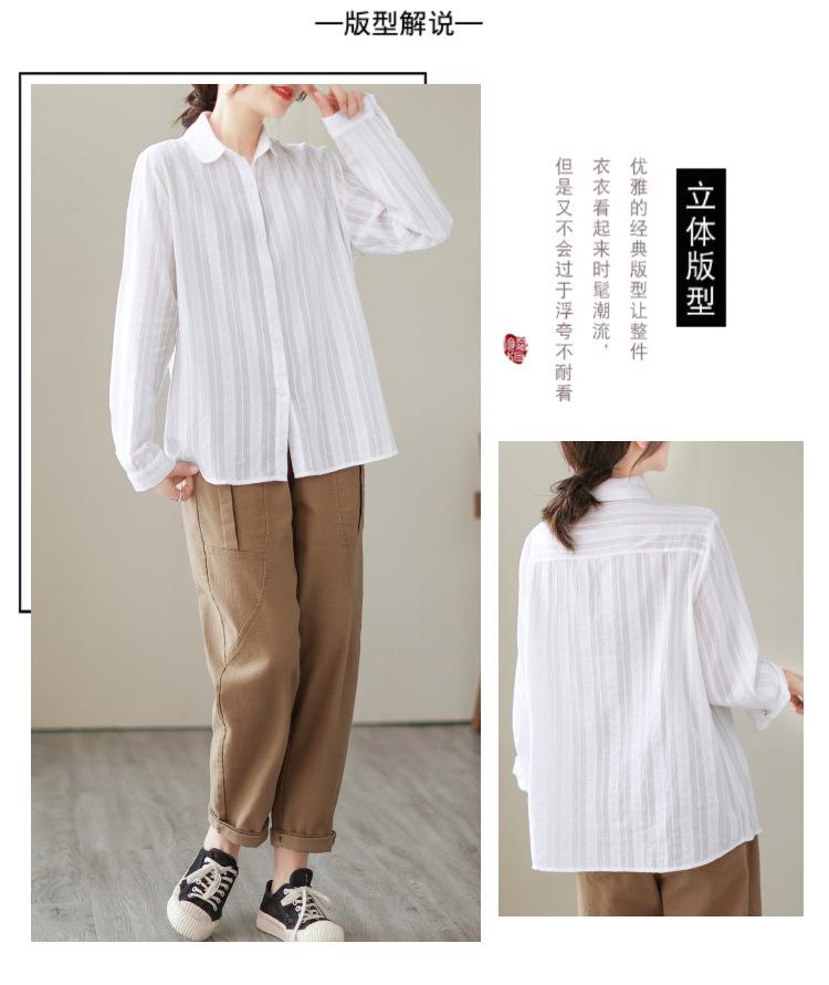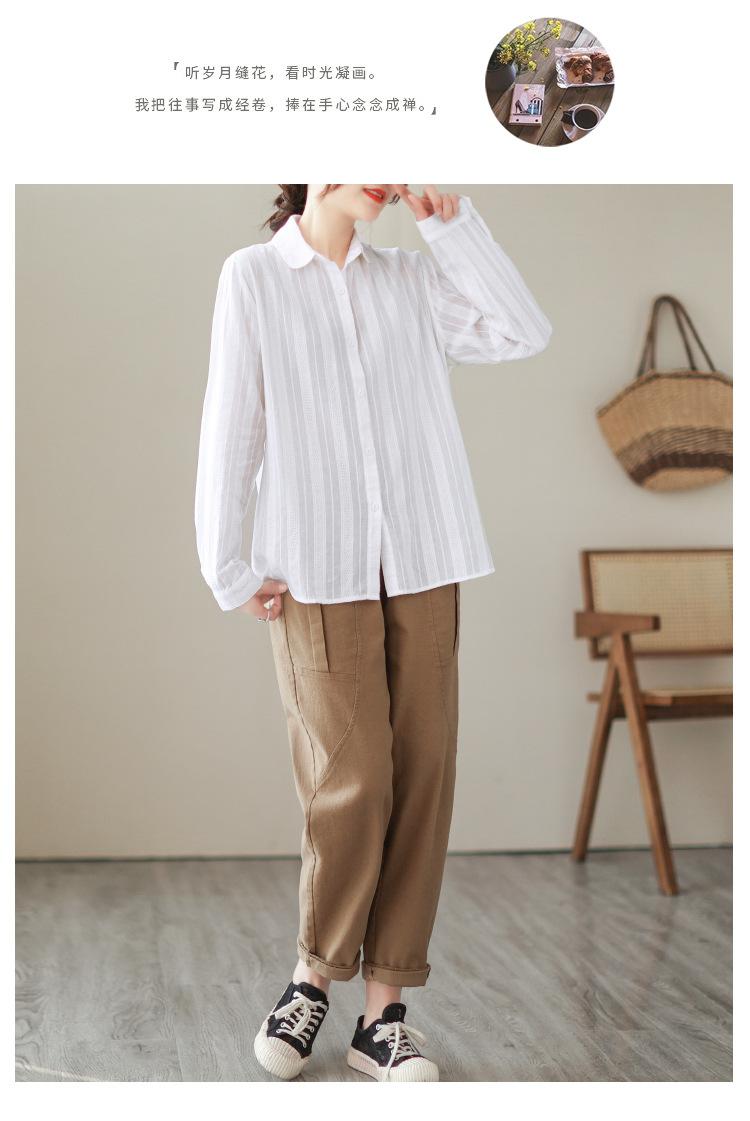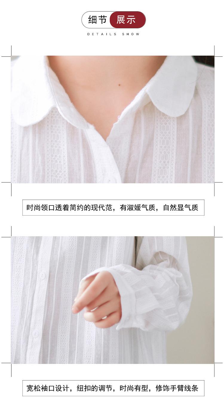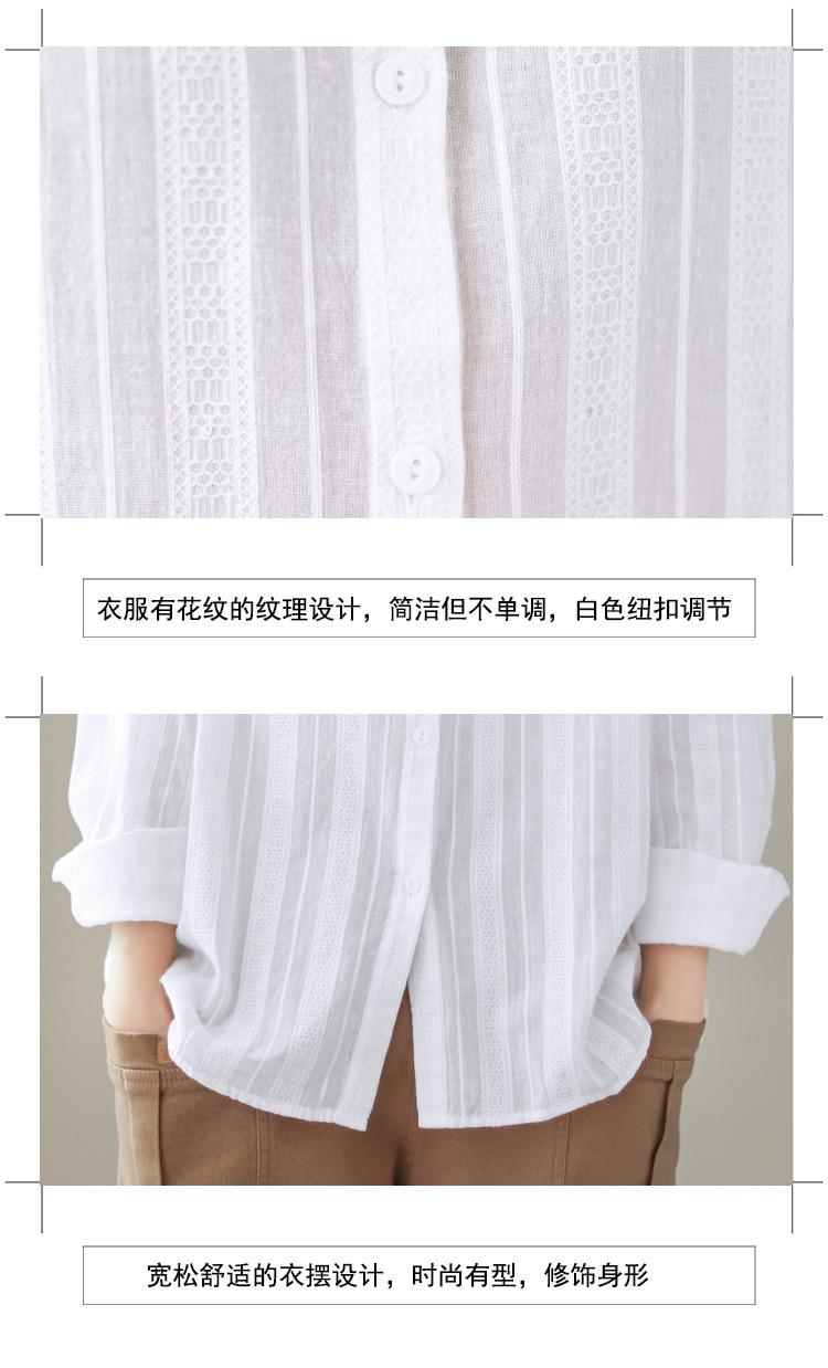 Camisa de algodón 2868A Real Shot 2023, nueva primavera, para mujer, de manga larga, blanca, con jacquard