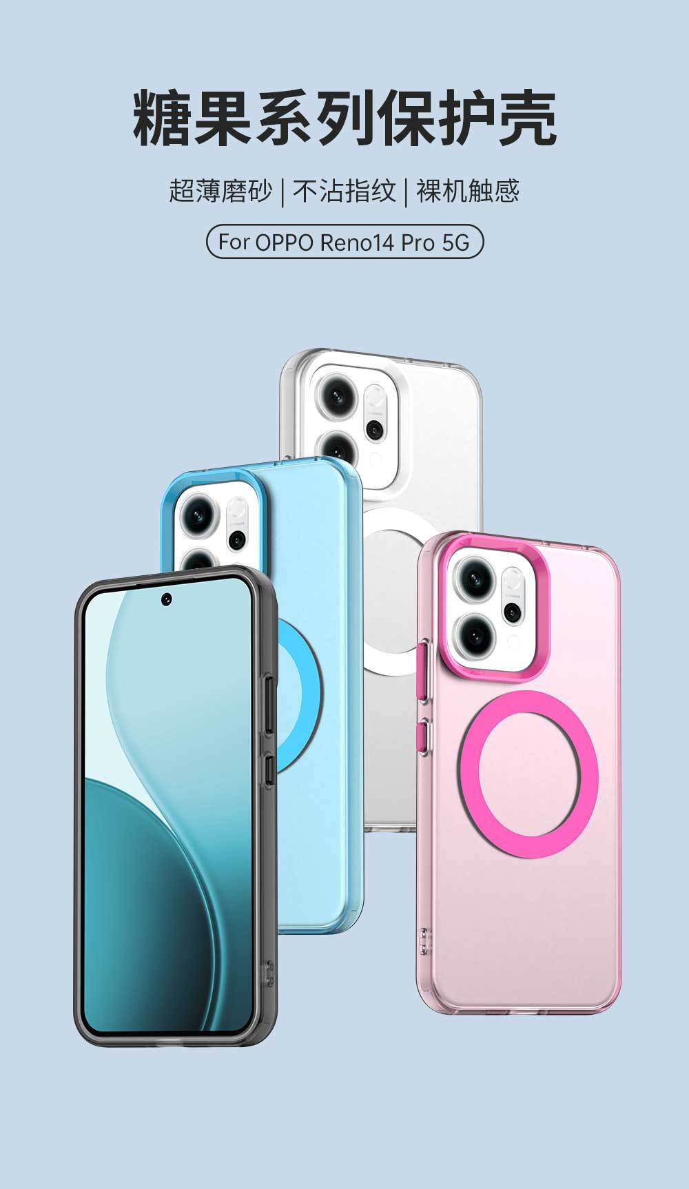 Adecuado para Oppo Reno14Pro Carcasa Magnética Candy para Teléfono Reno13Pro Esmerilada Reno12 Cubierta Protectora