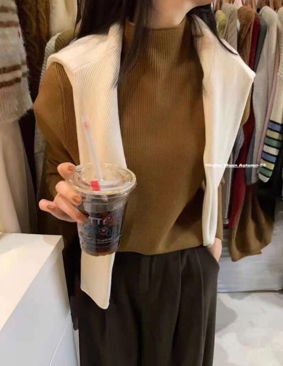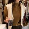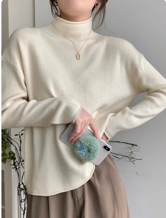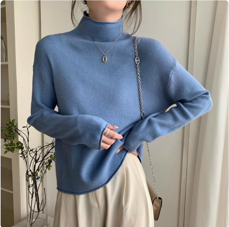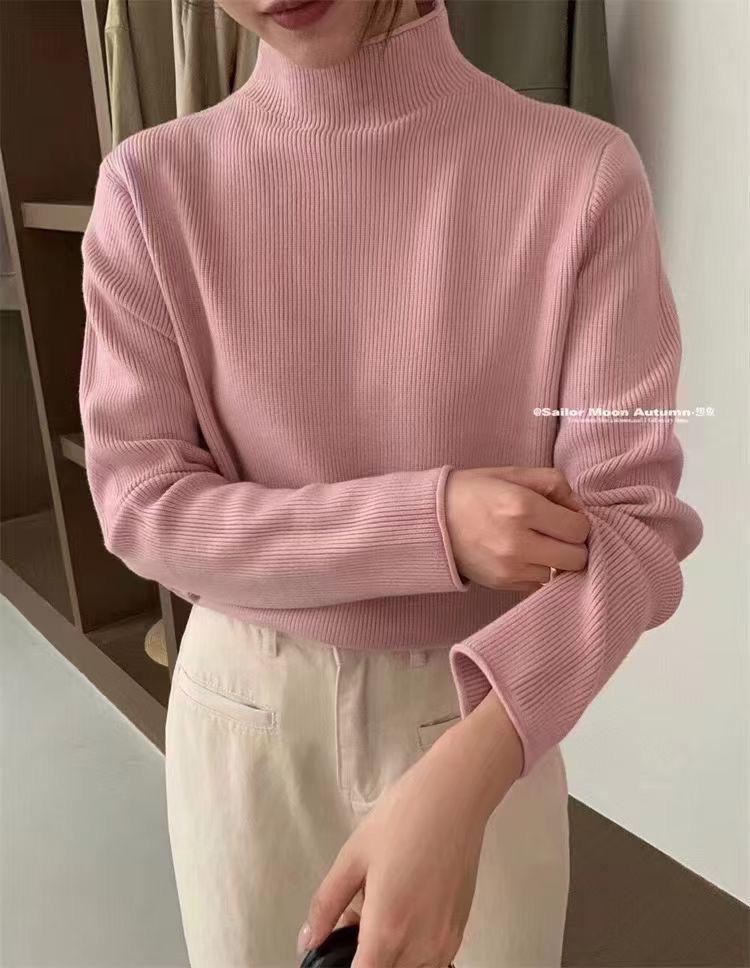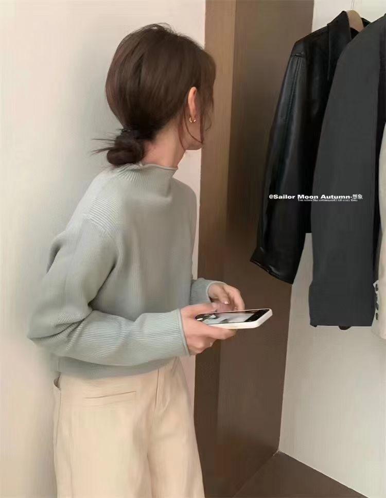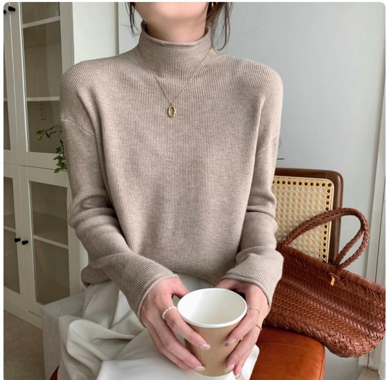 Suéter de Punto Grueso Holgado Estilo Coreano Color Sólido Holgado Grueso Estilo Occidental Combinable Cuello Alto Falso