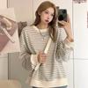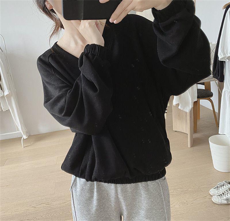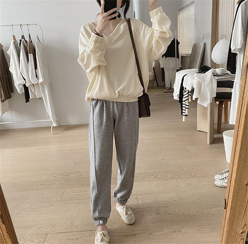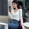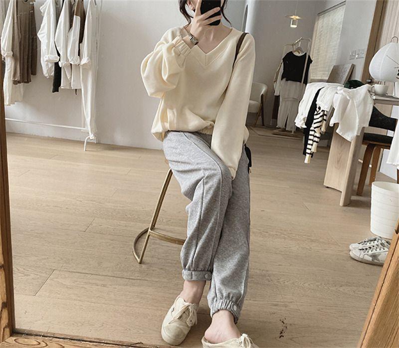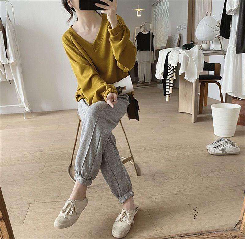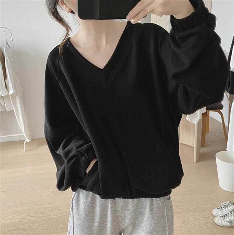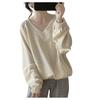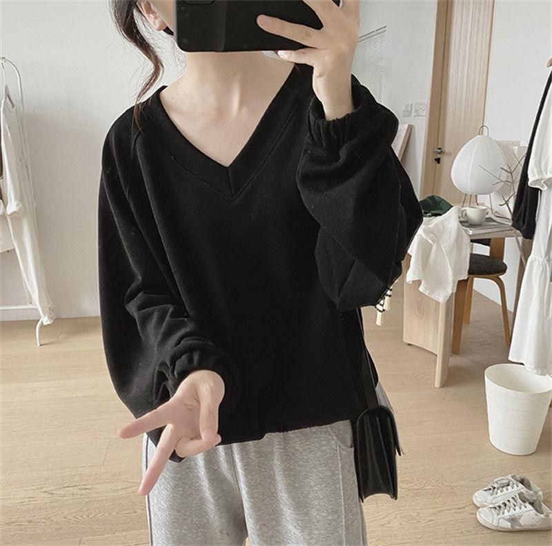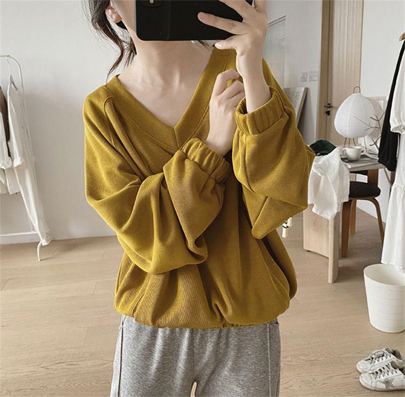 Nueva camiseta de manga larga con cuello en V japonesa y coreana de primavera 2025, suéter para mujer, top holgado de talla grande ajustado para mujer