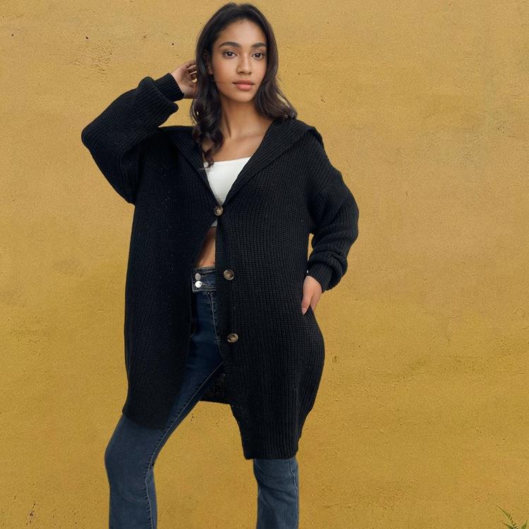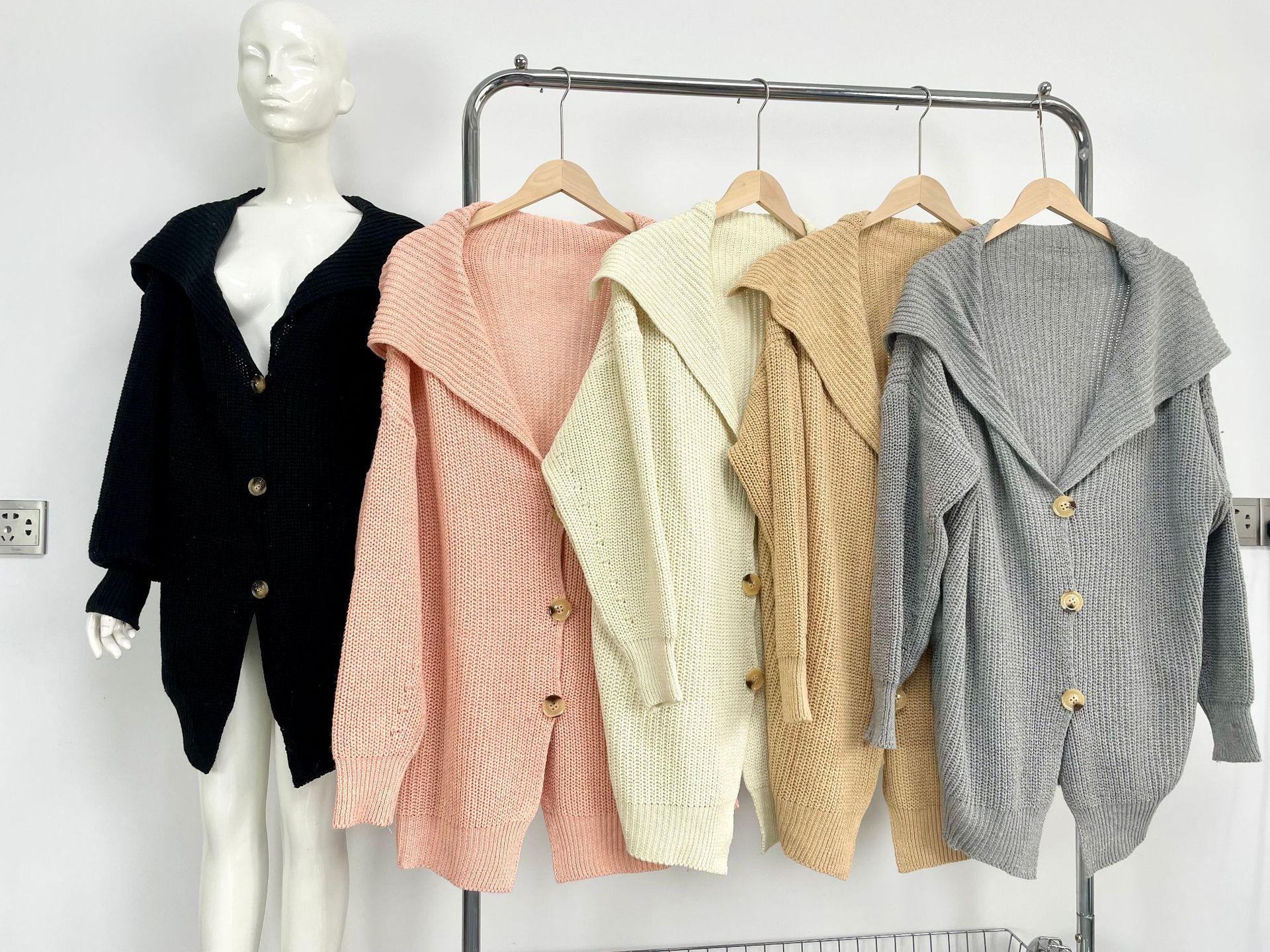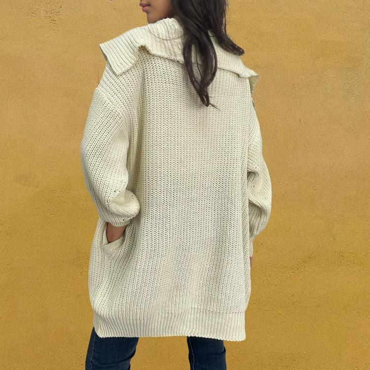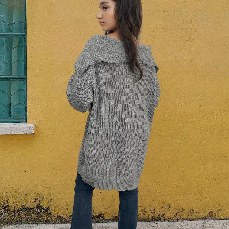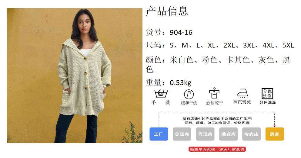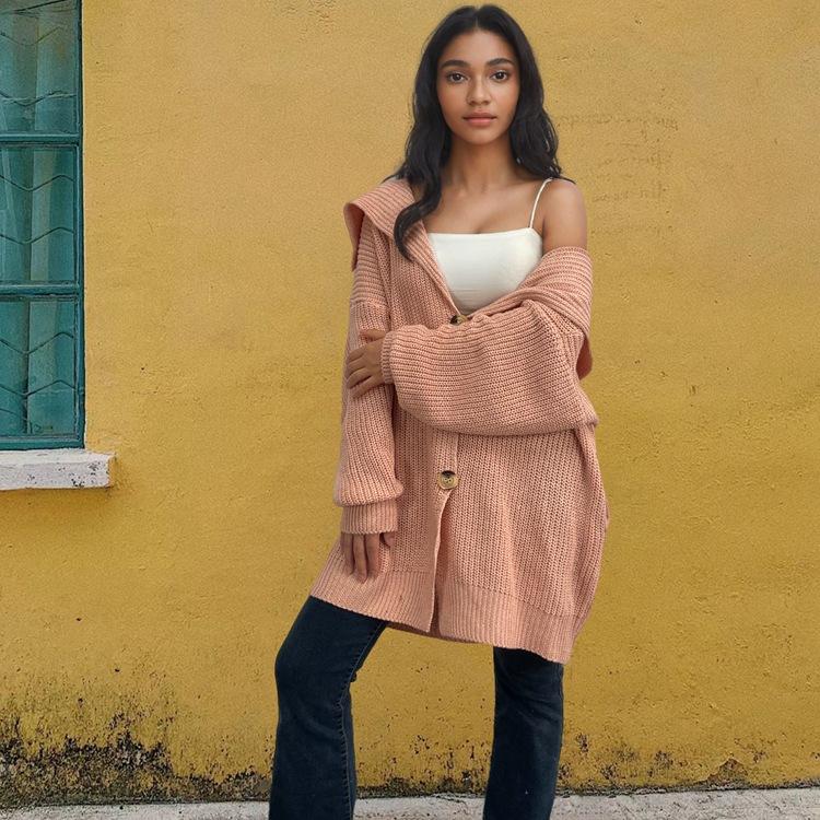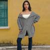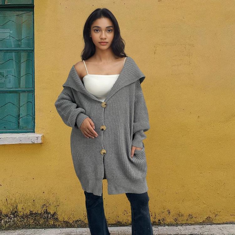 Suéter de punto con bolsillos sueltos y botones para mujer, nuevo suéter tipo cárdigan de talla grande con borde cruzado, de Amazon, para otoño e invierno, de Europa y América.