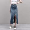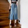 Falda vaquera de cintura alta irregular con abertura para mujer, estilo vintage, de longitud media, corte A, estilo nicho