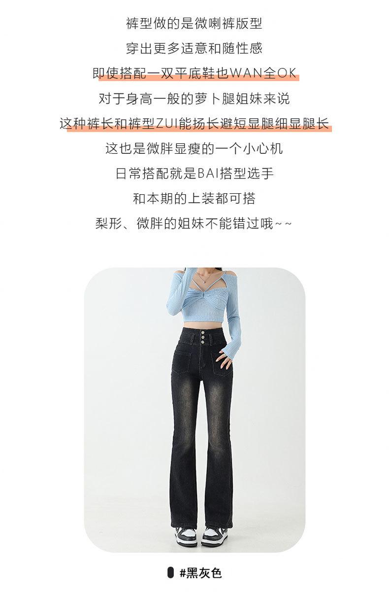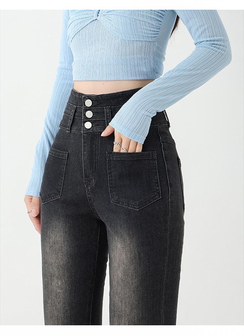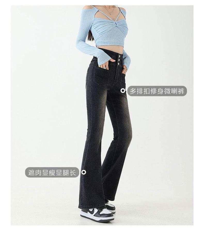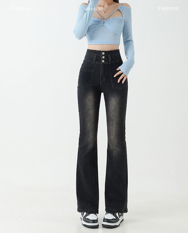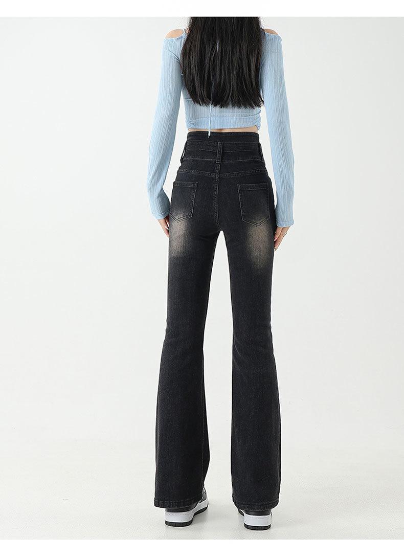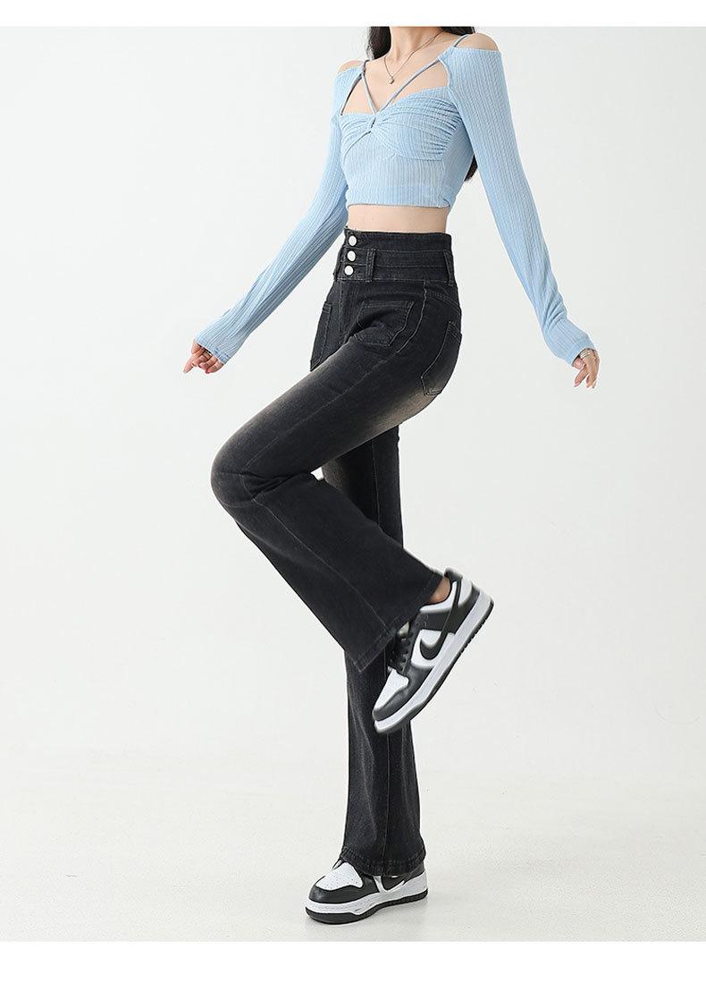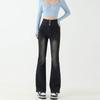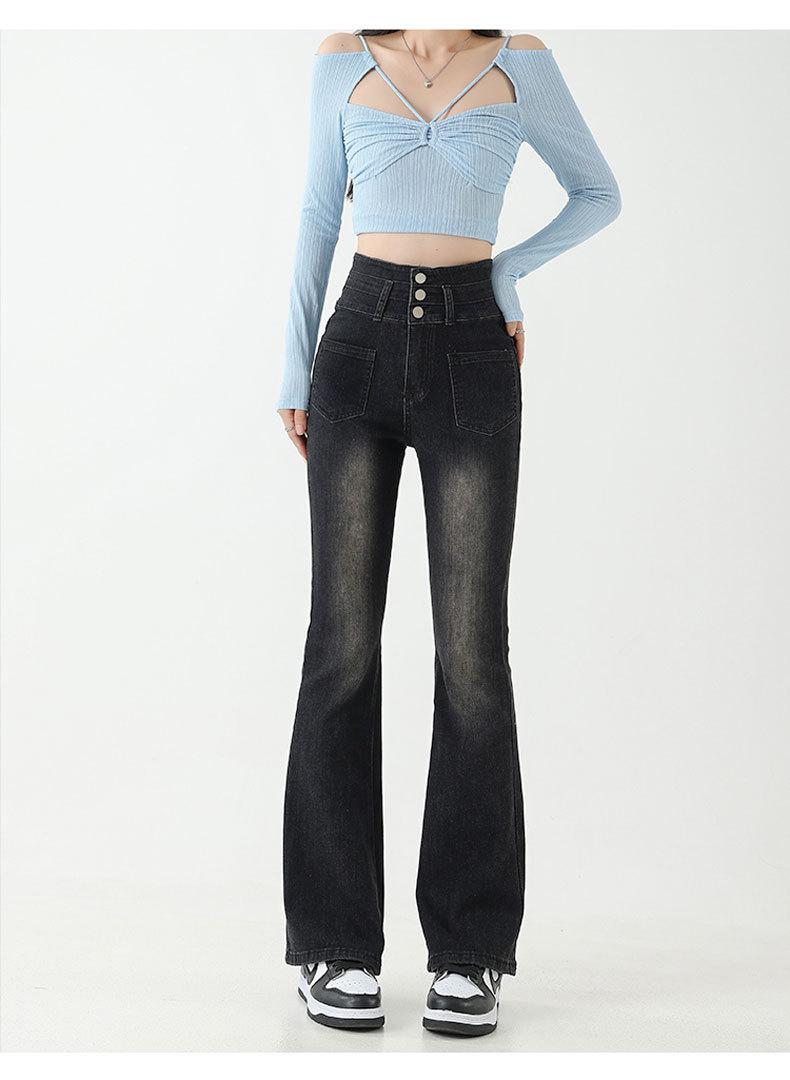 Pantalones de Herradura Stretch Slim-fit Negros para Mujer que Combinan con Todo con Trompeta de Mezclilla