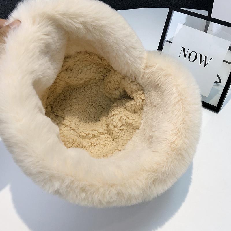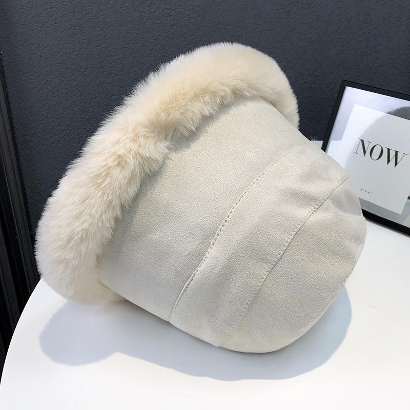 Gorro de pescador de felpa para mujer, otoño e invierno, nuevo gorro de lavabo grueso y cálido, resistente al viento, con protección para los oídos, gorro Lei Feng, gorro peludo de invierno.