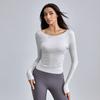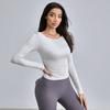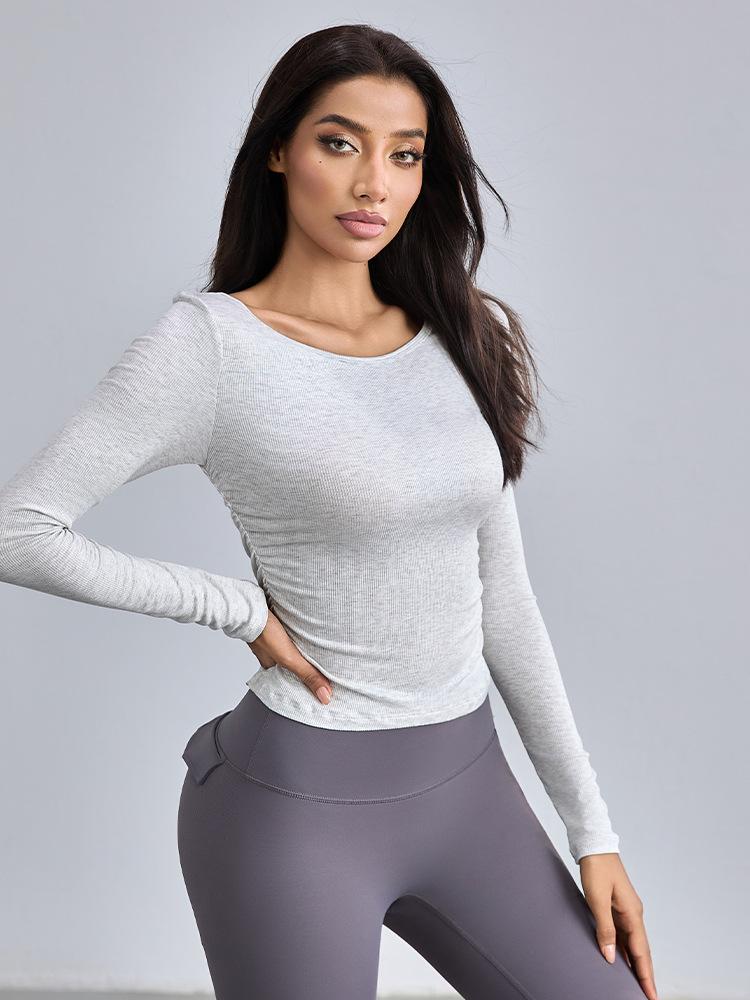 Traje de Yoga de Manga Larga de Canalé Modal para Mujer, Transpirable, Plisado, para Fitness, Ajustado, Top Deportivo, Otoño